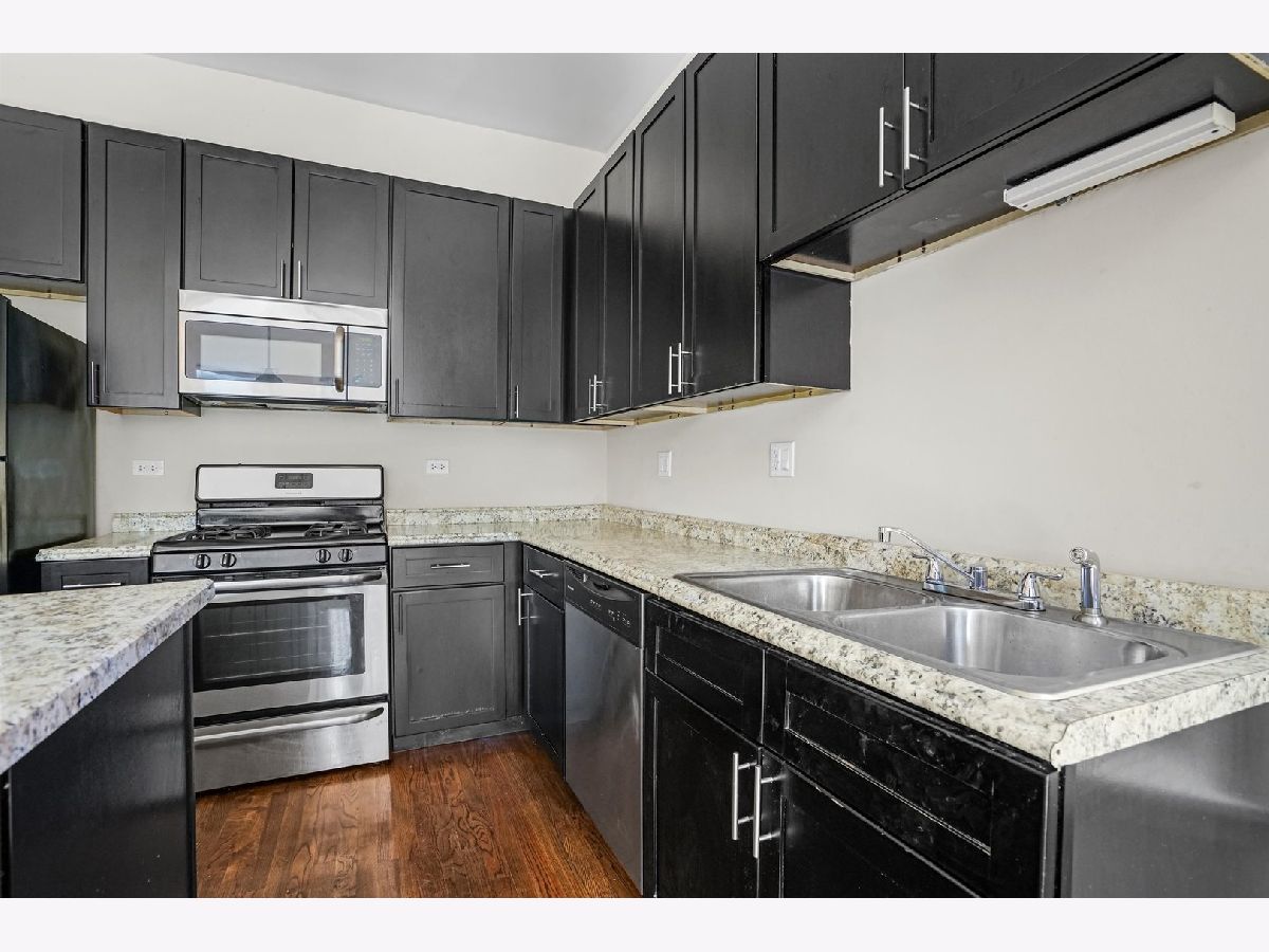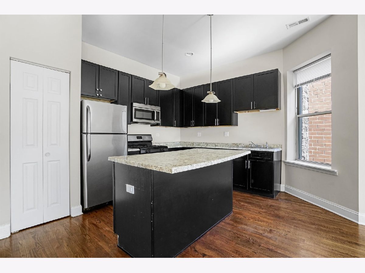 Gorgeous unit is located on the 2nd floor with plenty of natural sunlight! Upon entry, you will make your way through the hallway and find the 3 spacious bedrooms. The primary bedroom comes complete with a walk-in closet and a full ensuite bathroom. Continue through the hallway where you will find the open space featuring the dining room, living room, and kitchen all with hardwood flooring. The kitchen boasts black cabinetry, stainless steel appliances, and a center island. An in unit laundry room with a washer and dryer. 1 parking space included off alley. Cats and dogs okay, 30 pound weight limit. Application Fee: $70.00 Per applicant over 18 | Admin-In Fee: $500 | Income Requirement: 3.25x the Gross Rent | *All applications are subject to review and verification