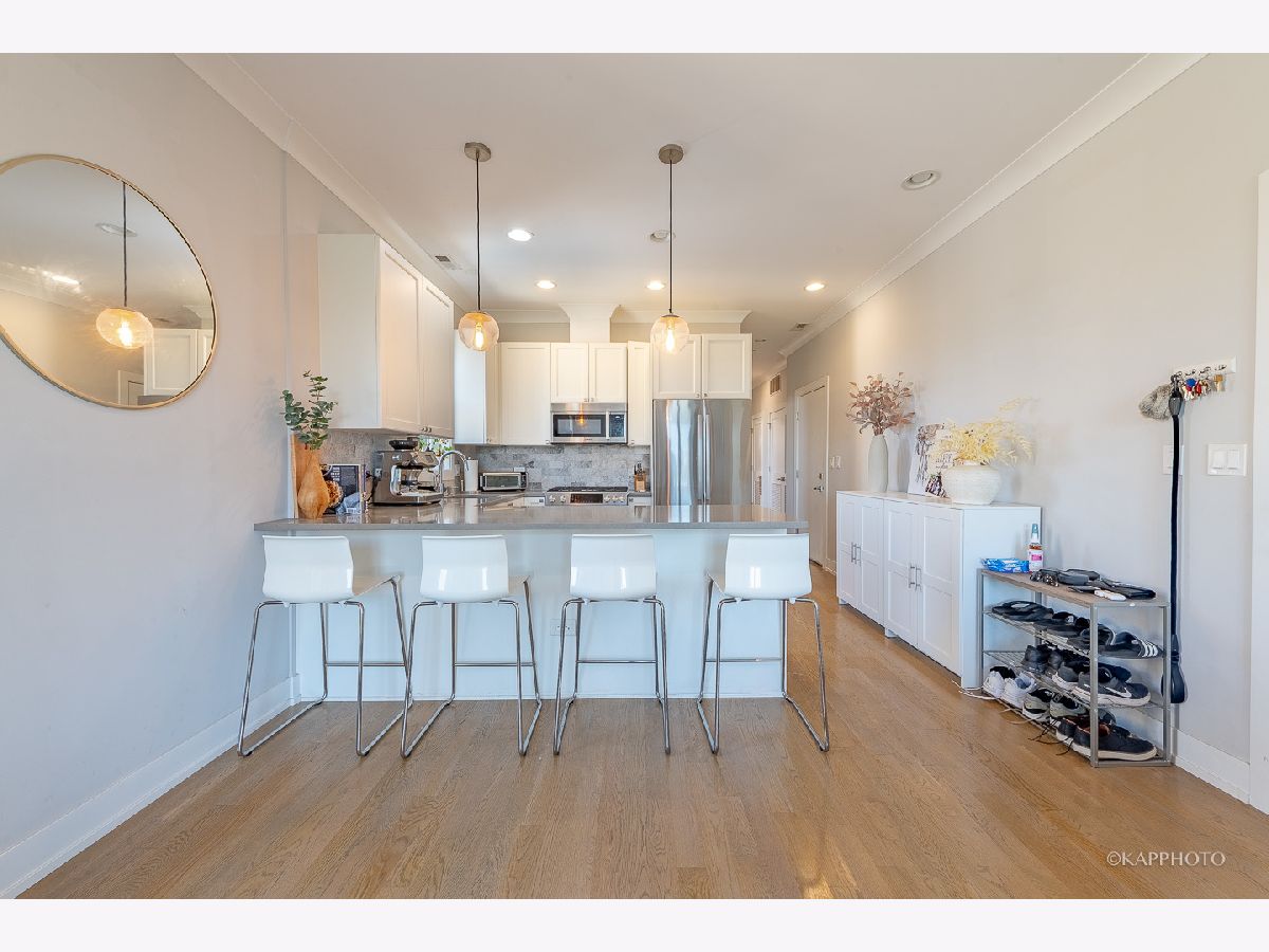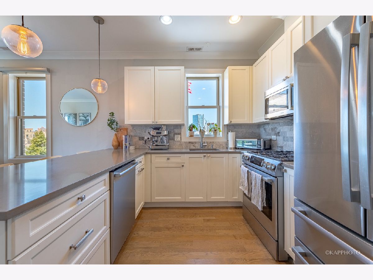 Welcome to this stunning 2 bed/2 bath luxury condo located in the heart of Chicago's vibrant West Loop neighborhood. Situated in the exclusive 457 N Aberdeen building, Unit 4N offers a blend of modern design, spacious living, and breathtaking city views. Spacious and bright, this unit features 2 large bedrooms, including a primary suite with a walk-in closet and a spa-like en suite bathroom. The expansive living and dining area is perfect for entertaining, with floor-to-ceiling windows that flood the space with natural light and offer sweeping skyline views. Equipped with high-end stainless steel appliances, quartz countertops, custom cabinetry, and an island, this kitchen is a dream for both cooking and hosting. Step outside to your private balcony, perfect for morning coffee or evening relaxation, while enjoying panoramic views of the city. Gorgeous hardwood floors flow throughout the living spaces, adding warmth and elegance to the contemporary design. Includes 1 assigned parking space. Enjoy the convenience of a full-sized washer/dryer. Prime West Loop location: steps away from some of Chicago's best dining, shopping, and nightlife options. Walk to renowned restaurants like Au Cheval, The Aviary, and Girl & the Goat. Enjoy easy access to the Fulton Market District, the Chicago River, and the city's thriving tech and business hubs. Conveniently located near major highways, public transportation, and the CTA Blue/Green Lines, making it easy to get around the city.