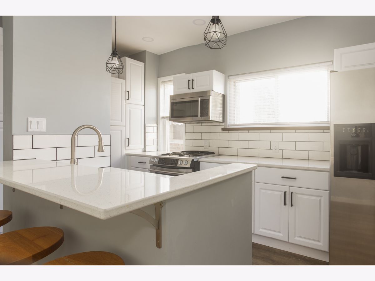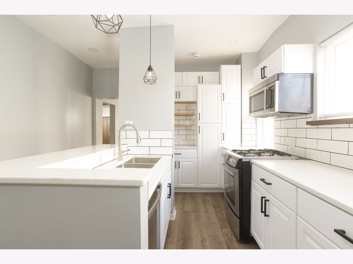 Available Now, beautiful, bright, newly remodeled Three bedroom One bathroom + office unit in Portage Park. The apartment features a stunning brand new upgraded Kitchen with Stainless steel appliances, hardwood floors, separate living and dining rooms and shared yard. Utilities are included in the rent: heating, hot water, water, sewer and trash. Short distance to the Grayland Metra, CTA Blue line, shopping, 90/94 express ways, and all that portage park and old Irving park have to offer. Great Must see unit!! Contact to schedule your showing. Listing price is reflective of an 9-month lease. A Well behaved pet may be considered. Shared laundry in the basement.