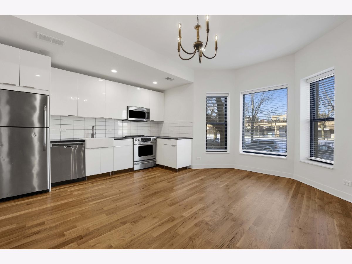 Newly renovated 3-bedroom, 2-bath residences located in the heart of Bronzeville. Units feature exposed brick, high ceilings, and excellent natural light throughout. Kitchens offer stainless steel appliances, granite countertops, and subway tile finishes. Hardwood floors throughout, in-unit washer/dryer, and efficient HVAC systems provide comfort and convenience. The building features secure entry with video surveillance. Garage parking available. Conveniently located near public transportation, dining, museums, and shopping, offering a blend of historic character and modern updates.