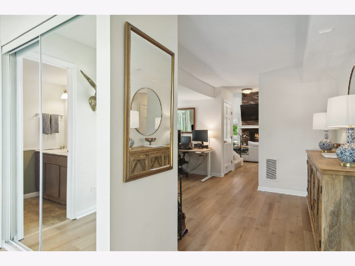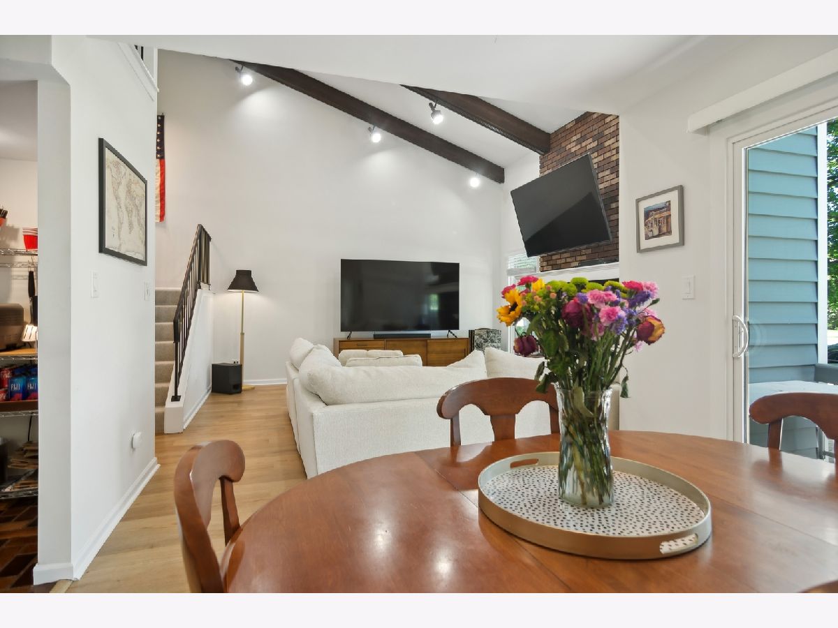 Welcome to this spacious and tastefully updated 3 bed/ 2.5 bath corner townhouse in the sought after community of Harmony Village. This townhouse is not your typical cookie cutter property. The open concept main floor has Luxury vinyl floors throughout. The generous light filled living room has dramatic vaulted ceilings with exposed beams and a decorative fireplace. The large kitchen opens to the dining room which is great for entertaining and a deck off of the dining room is convenient for grilling or enjoying the summer nights. Also on the main level is an office, 1/2 bathroom, and the attached 1 car garage. The 2nd level features new carpet, 3 generous sized bedrooms and 2 full baths. The lower level offers a ton of space including a finished family room, tons of storage and the laundry room. The community has a really nice outdoor pool and clubhouse. Great location close to the Metra and minutes from shopping and restaurants.
