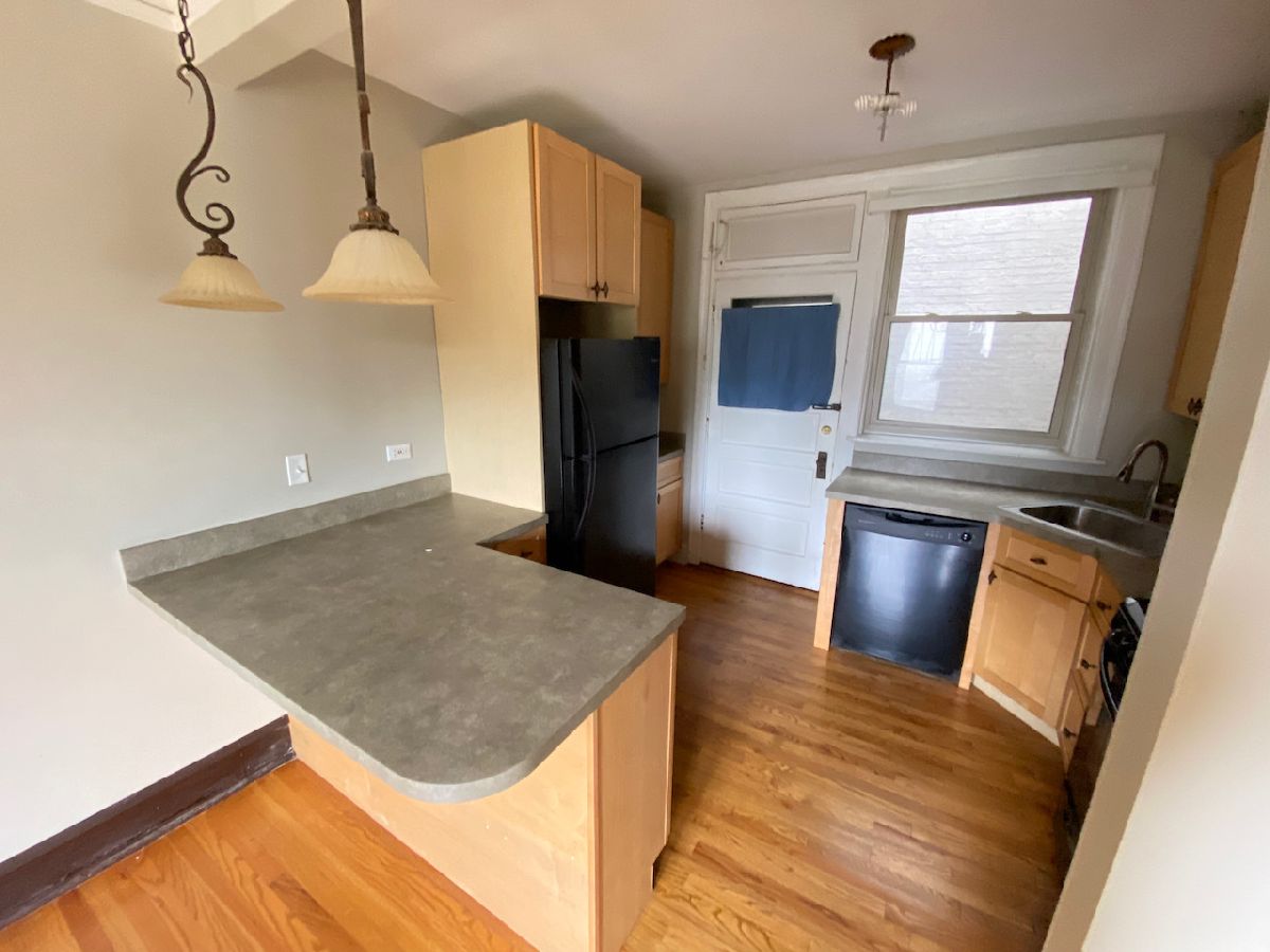 Location, Location, Location!! Don't miss the opportunity to live in this , Lovely Large 1BR condo w/Beautiful hardwood floors throughout, separate Dining Room, Kitchen w/breakfast bar. Nice Sized Closet & Laundry Room for In-unit washer/dryer, (A Coin Laundry is also available in the Building), Nice Corner unit w/bay window & lots of light. Short Walk to Madison St nightlife & Trains.