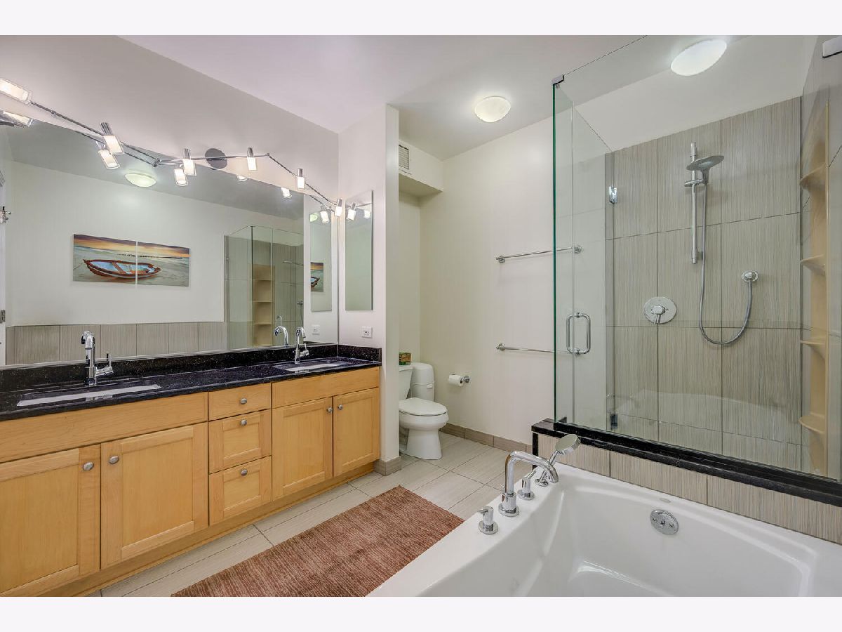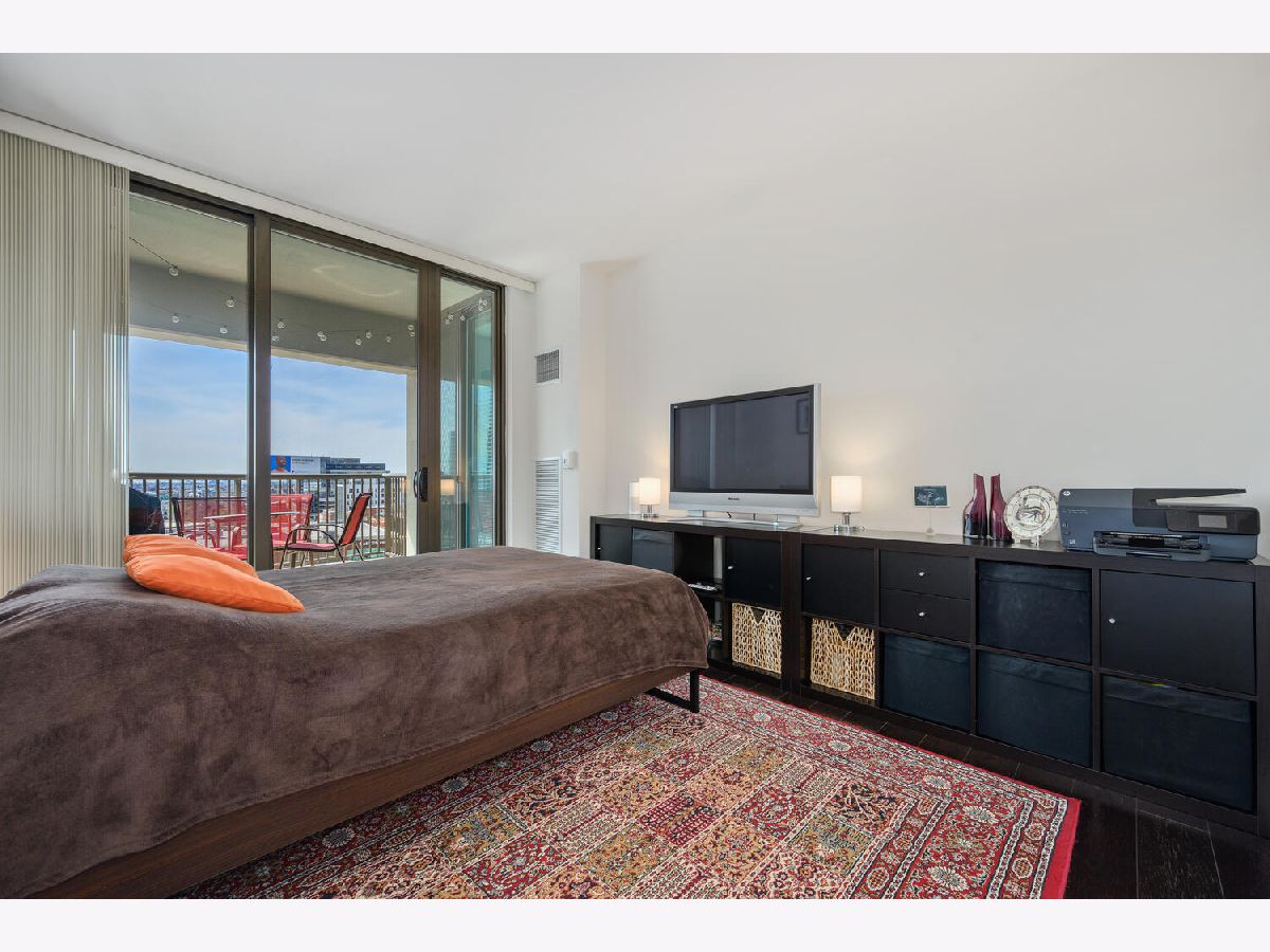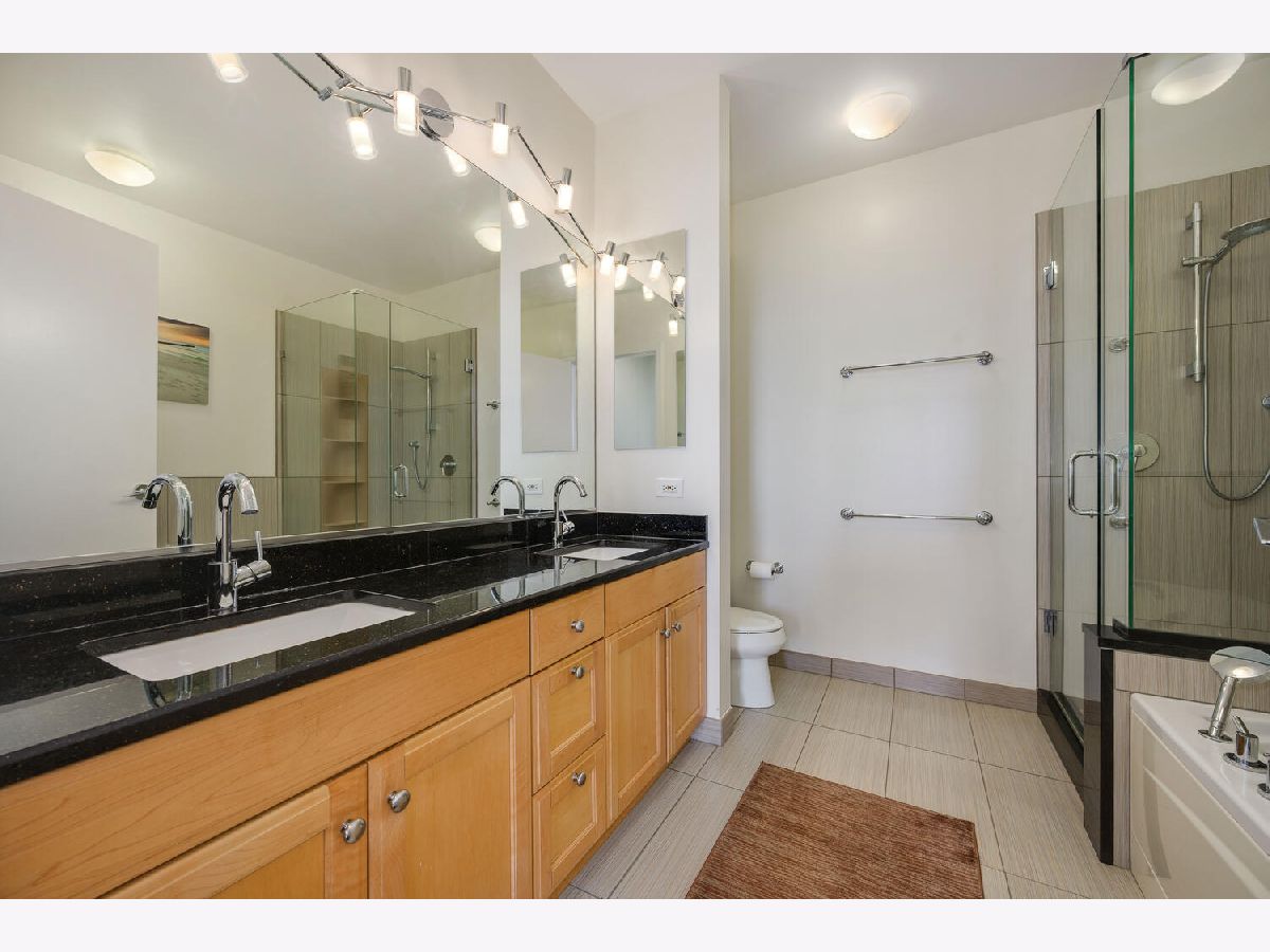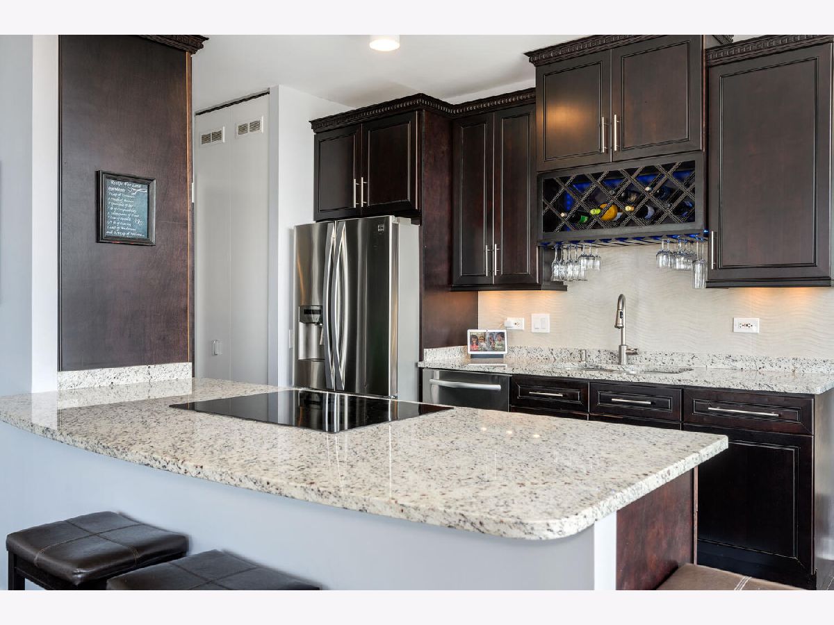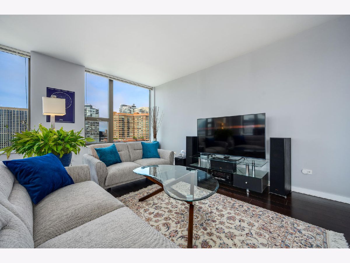 Beautifully renovated 2 bedroom 2 bathroom Unit at Kinzie Park. Hardwood flooring throughout, open kitchen with newer cabinets and premium stainless steel appliances , stone countertops, and custom tile work. Professional closet organizers in the primary bedroom. This northwest facing residence has a split bedroom plan and generous storage options in every room. The oversized terrace works seamlessly with the interior space providing easy in/out living. Kinzie Park offers 24 hour attended gated entry with free guest parking, lush gardens/common area outdoor space with Riverwalk, pool, gym, 24 hour door staff, bike room, party/meeting room with full kitchen, on site management, 24 hour engineering staff, generous storage area and heated parking garage parking available /additional $200. Urban Living has been perfected at Kinzie Park!