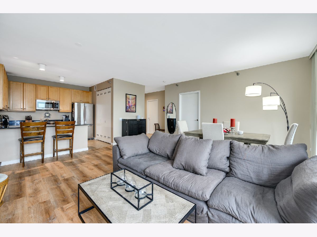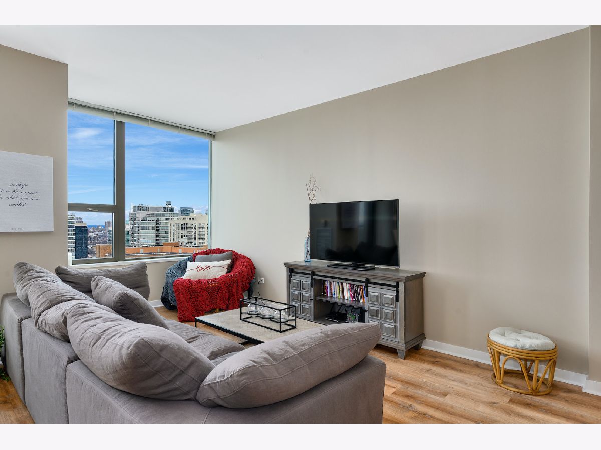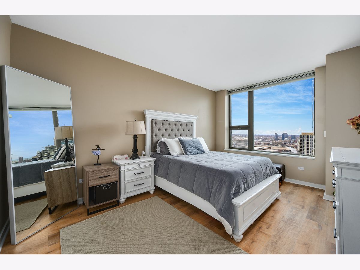 Parking was not included in the Rental. Over 900 square feet of gracious and functional space featuring open Kitchen with high end appliances, large integrated balcony with stellar city and river views, large bedroom and endless storage including new custom elfa system in hallway and bedroom . First class building amenities are standard at Kinzie Park including 24 hour gate attendant, free guest parking, manicured common grounds, 24 hour doorman, pool, health club and secure indoor heated garage parking. Satellite television and internet are included as well as heat and AC. Lovely residential building with high owner occupancy.