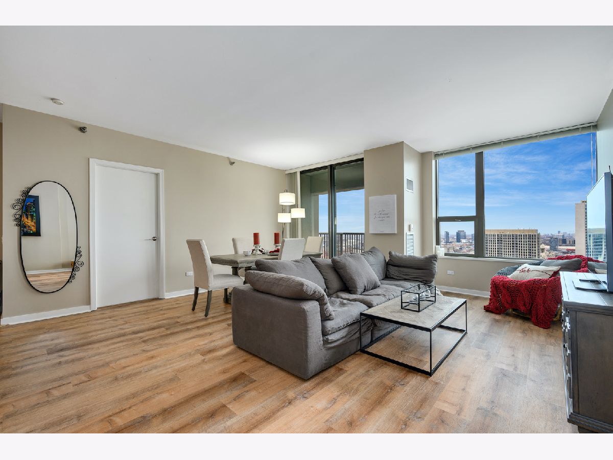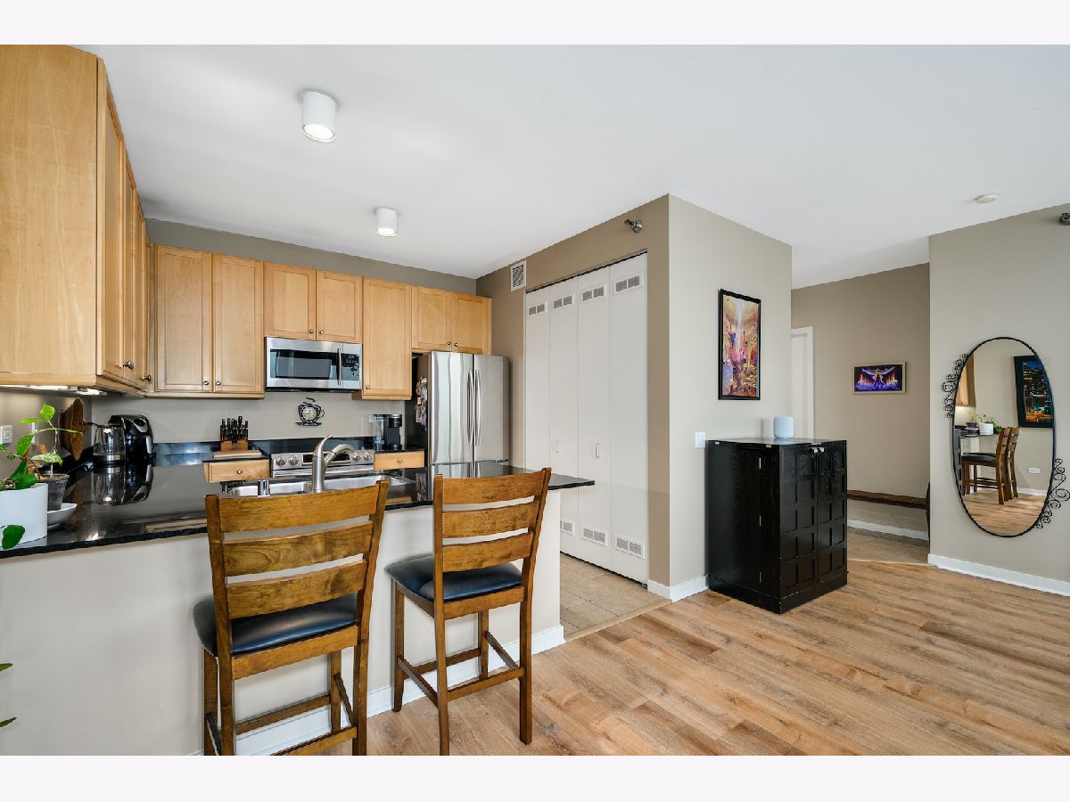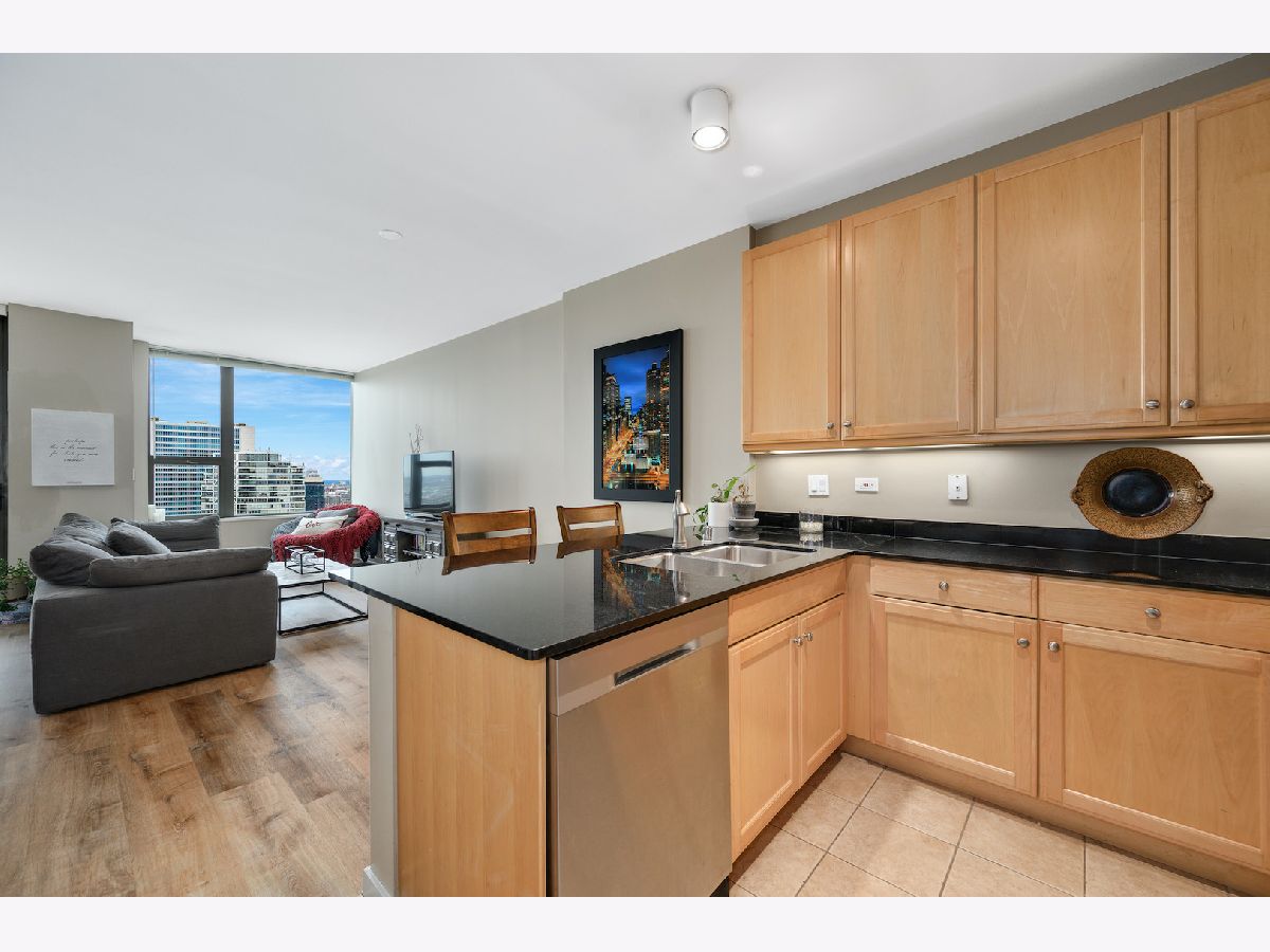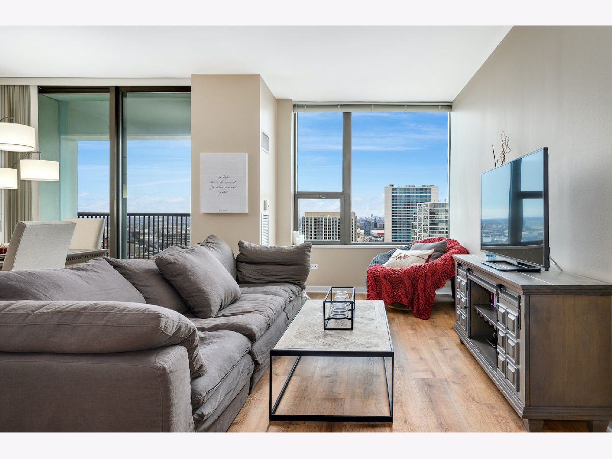 Parking was not included in the Rental. Over 900 square feet of gracious and functional space featuring open Kitchen with high end appliances, large integrated balcony with stellar city and river views, large bedroom and endless storage including new custom elfa system in hallway and bedroom . First class building amenities are standard at Kinzie Park including 24 hour gate attendant, free guest parking, manicured common grounds, 24 hour doorman, pool, health club and secure indoor heated garage parking. Satellite television and internet are included as well as heat and AC. Lovely residential building with high owner occupancy.
