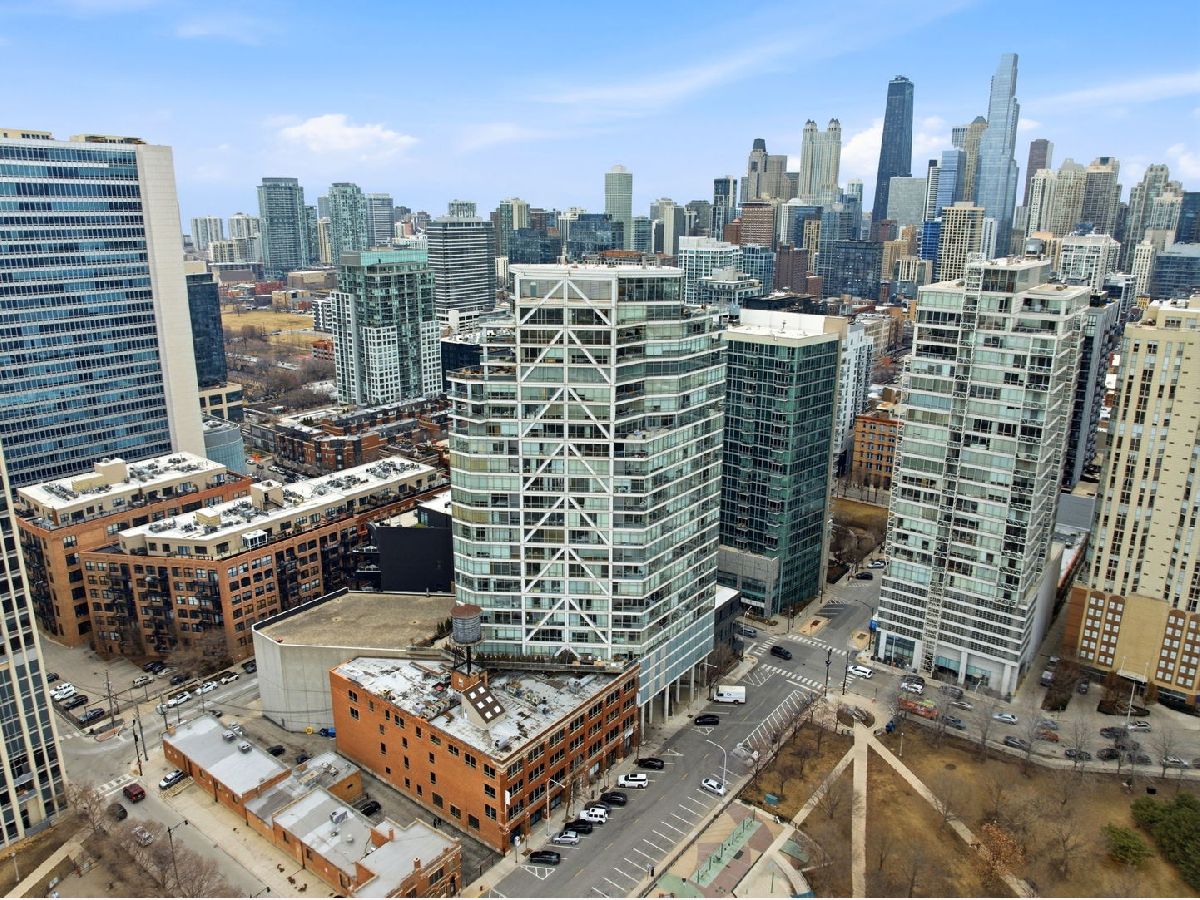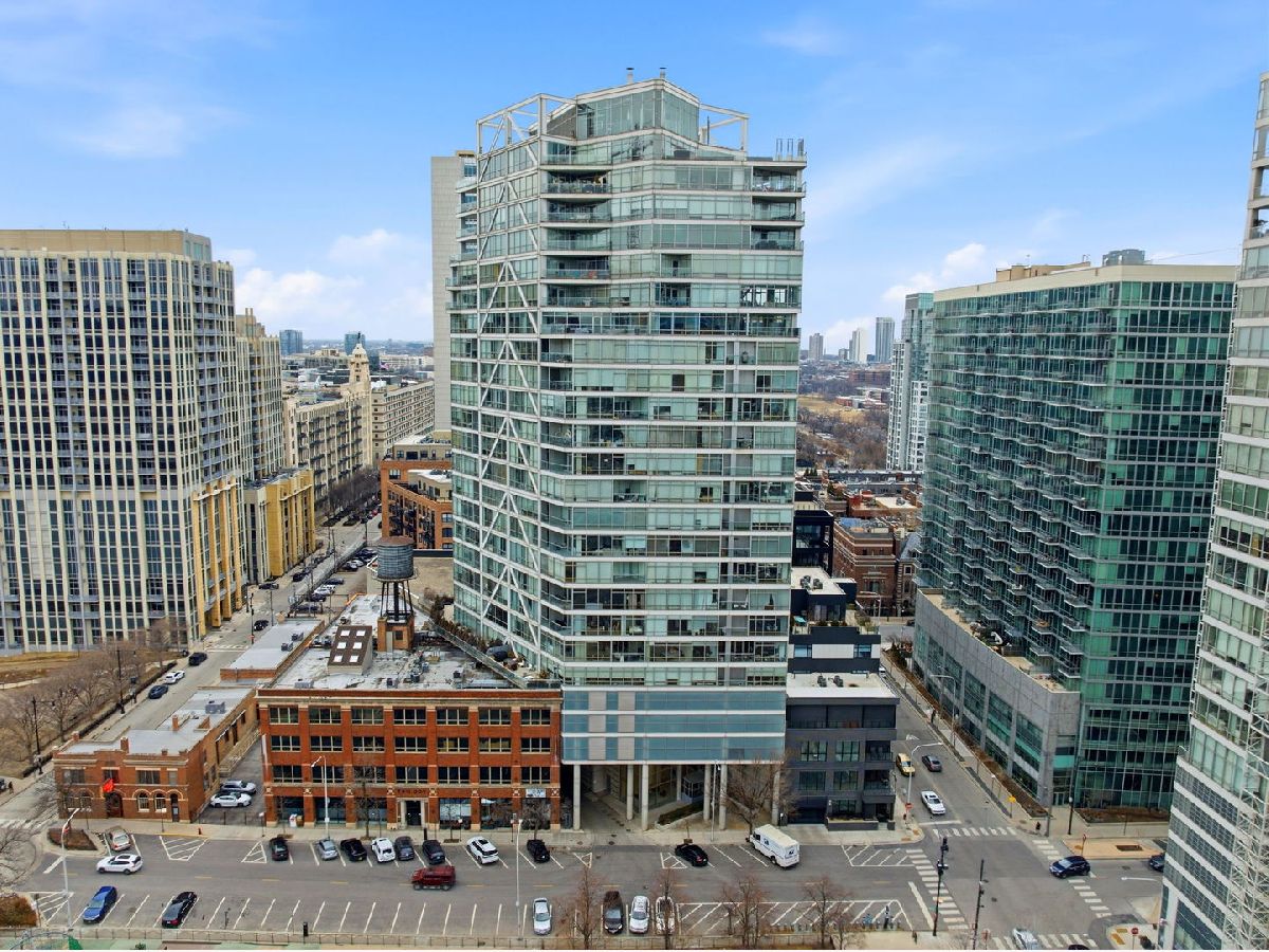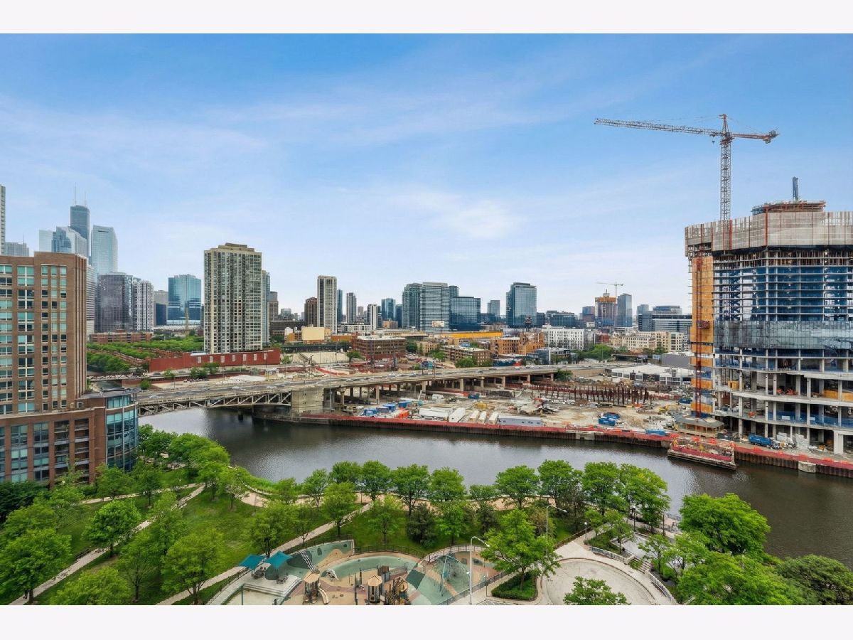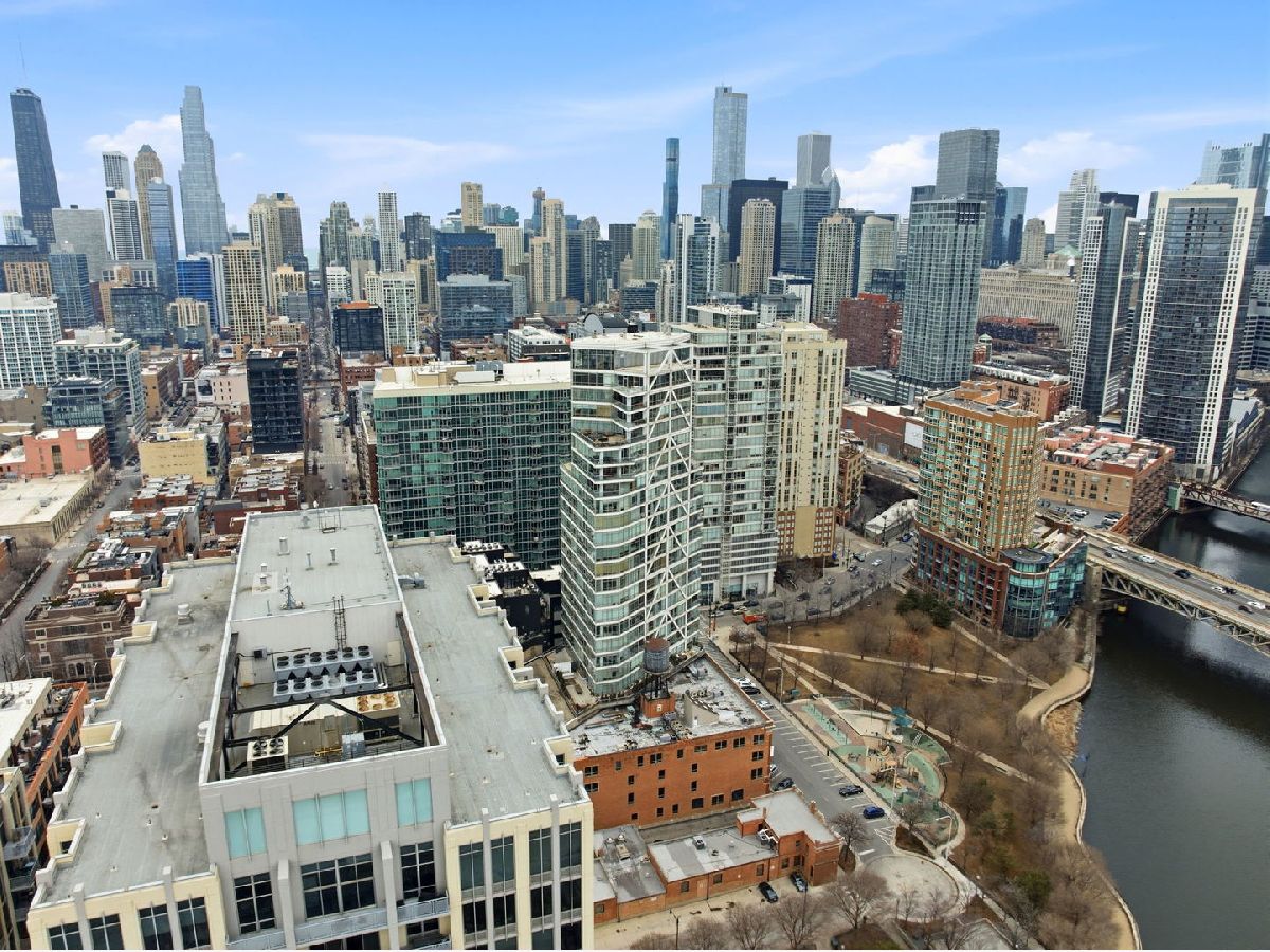 Stunning corner 2-bedroom, 2-bath residence featuring floor-to-ceiling windows in every room, offering unobstructed and endless north, south, and west views of Montgomery Park and the river. The sleek island kitchen is designed for both everyday living and entertaining, showcasing stainless steel appliances, rich chocolate Bulthaup cabinetry, granite countertops, and a spacious breakfast bar. Enjoy privacy and comfort with a desirable split-bedroom floor plan. The expansive ensuite primary suite features a custom bathroom vanity, soaking tub, and separate walk-in shower, creating a true retreat. A large private balcony off the living room offers breathtaking city views - perfect for relaxing or entertaining. Additional highlights include California closets throughout and an in-unit washer and dryer. Full-amenity building with 24-hour door staff, fitness center, and on-site management. Ideally located in vibrant River North, offering easy access to public transportation and expressways, and just steps from top restaurants, shopping, the East Bank Club, and a 2-acre park with dog park and riverwalk access. Includes storage locker #97 and two tandem heated garage parking spaces (#2-33 & #2-34).