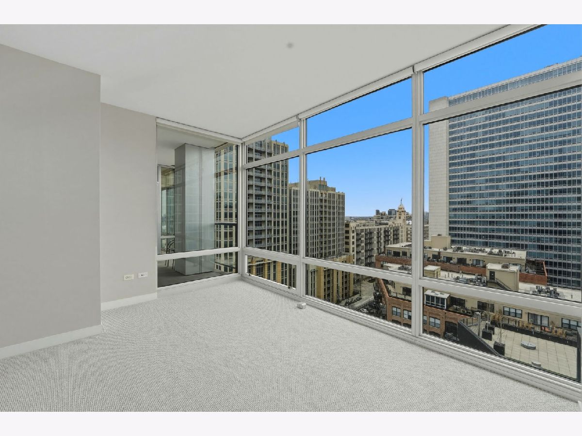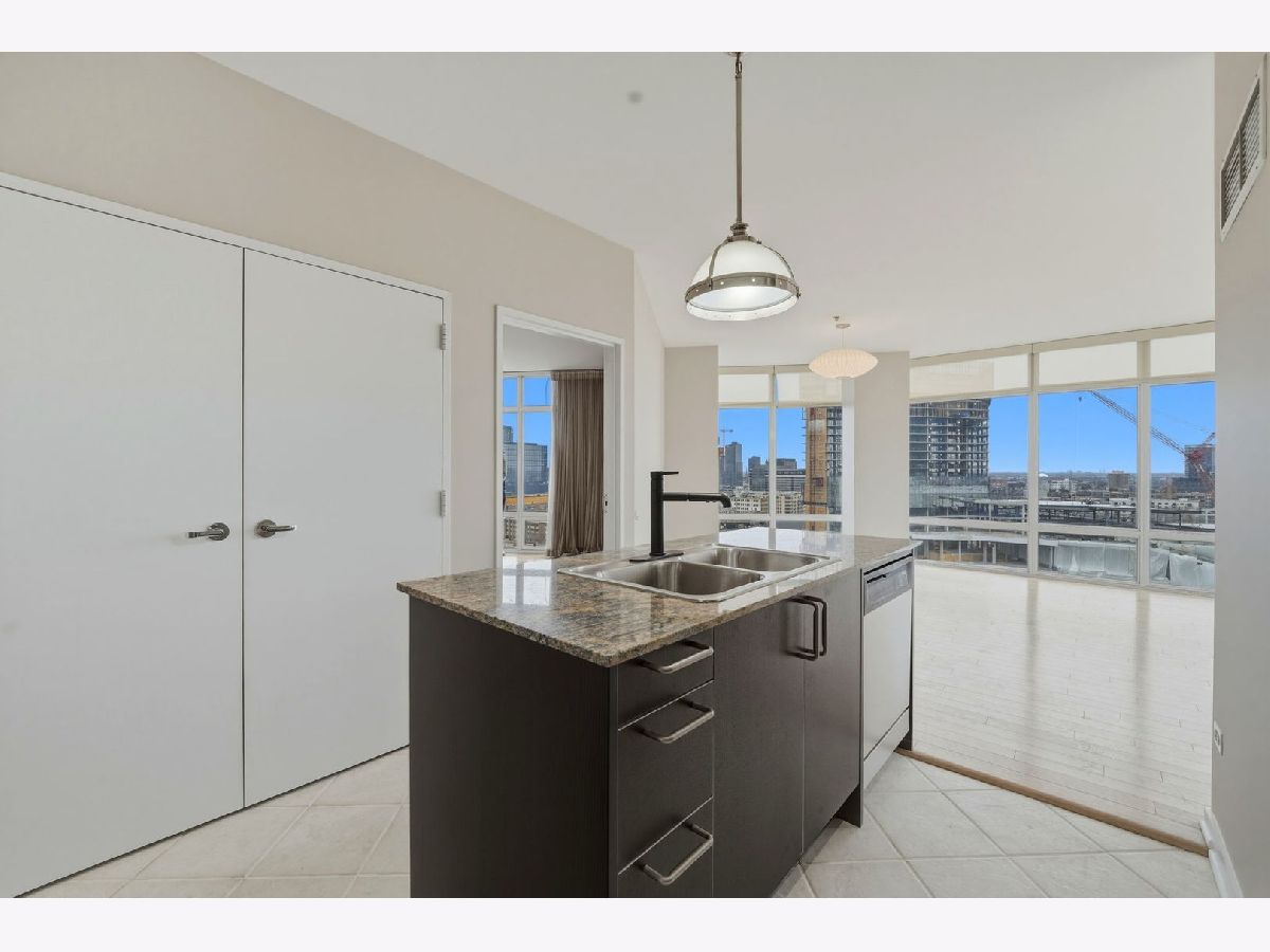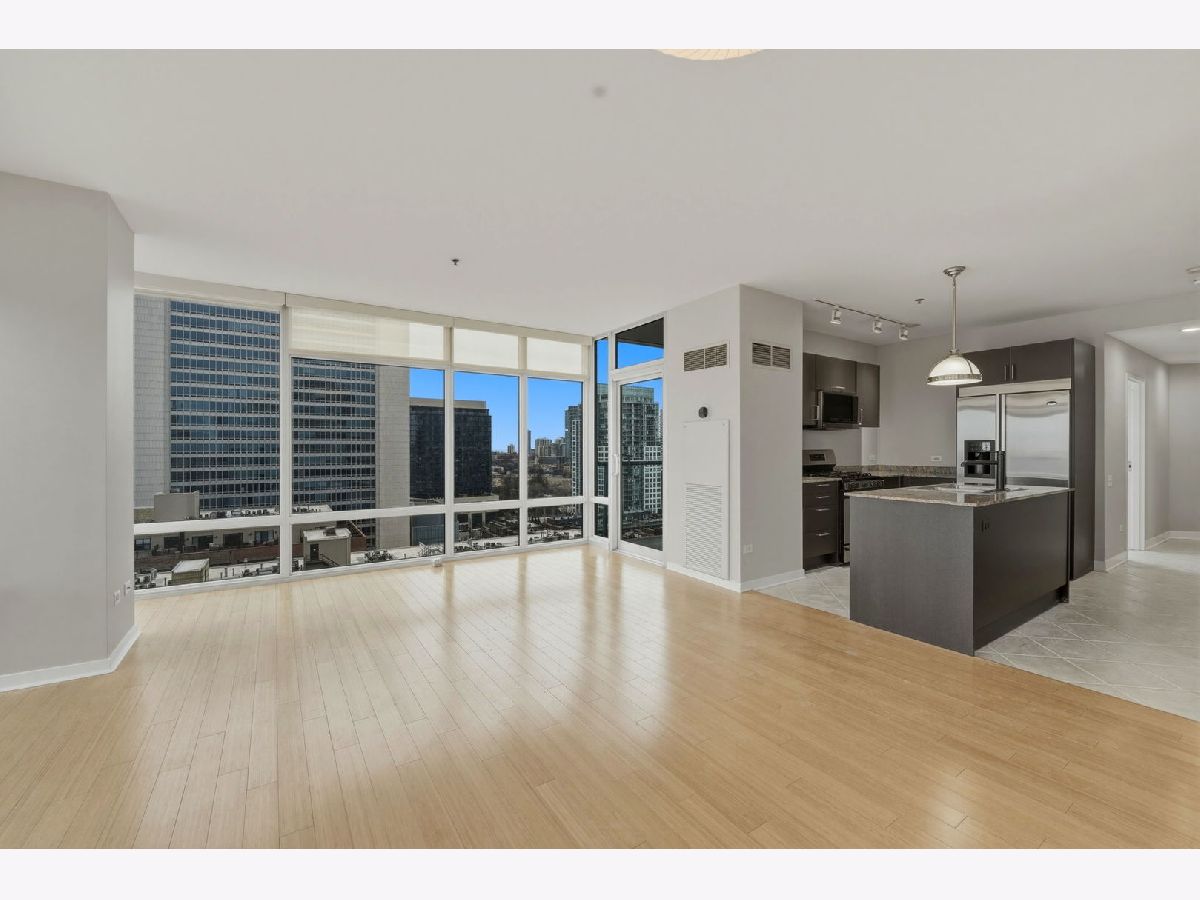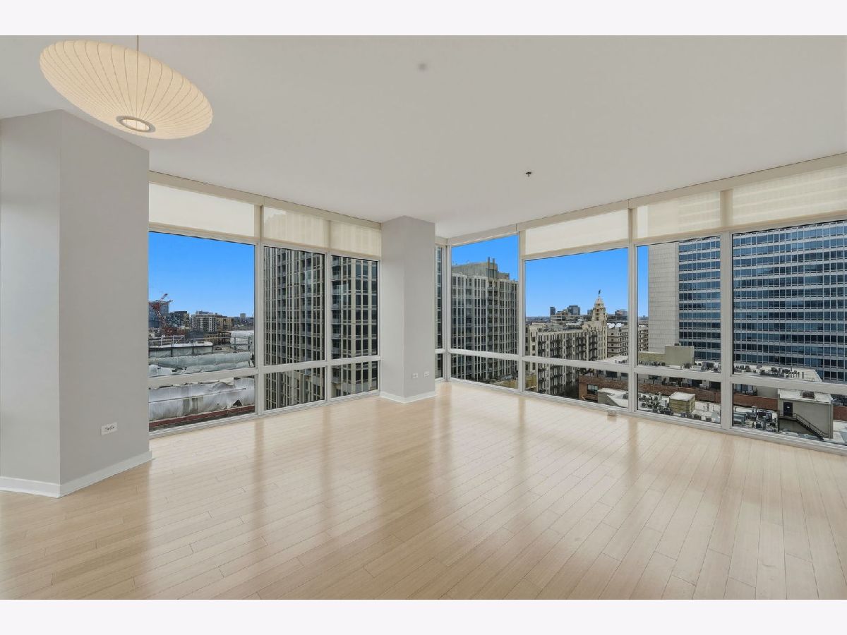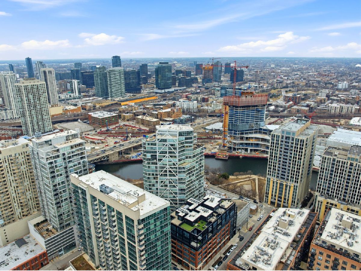 Stunning corner 2-bedroom, 2-bath residence featuring floor-to-ceiling windows in every room, offering unobstructed and endless north, south, and west views of Montgomery Park and the river. The sleek island kitchen is designed for both everyday living and entertaining, showcasing stainless steel appliances, rich chocolate Bulthaup cabinetry, granite countertops, and a spacious breakfast bar. Enjoy privacy and comfort with a desirable split-bedroom floor plan. The expansive ensuite primary suite features a custom bathroom vanity, soaking tub, and separate walk-in shower, creating a true retreat. A large private balcony off the living room offers breathtaking city views - perfect for relaxing or entertaining. Additional highlights include California closets throughout and an in-unit washer and dryer. Full-amenity building with 24-hour door staff, fitness center, and on-site management. Ideally located in vibrant River North, offering easy access to public transportation and expressways, and just steps from top restaurants, shopping, the East Bank Club, and a 2-acre park with dog park and riverwalk access. Includes storage locker #97 and two tandem heated garage parking spaces (#2-33 & #2-34).