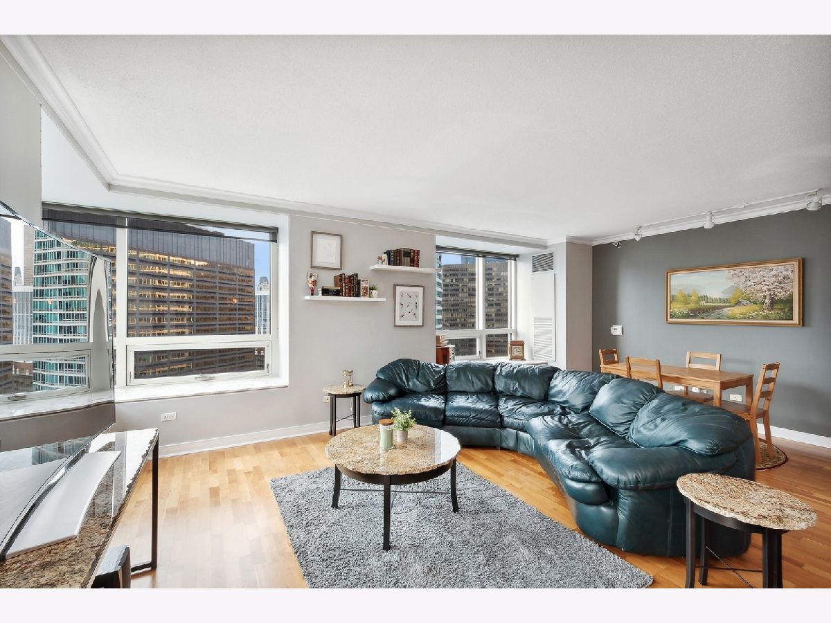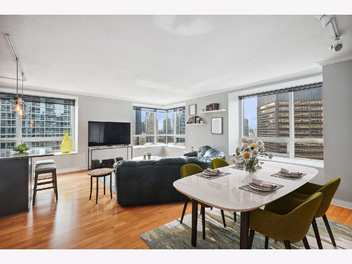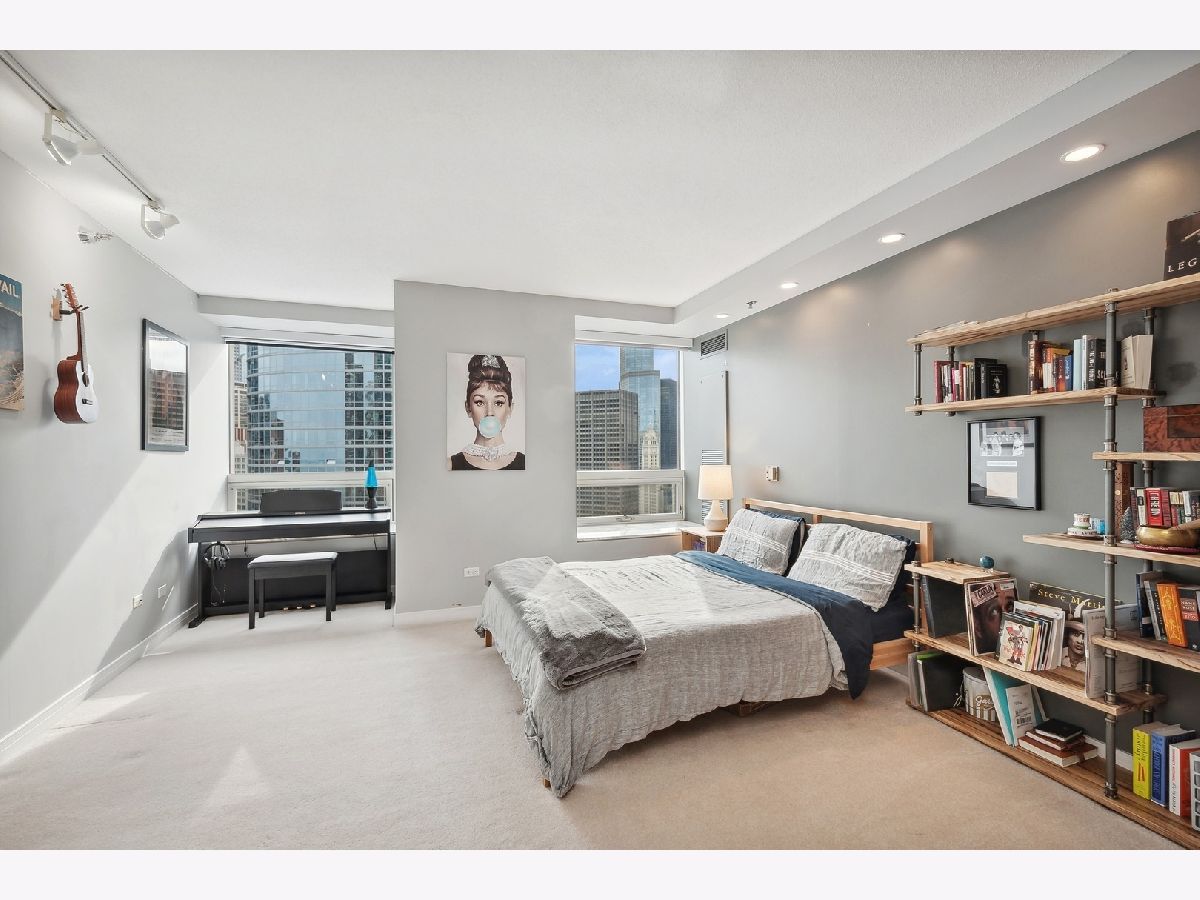 Beautiful 2 Bedroom 2 Bath in Streeterville with over 1445 sq ft of living space. You will be impressed with the spacious living and dining room and large, picturesque windows showcasing the skyline views. The condo features three exposures offering a light filled space with Views to the South, North and West. The grey toned galley kitchen offers plenty of cabinet space, an island with breakfast bar and all brand-new SS appliances. The split bedroom floor plan allows for privacy from the primary suite. The suite includes two huge windows, a walk-in closet, soffit lighting and bath with deep soaking tub/shower and new lighting. The secondary bedroom includes a wall of closets and space for a queen size bed. Newer washer and dryer in unit for your convenience. Great closets and storage. Full amenity, well-managed building with 24 hr. door staff, exercise room, entertainment suite and beautiful sundeck with grilling kitchens. Conveniently located to Whole Foods, Target, Walgreens and the AMC Movie Theater and countless restaurants. Rental Parking available.