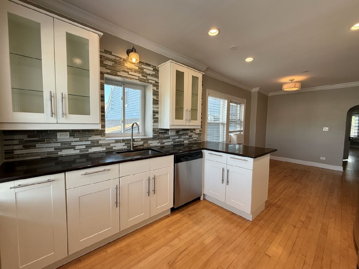 Beautiful 2 bedroom apartment in Jefferson Park! Remodeled unit features a large eat-in kitchen with granite countertops and stainless steel appliances, including dishwasher! Hardwood floors throughout. Spacious living room will accommodate plenty of furniture. Free laundry in building. Heat, gas and water included in the rent. Plenty of street parking. Common backyard area for tenants' enjoyment. Super convenient location. Walk to Metra at Forest Glen and Jefferson Park, Blue line at Jeff Pk, the north branch bike trail at Forest Glen, also Mariano's, Target, LA Fitness, Starbucks all within walking distance.
