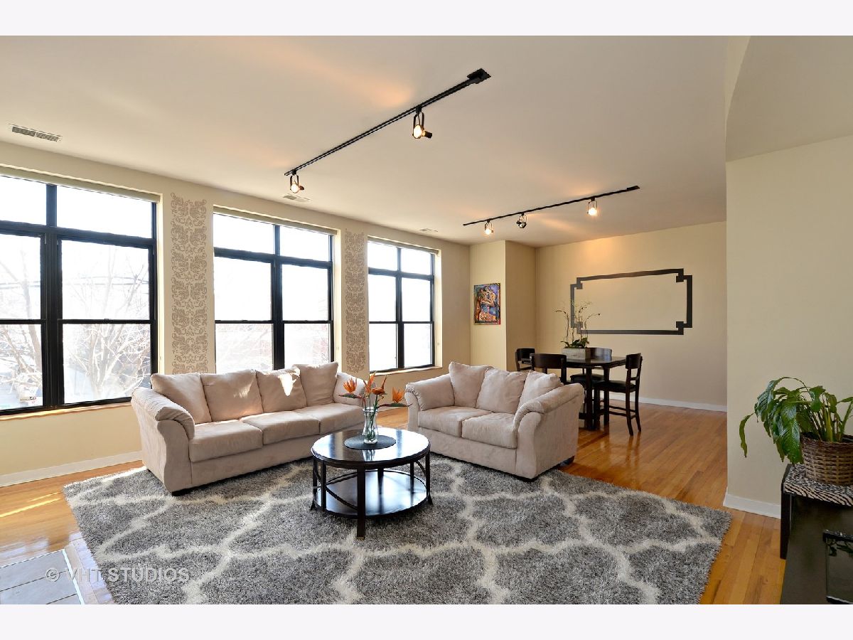 Introducing a stunning gem in Chicago's vibrant West Town neighborhood, this 2 bed 2 bath condo offers an exceptional living space and convenience at your fingertips, with elevator access straight to the unit foyer. The interior showcases an impressive floor-to-ceiling custom-built bookshelf, complementing the elegant hardwood floors and inviting ambiance created by the wood-burning fireplace. The spacious living room kitchen combo, with ample room for a full dining room set, is perfect for entertaining guests or simply enjoying day-to-day living. The master bedroom features an ensuite bath and a walk-in closet. Step out onto the large rear balcony, accessible from both bedrooms. With private garage parking and a prime location, this condo is a rare find that combines, comfort and convenience seamlessly. Additionally, the condo's close proximity to downtown Chicago ensures easy access to the local restaurants and shops, west loop, highways, cultural attractions, and more, making it an ideal choice for those seeking a dynamic urban lifestyle. Garage parking and massive storage room included in price. UNIT HAS BEEN FRESHLY PAINTED LIGHT GREY.