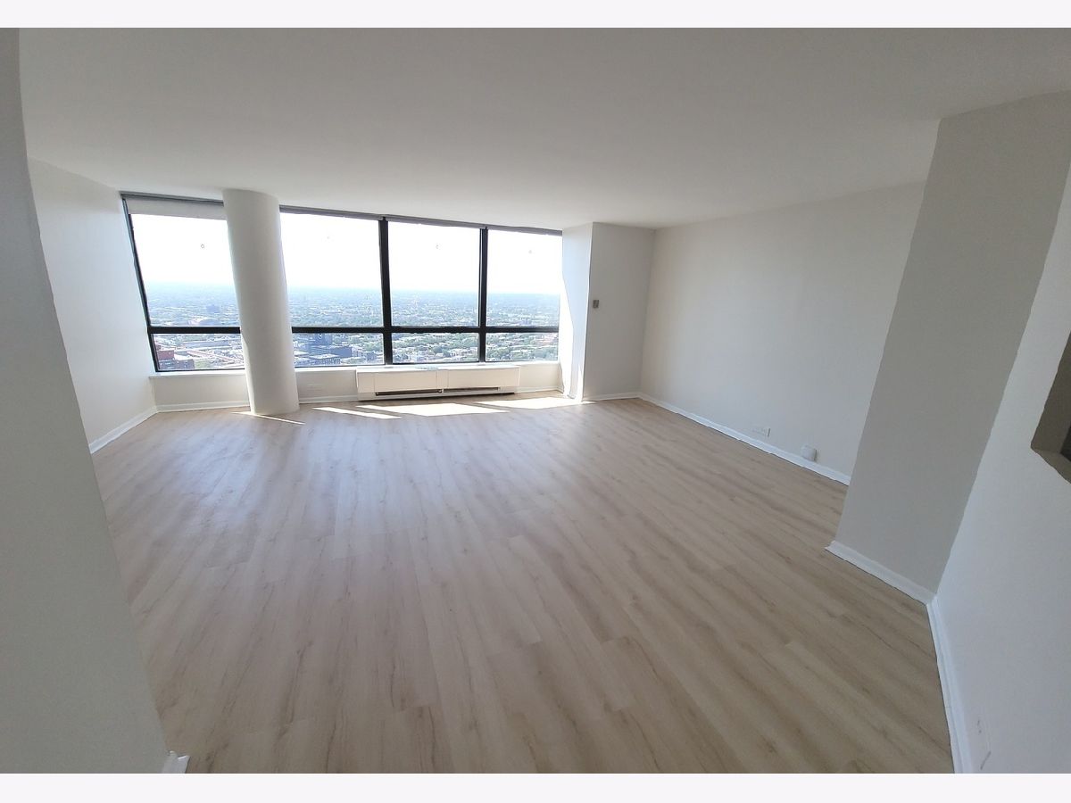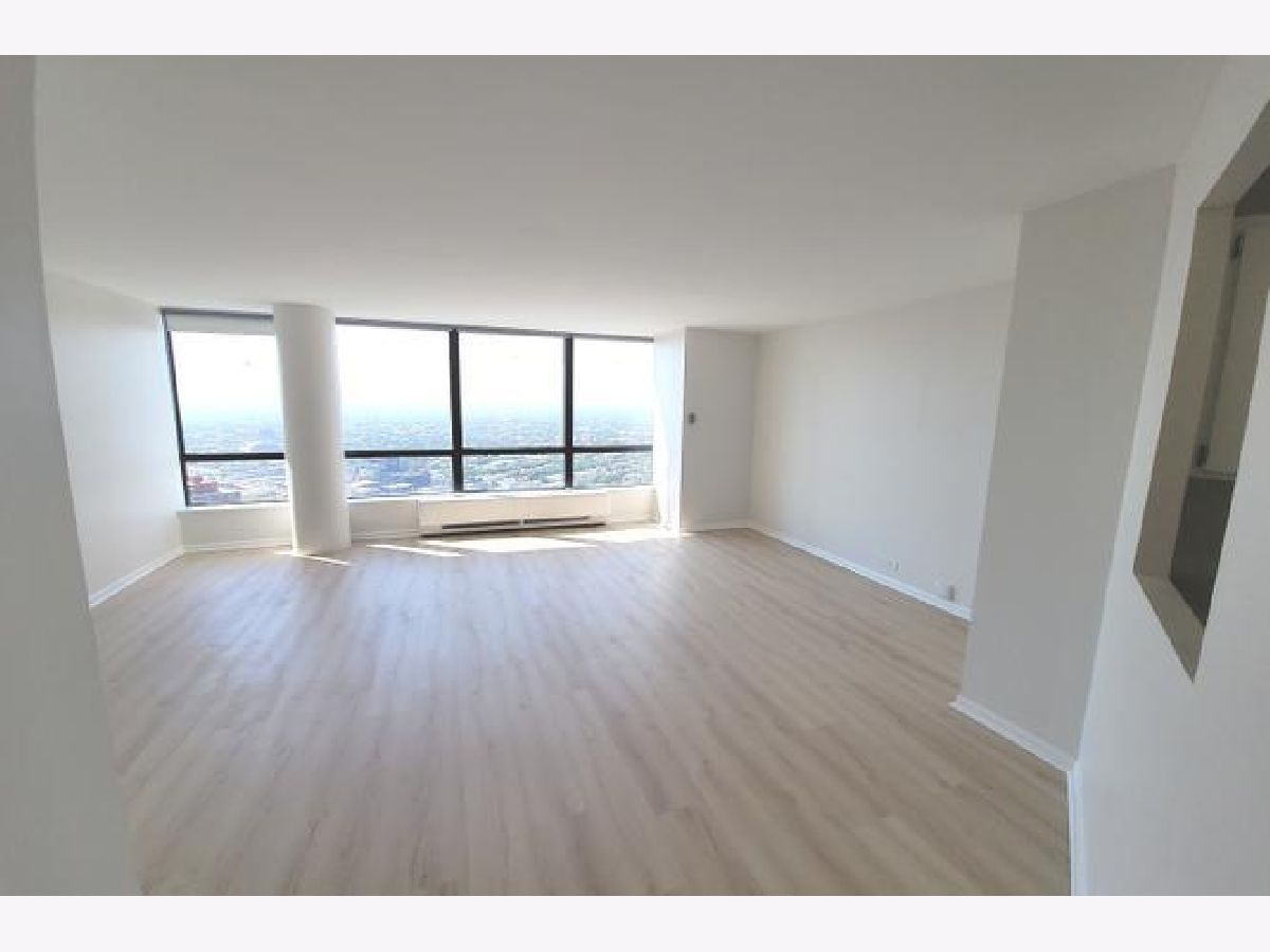 49th Floor. Spacious studio with amazing views of the Downtown Skyline, Lake and City Horizon! Vinyl floors throughout. Stainless steel appliances. Updated bathroom. Full amenity building. Join the Gym for a fee with an indoor and outdoor pools, cardio and weight rooms, racquetball court. 24 hour doorman, 24 hour package receiving room. Rent includes heat, a/c, cable and internet. Valet/garage parking is available for a fee. Available April 1st 2026. Pictures taken previously.
