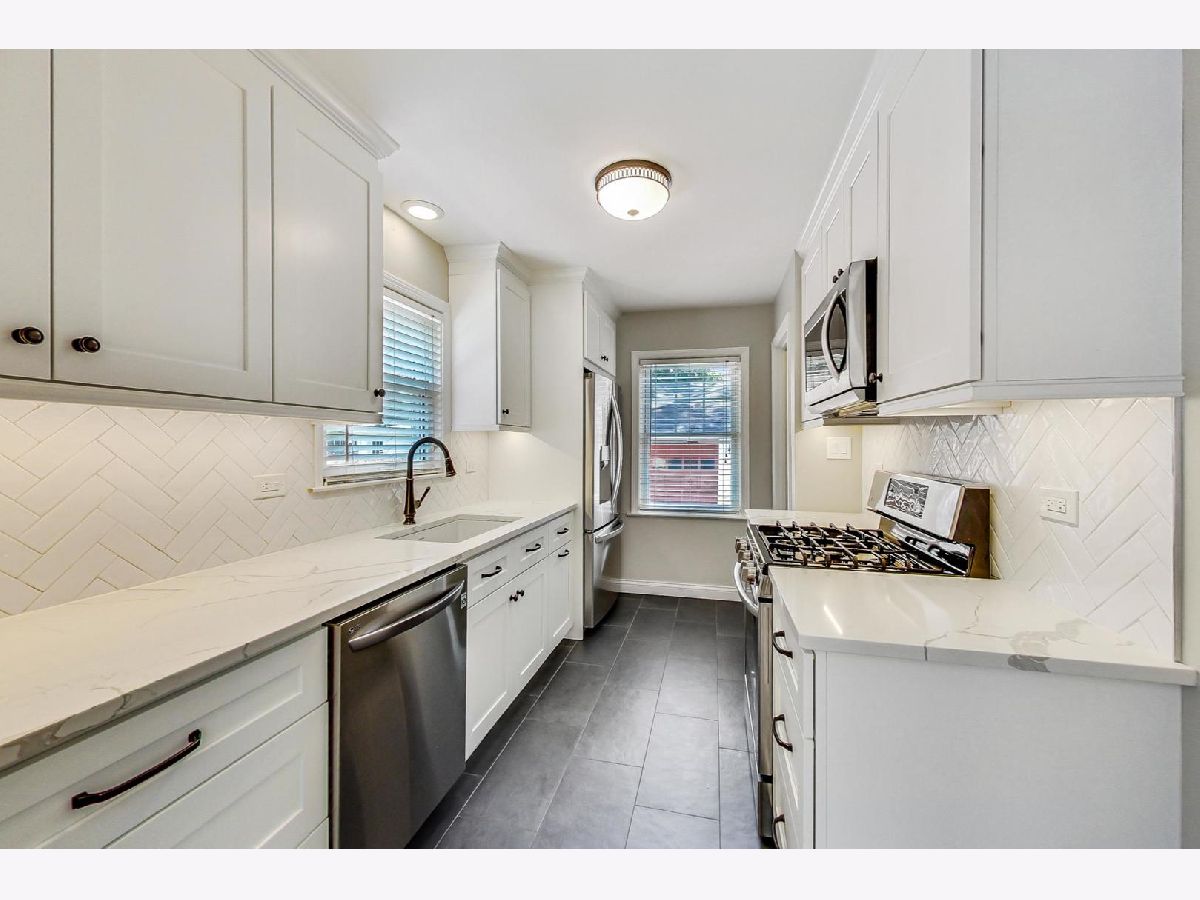 Highly sought-after walk to town neighborhood of Arlington Heights! Entirely updated 3 bedroom, 2 bathroom home is sure to impress! Bright, airy spaces and gleaming hardwood floors greet you throughout. Gourmet kitchen offers brand new stainless steel appliances, gorgeous quartz countertops and complimentary white herringbone backsplash. Sun drenched living room with adjoining dining room is prepared to host any gathering. Entertain with ease in the sprawling finished basement offering the perfect hangout spot, tons of storage space and a bonus office nook. Radiant heat located in full basement bathroom. Enhanced air quality with an Energy Recovery Ventilator (ERV). Huge mudroom offers many storage solutions including custom organizers with a bench, counter space and a pet wash station! Fully fenced backyard too! Enjoy all the outdoor activities with a stunning brick paver patio, rain garden, and play area. Get ready to fire up the BBQ with a convenient natural gas connection located at the patio. Extra large 2 car garage with prewire for car charger! Steps to Pioneer Park and Pool, Cronin Park, downtown Arlington Heights; restaurants, shopping, the Metra, and more! STELLAR schools include Westgate Elementary, South Middle and Rolling Meadows High School. Be in the heart of it all! Welcome home!
