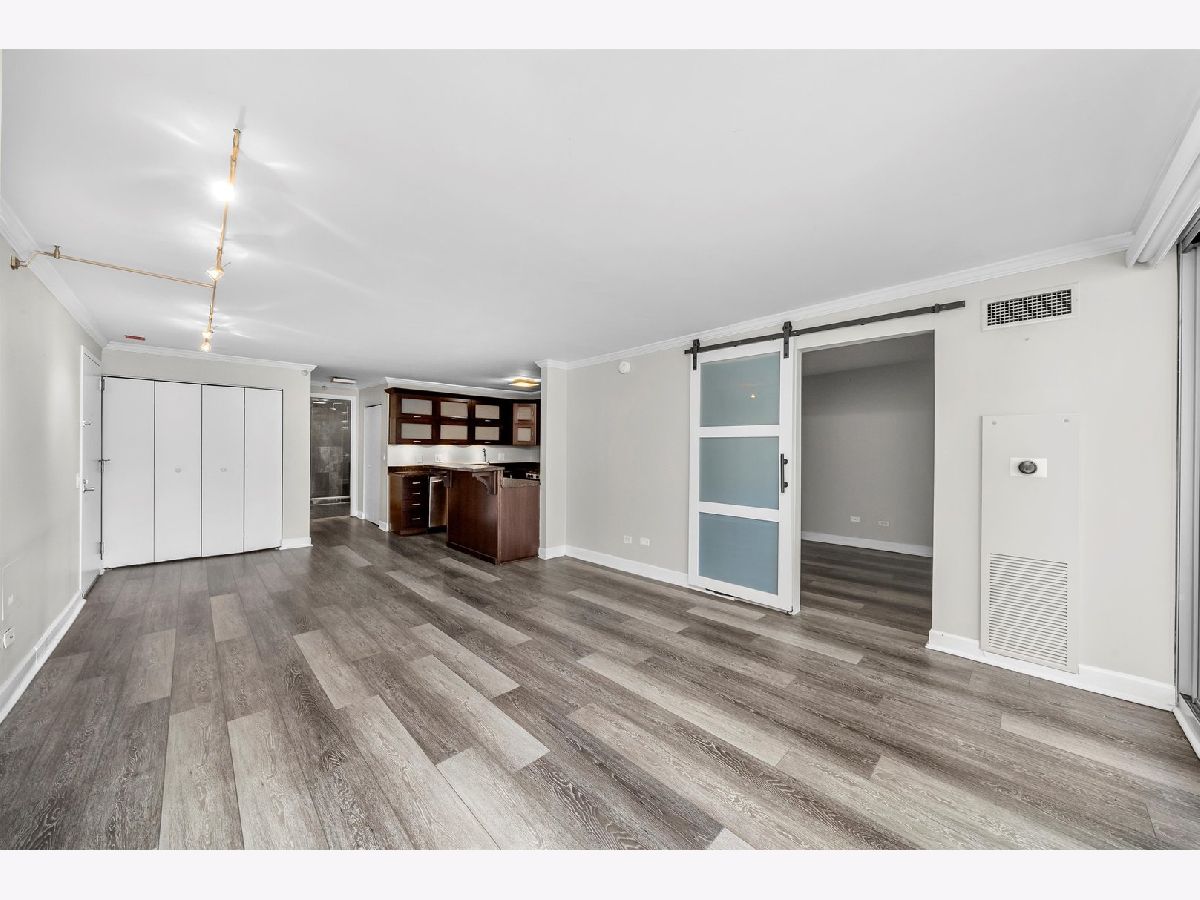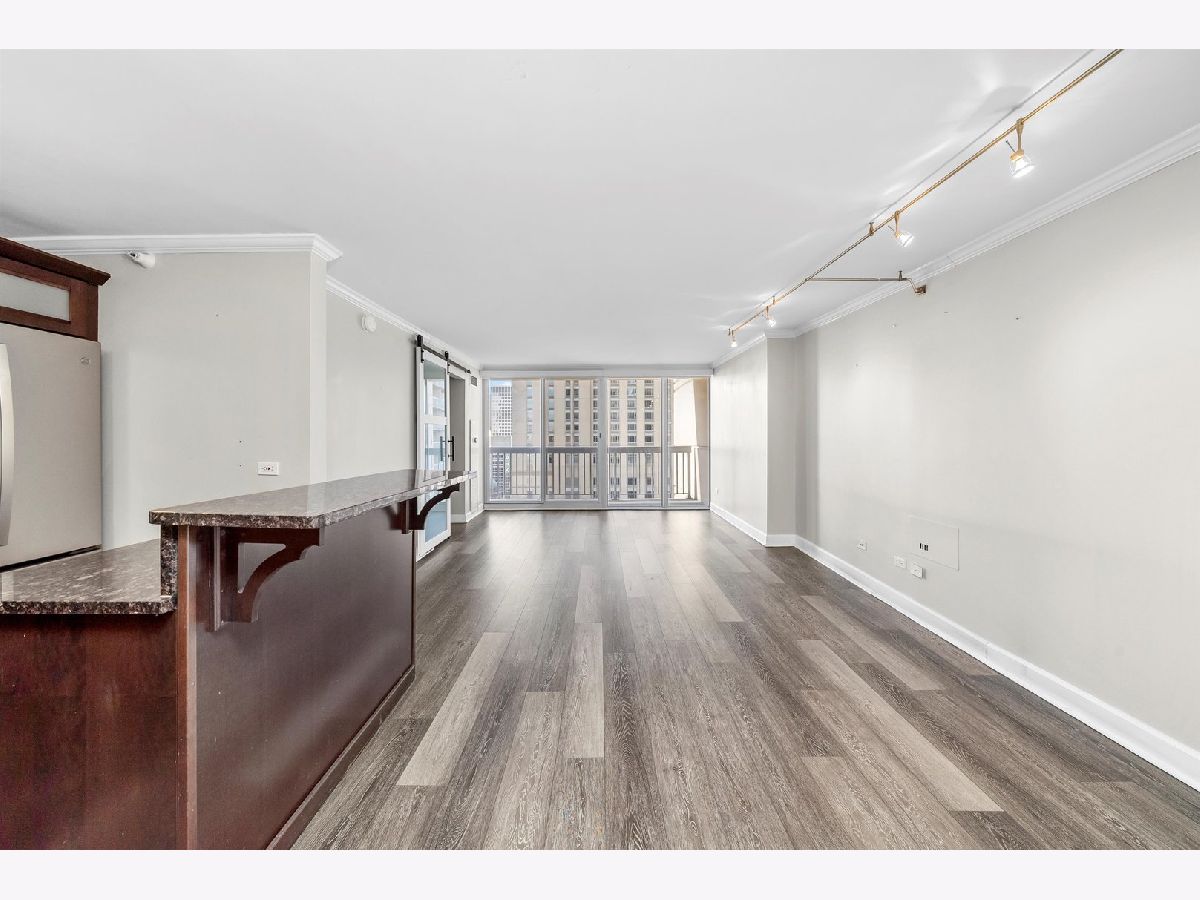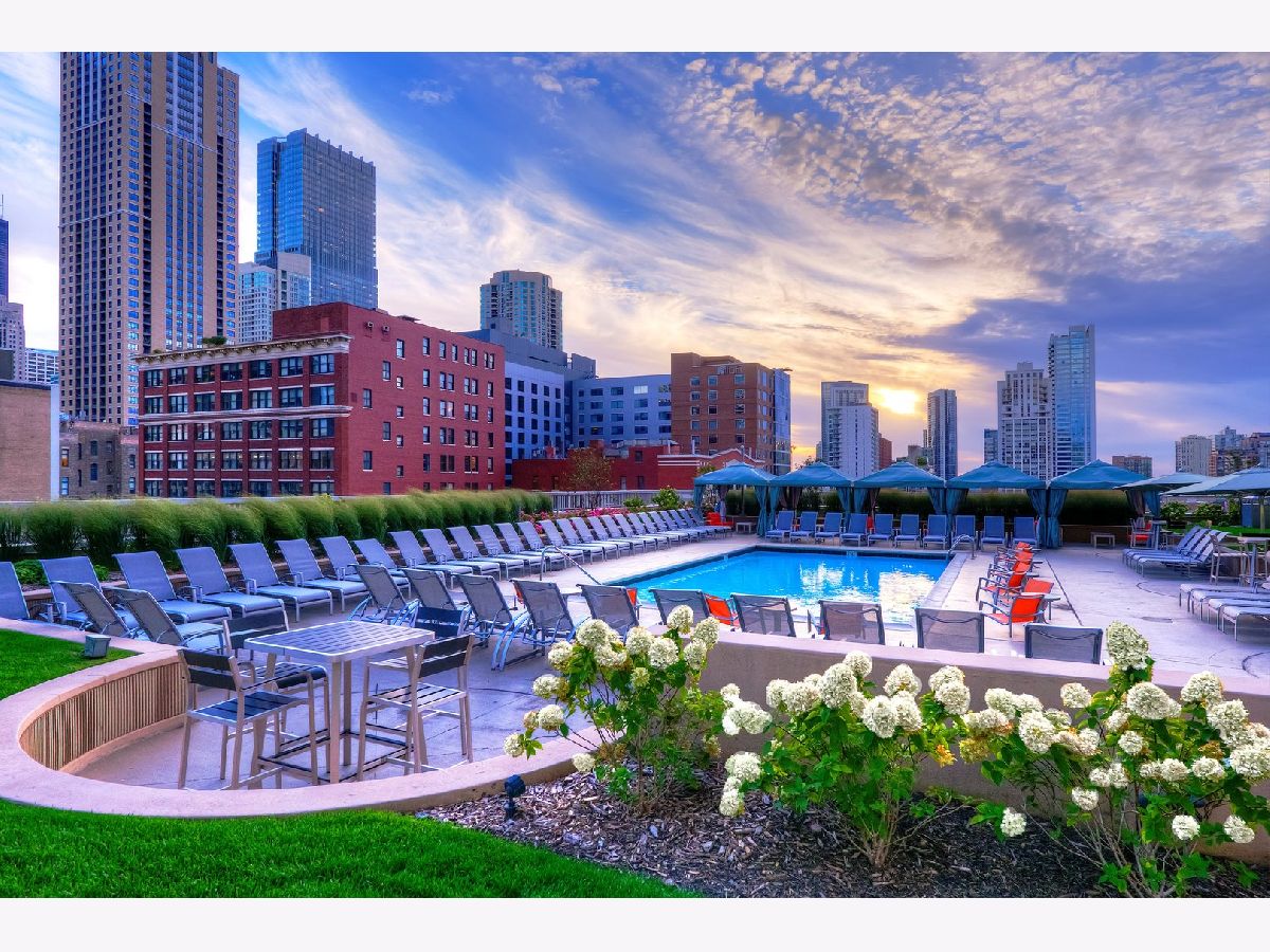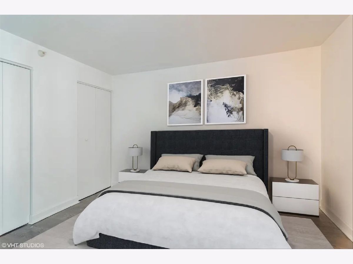 Experience elevated living at Grand Plaza in the heart of River North. This custom-updated modern 1-bedroom condo offers stunning east-facing city views and an exceptional blend of style, comfort, and functionality. The spacious, sun-filled living area features floor-to-ceiling windows, remote-controlled blinds, and sleek wood flooring, creating a bright and inviting atmosphere. The fully customized chef's kitchen is thoughtfully designed with custom wood cabinetry with frosted glass, a built-in wine/beverage refrigerator seamlessly integrated into the island, and a large island providing additional storage and seating-perfect for both everyday living and entertaining. The home boasts four meticulously redesigned closets, including an oversized walk-in, offering outstanding organization and storage. Each closet features a smart mix of long-hang and short-hang sections, upper shelving for extra storage, generous shoe space, and dedicated areas for folded linens. The adjustable design allows for easy customization to suit your needs. Unwind in the spa-like bathroom, complete with a glass walk-in shower and sleek glass enclosure for a refined, modern finish. Step outside onto your private balcony, perfect for relaxing or savoring a morning coffee. Grand Plaza offers over 50,000 square feet of resort-style amenities, including an outdoor pool, sauna, steam room, state-of-the-art fitness center with running track, basketball court, business center, media room, package room, and 24-hour door staff. Located in the heart of downtown Chicago, it's just steps from premier dining, shopping, entertainment, and public transportation. Rent includes: HD cable, high-speed 500 Mbps internet/Wi-Fi, gas, water, air conditioning, and heat. Tenant only pays electric - approximately $25-$35 per month.