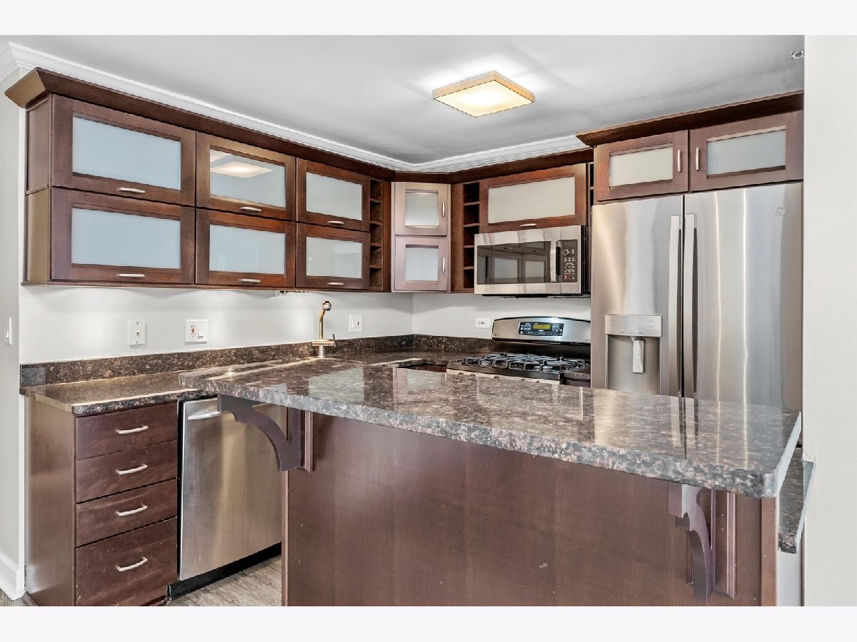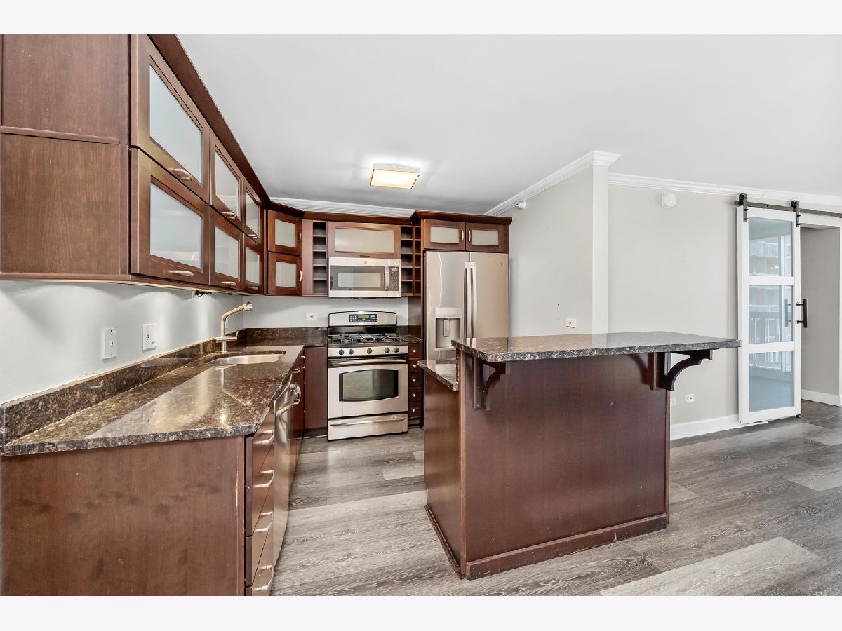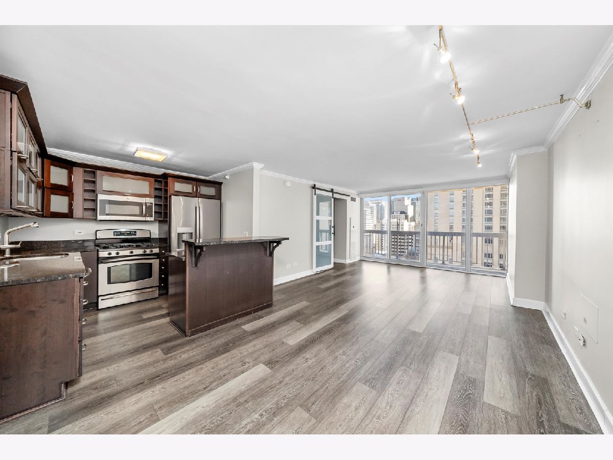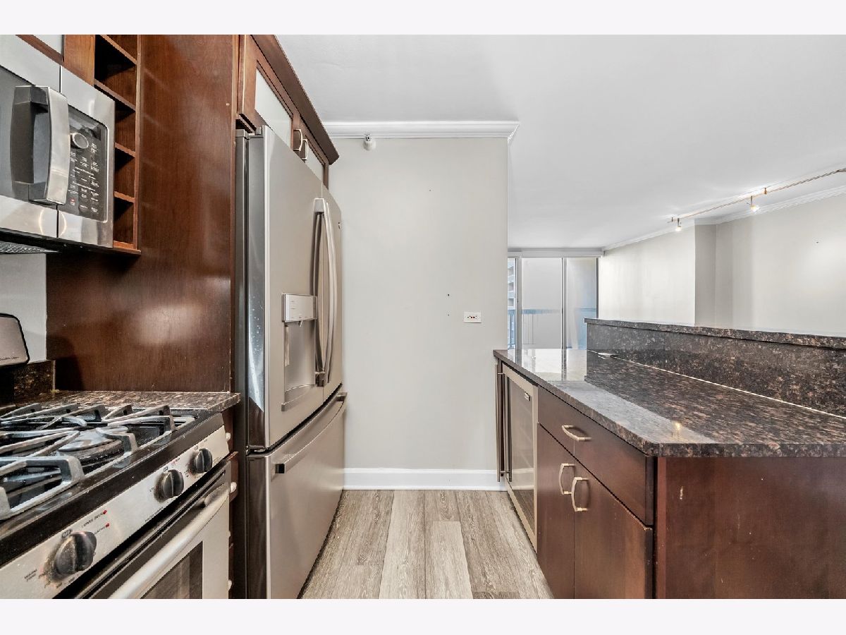 Experience elevated living at Grand Plaza in the heart of River North. This custom-updated modern 1-bedroom condo offers stunning east-facing city views and an exceptional blend of style, comfort, and functionality. The spacious, sun-filled living area features floor-to-ceiling windows, remote-controlled blinds, and sleek wood flooring, creating a bright and inviting atmosphere. The fully customized chef's kitchen is thoughtfully designed with custom wood cabinetry with frosted glass, a built-in wine/beverage refrigerator seamlessly integrated into the island, and a large island providing additional storage and seating-perfect for both everyday living and entertaining. The home boasts four meticulously redesigned closets, including an oversized walk-in, offering outstanding organization and storage. Each closet features a smart mix of long-hang and short-hang sections, upper shelving for extra storage, generous shoe space, and dedicated areas for folded linens. The adjustable design allows for easy customization to suit your needs. Unwind in the spa-like bathroom, complete with a glass walk-in shower and sleek glass enclosure for a refined, modern finish. Step outside onto your private balcony, perfect for relaxing or savoring a morning coffee. Grand Plaza offers over 50,000 square feet of resort-style amenities, including an outdoor pool, sauna, steam room, state-of-the-art fitness center with running track, basketball court, business center, media room, package room, and 24-hour door staff. Located in the heart of downtown Chicago, it's just steps from premier dining, shopping, entertainment, and public transportation. Rent includes: HD cable, high-speed 500 Mbps internet/Wi-Fi, gas, water, air conditioning, and heat. Tenant only pays electric - approximately $25-$35 per month.