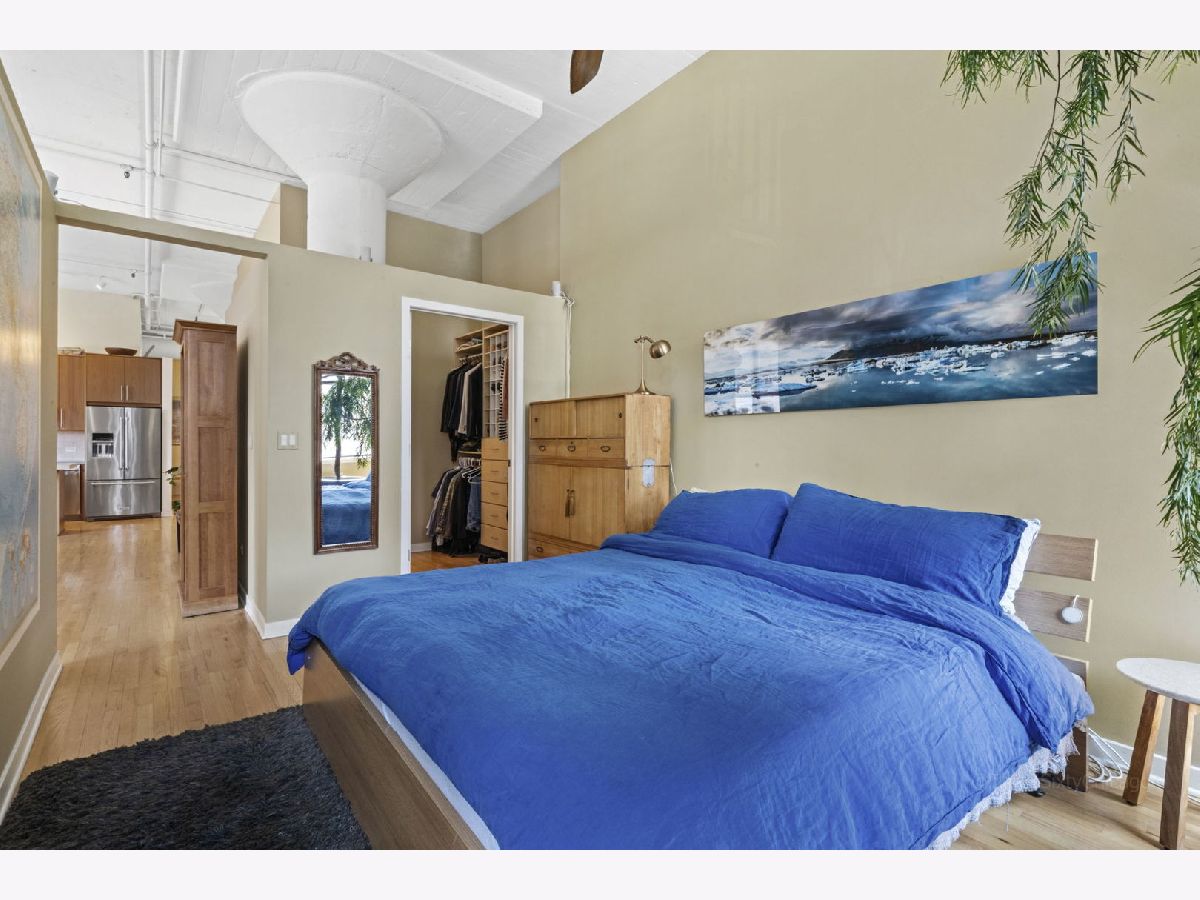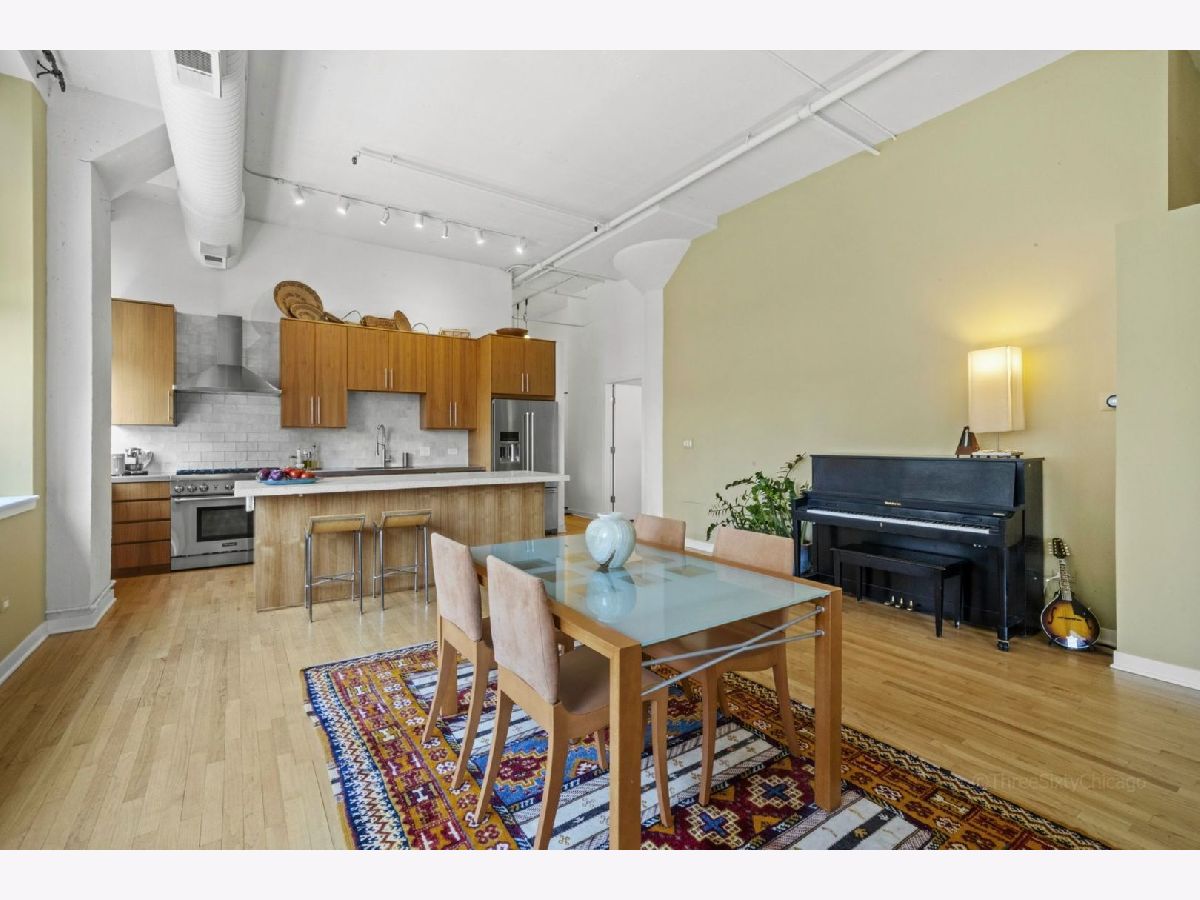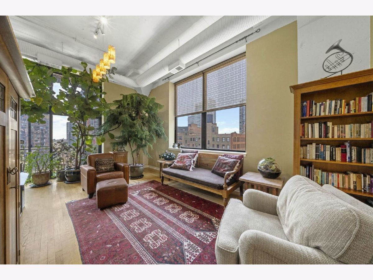 Beautiful sun-drenched SW corner unit with private balcony at Harrison St Lofts in historic Printers Row. This true concrete loft two bed/ two bath unit features soaring 12 ft ceilings with beautiful hardwood flooring and an extra large open concept living area featuring a cozy fireplace that makes for an amazing entertaining space. The recently updated kitchen features high end stainless appliances including a Thermador range, amazing stainless countertops with integrated sink and a huge island topped with polished concrete featuring a built-in wine fridge and tons of cabinet space. The spacious main bedroom suite has a walk-through closet leading to the spa-like master bath. This beautiful unit is move-in ready! Exercise room, water, cable and Internet included in the rent. Heated garage parking available in building for additional 250 per mo. Bike storage in building. Great location near Blue Line, Red Line, I-290, 90/94 and Lakeshore Drive. Walk to the Lake, Museums, Millennium Park, Restaurants, Shopping, Nightlife. Click link above for 3D Tour!