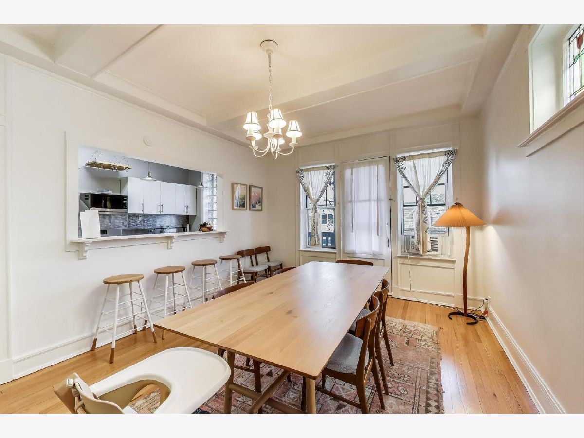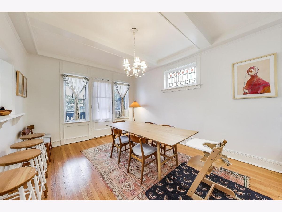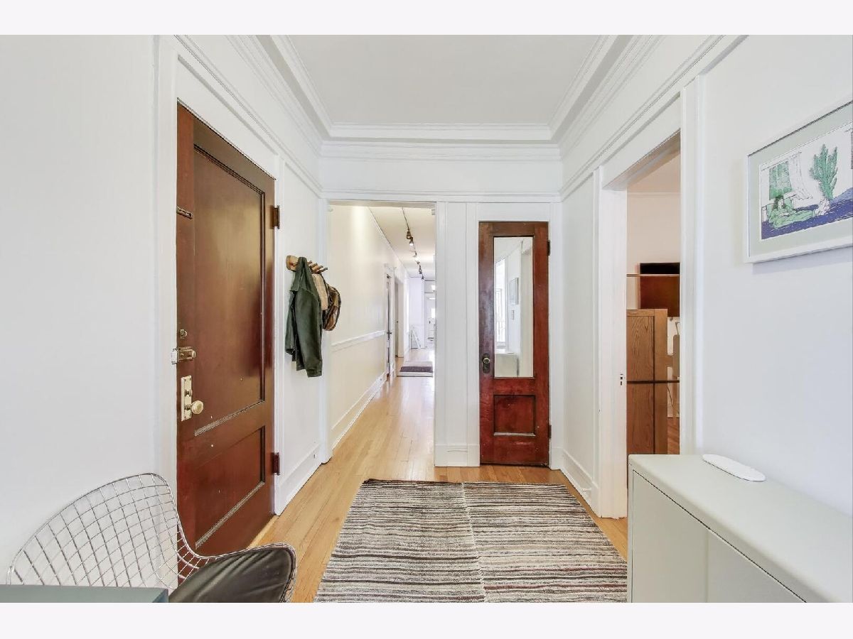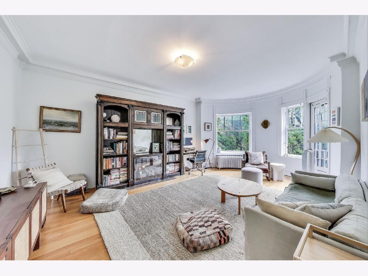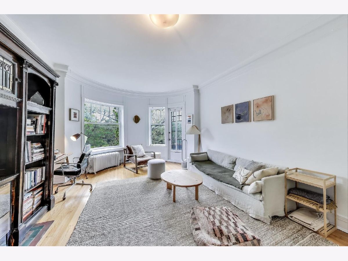 Seize the rare opportunity to rent in the heart of Hyde Park! Situated on the top floor, this remarkable home is adorned with exquisite original features such as crown molding, oak trim, solid oak doors, custom built-ins, hardwood floors, stained glass windows, and soaring ceilings. Upon entering through the spacious foyer, you'll be captivated by the home's charm. The generously-sized living room spans the front of the building, showcasing floor-to-ceiling built-in shelving, bay windows, and a charming gas fireplace. A large patio off the living room provides the perfect spot to enjoy stunning views at any time of day. The apartment boasts four spacious bedrooms with ample closet space and two recently remodeled bathrooms. The impressive gourmet kitchen is a chef's delight, featuring new cabinetry, stainless steel counters, a new stainless steel refrigerator, and a new dishwasher. A convenient pass-through connects the kitchen to a beautiful dining room. A lovely glass door, maintaining the historic style, opens to a sizable private screened-in back deck. Rich in character, this home offers numerous spaces to entertain guests who will be dazzled by its beauty and charm. Recent updates include refurbished radiators, newer windows, refinished hardwood floors, and fresh paint. The unit also includes an in-unit washer and dryer, ensuring complete convenience for the new owner-just move right in! Perfectly positioned, the location offers proximity to 57th Street Beach, Promontory Point, the University of Chicago campus, and Jackson Park. Enjoy nearby shopping at Trader Joe's, Whole Foods, and a variety of local shops and restaurants. Convenient access to the Metra and #6 bus is within a block.