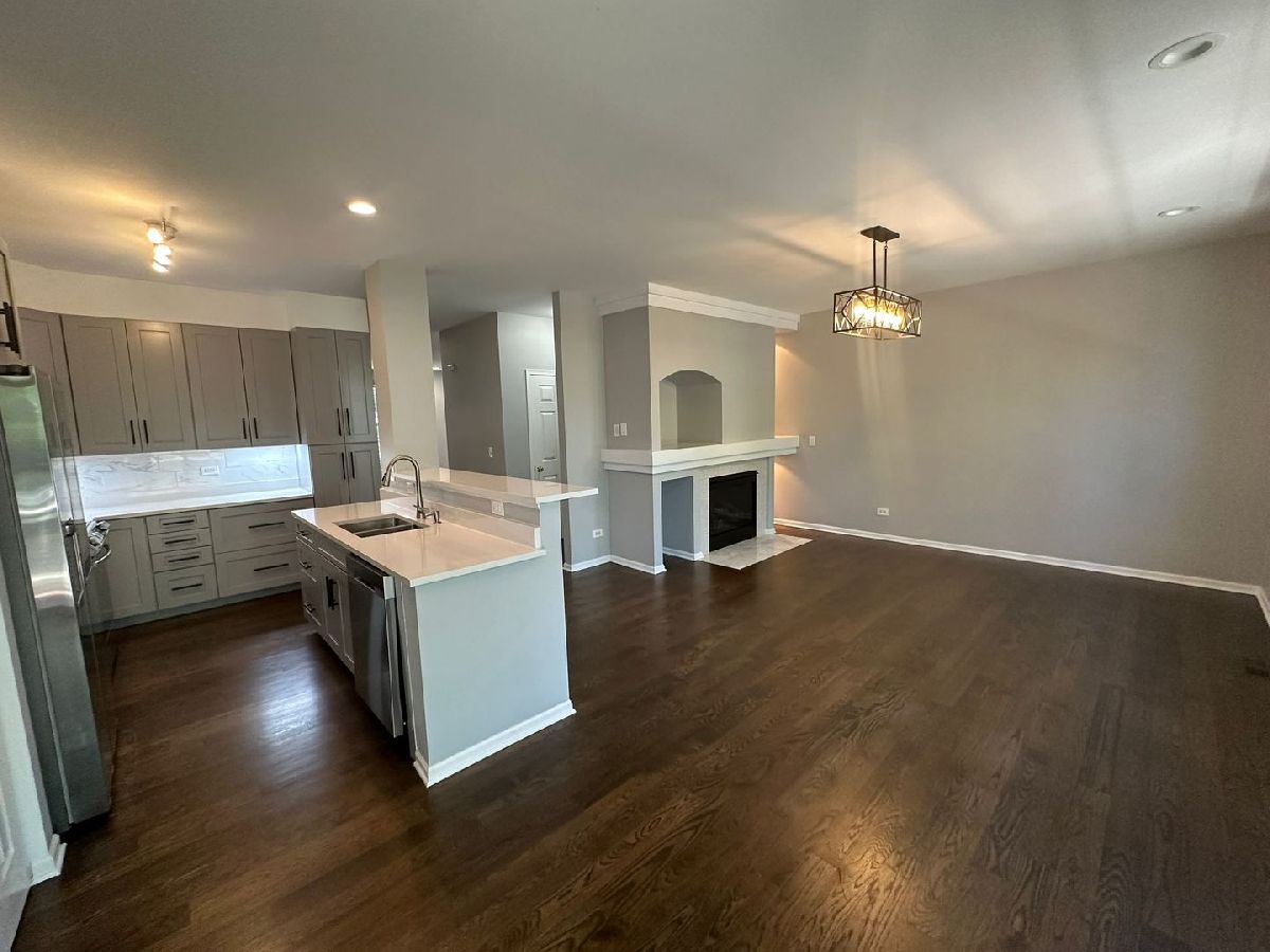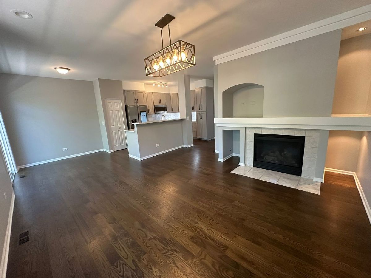 This stunning Savannah Subdivision townhome offers 3 levels of versatile living space! Step inside to a light-filled haven featuring beautiful hardwood floors, freshly painted neutral walls, and a modern kitchen with sleek grey cabinets and quartz countertops. The open-concept layout creates a seamless flow for entertaining, relaxing, or working from home. Cozy up by the fireplace in the spacious living room, which leads to a private balcony. The main floor also boasts a dedicated dining area and a convenient powder room. Upstairs, unwind in the luxurious primary suite, featuring a vaulted ceiling, a generous walk-in closet, and a spa-like bathroom with a double vanity, standing shower, and separate soaking tub. Two additional bedrooms offer ample space for family or guests, and the second-floor laundry room adds convenience. The finished basement level extends your possibilities. Enjoy a flexible space ideal for a home office, a comfortable guest room, or a secondary family room. A half bath completes this lower level. Beyond your door, a vibrant lifestyle awaits. This townhome is conveniently located near highways, the Metra station, shopping, dining, a scenic bike path, and a relaxing forest preserve. Tenant pays all the utilities. All PMI Chi-Town residents are enrolled in the Resident Benefits Package (RBP) for $35.95/month which includes insurance. If a resident successfully submits their own insurance policy and it is approved, $10.95 will be deducted from the cost.