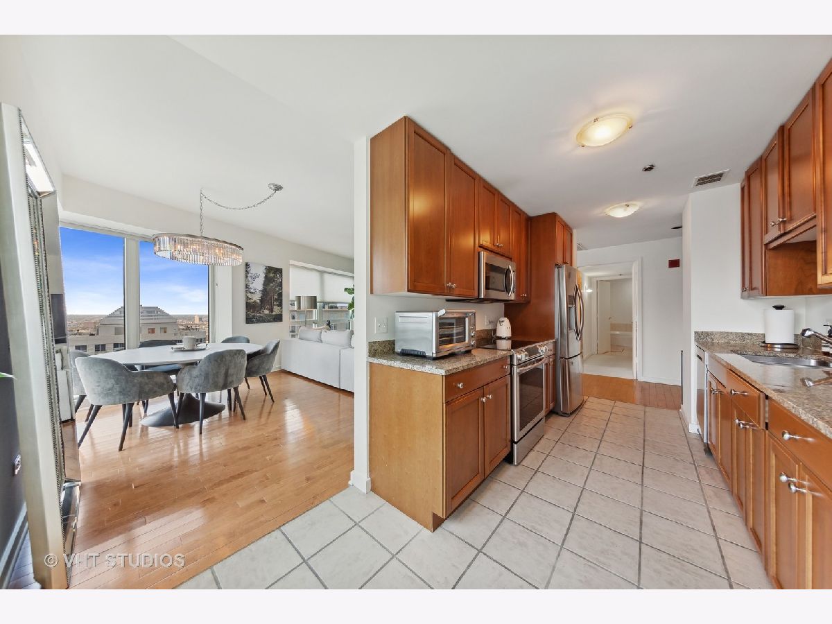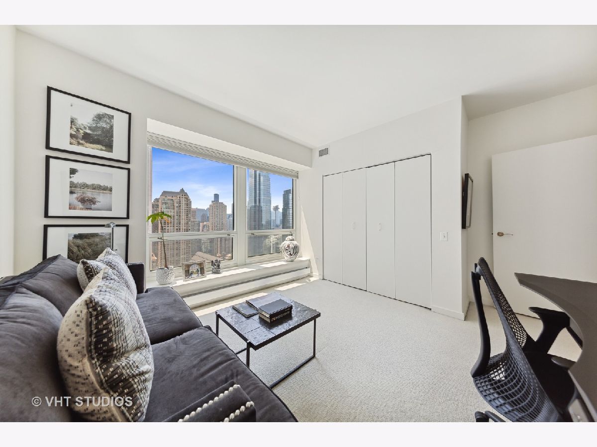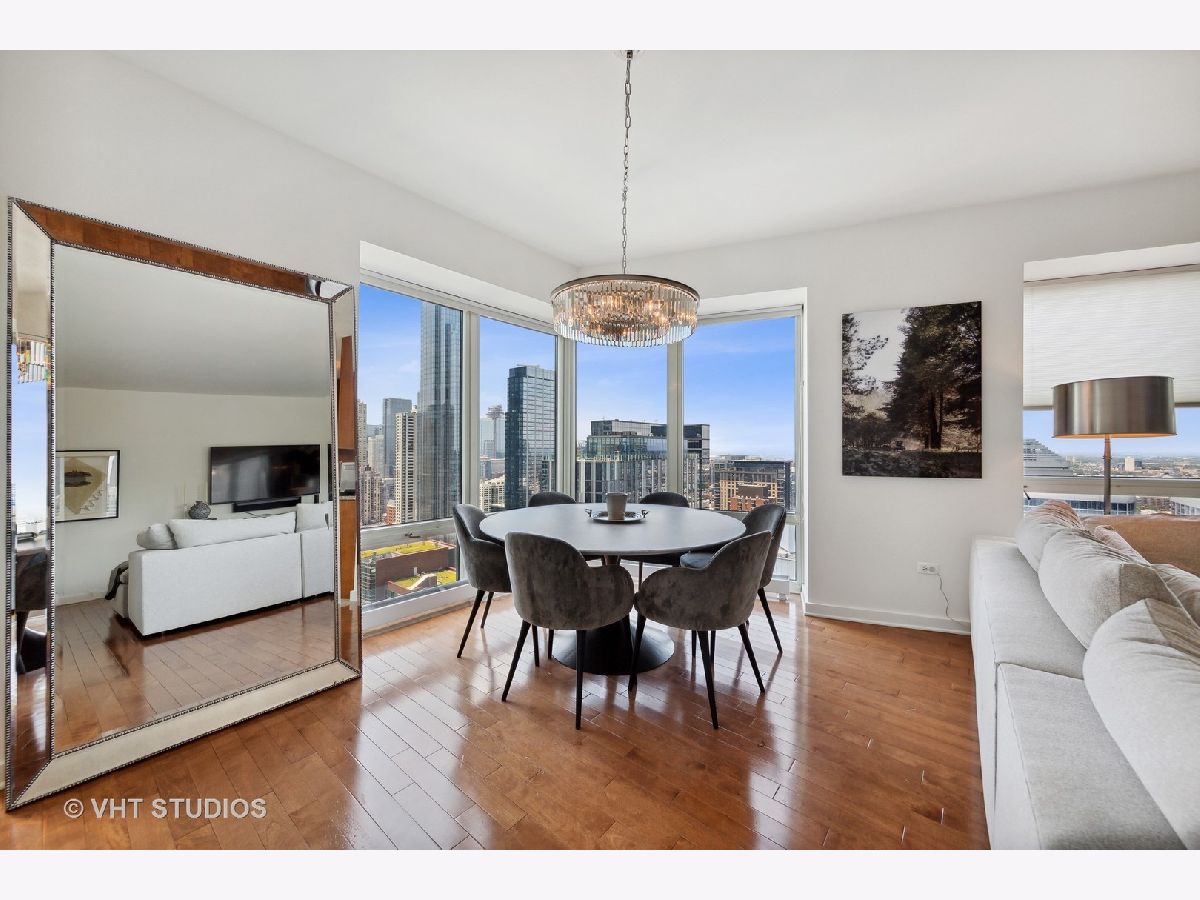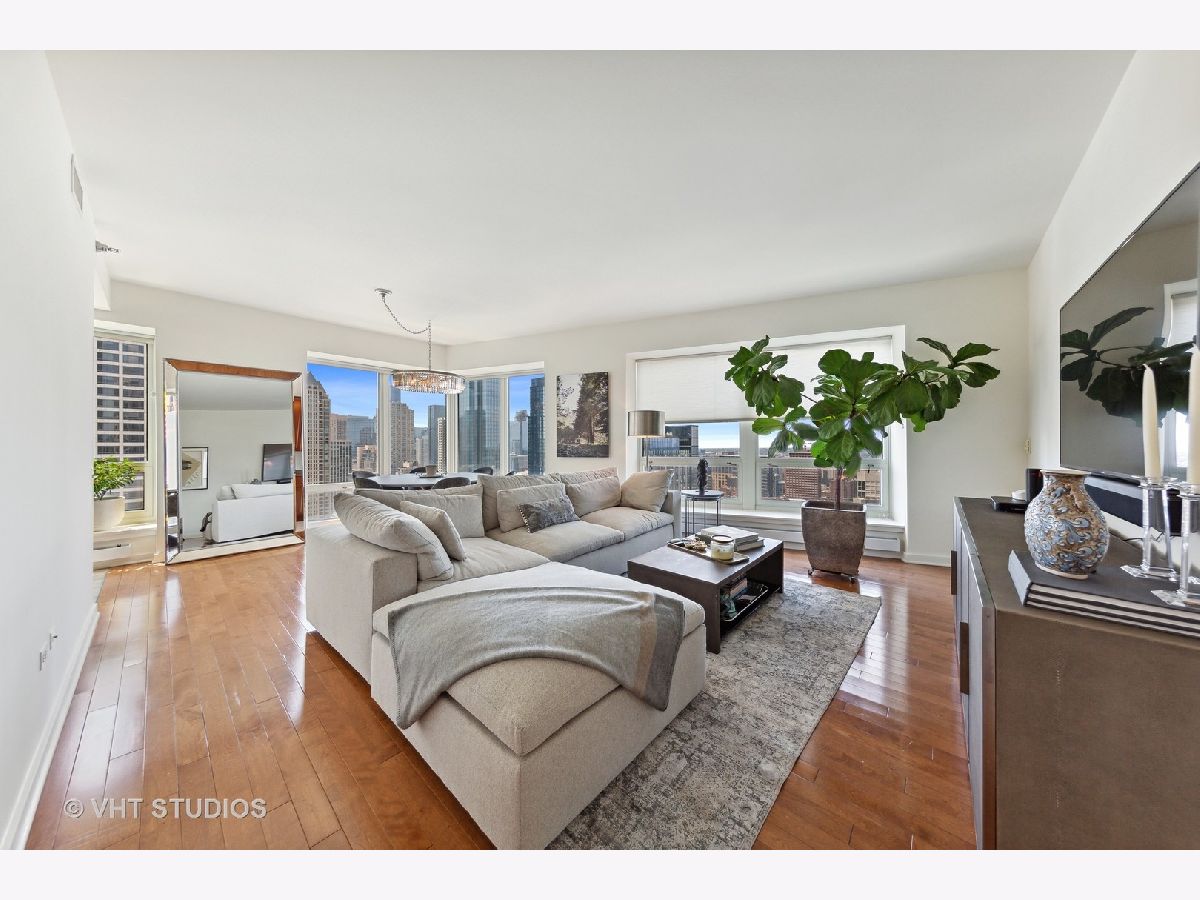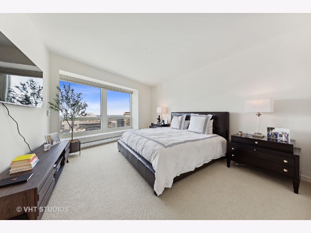 HIGH FLOOR CORNER 2BR/2BA with OUTSTANDING UNOBSTRUCTED CITY VIEWS! Pristine & spacious home has split bedrooms, gleaming hardwood floors, beautiful South/West VIEWS from floor-to-ceiling windows, eat-in kitchen with windows, stainless appls, large en-suite master bedroom (master bath has separate shower & soaking tub), spacious second bedroom adjacent to second full bath, and in-unit washer. The Bristol - FIRST CLASS LUXURY SMOKE FREE bldg w/excellent service, dry cleaners, storage, & more! STUNNING NEW ELEGANT HALLWAYS & AMENITIES! CLUB RM - relax by the FP watching movie, read in cozy library, visit w/friends in the bar. State-of-art exer rm w/Peloton bikes overlooking deck w/grills & fire pit. Indoor pool & Jacuzzi by fireplace for ultimate well being. CONVENIENT LOCATION - 1/2 block from Mich Ave shopping, dining & transportation! Parking included. NO PETS PLEASE. AVAILABLE NOW!