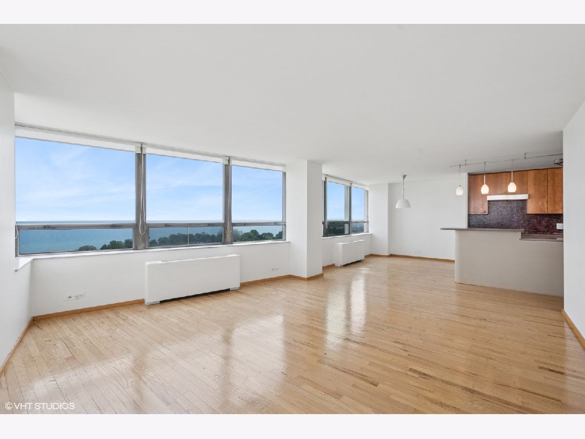 ENDLESS LAKE VIEWS & AWESOME SUNRISES await you at this RARE, 14th floor 2 bed/2 bath RENOVATED CORNER UNIT, ON THE BEACH at spectacular Hollywood Towers of Edgewater Beach. STUNNING BEACH, city & LAKE VIEWS, in this 1250 sq ft, freshly painted condo featuring a gorgeous, UPDATED, OPEN ISLAND KITCHEN with granite countertops, STAINLESS steel appliances, HARDWOOD FLOORS throughout, UPDATED custom BATHS and is light & spacious with lots of work-from-home space & tons of closets. Fantastic, full amenity building ON THE BEACH/bike path, with HEAT, A/C, CABLE TV and INTERNET INCLUDED IN RENT! No pets. Garage parking spots available for $190/month. NO SECURITY DEPOSIT! $750 nonrefundable landlord move-in fee in lieu of security deposit. Express bus at door. 2 blocks to Red Line. Beach at back door. Walk to Mariano's, Whole Foods, shopping, restaurants, theater, Loyola U, everything fabulous Edgewater has to offer!!