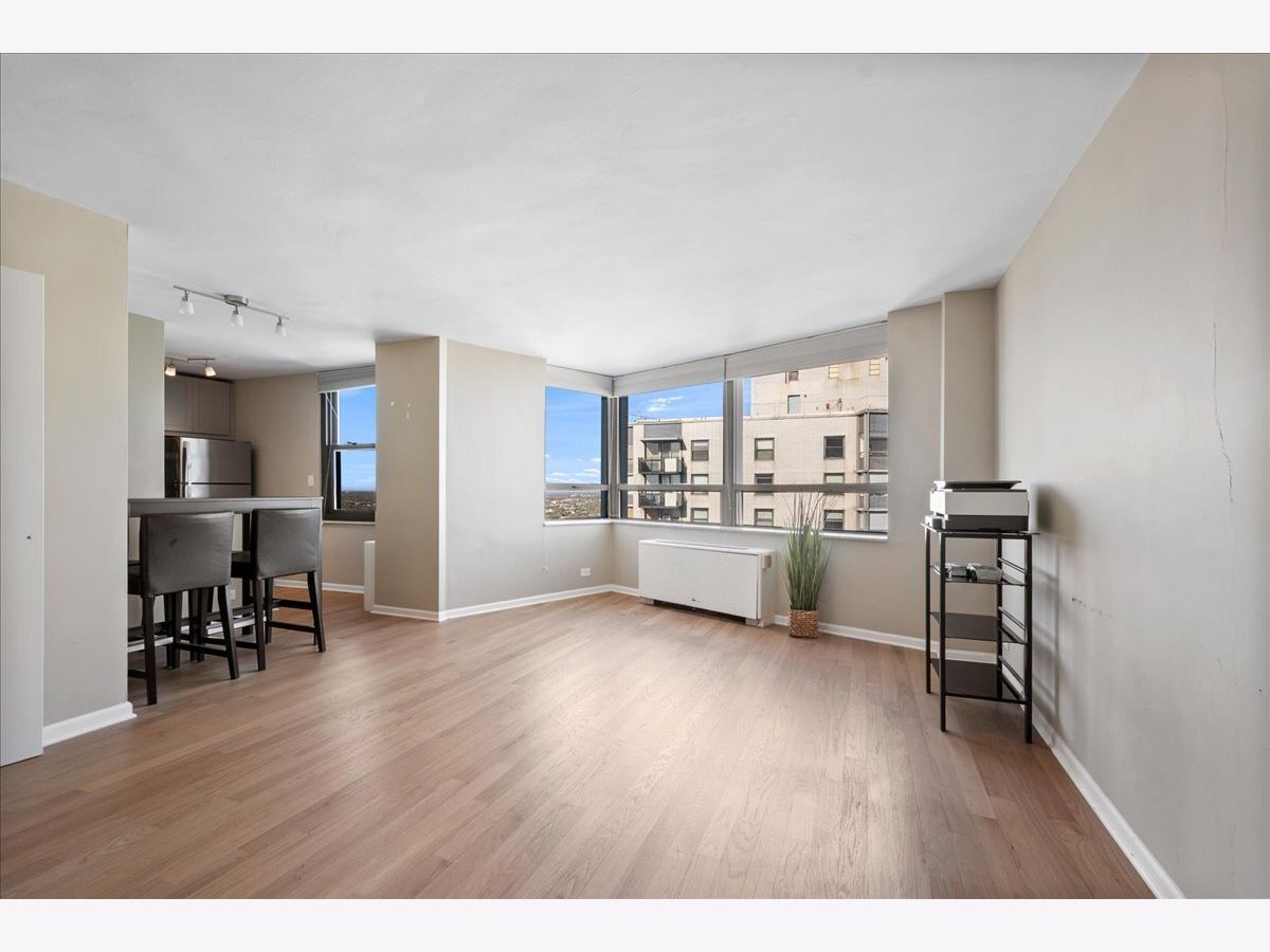 WOW! WHAT INCREDIBLE VIEWS! RENOVATED, super nice, large studio featuring FOREVER LAKE, BEACH & CITY VIEWS is just waiting for a new tenant to make it your new home. Freshly painted, laminate flooring, stainless appliances, granite countertops and a fabulous closet system make this an extremely appealing home. This light, spacious and airy unit also has plenty of "work at home room" & lots of storage. It's a great space in a great place! Hollywood Towers is a fantastic, full amenity building ON THE BEACH/bike path, with HEAT, A/C, CABLE TV and INTERNET INCLUDED IN LOW RENT! Sorry, no dogs. Indoor, heated valet parking is $195/month. Tenant is responsible for application and all building move-in/processing fees. Express bus at door. 2 blocks to Red Line. Beach at back door! Close to Andersonville, Whole Foods, Marianos, shopping, restaurants, theater, Loyola U and everything fabulous Edgewater has to offer!