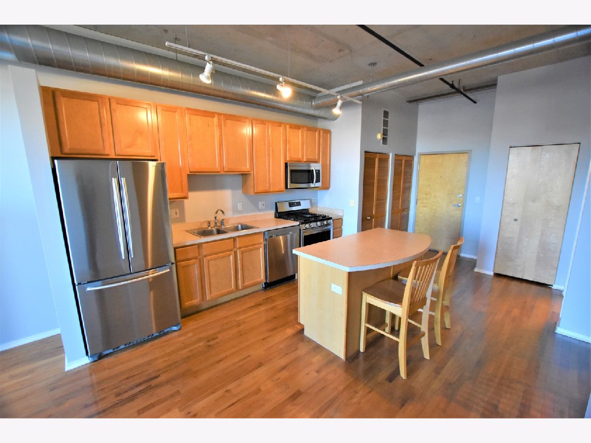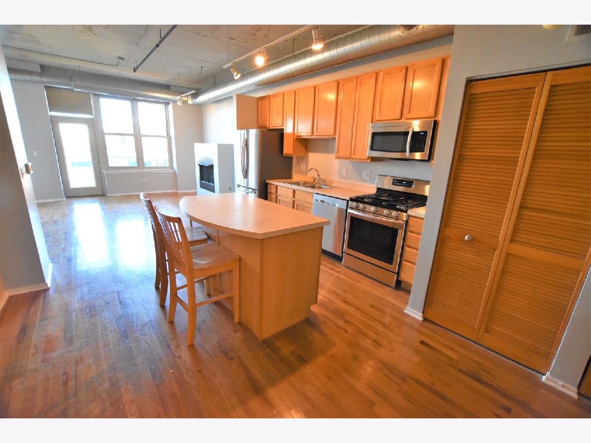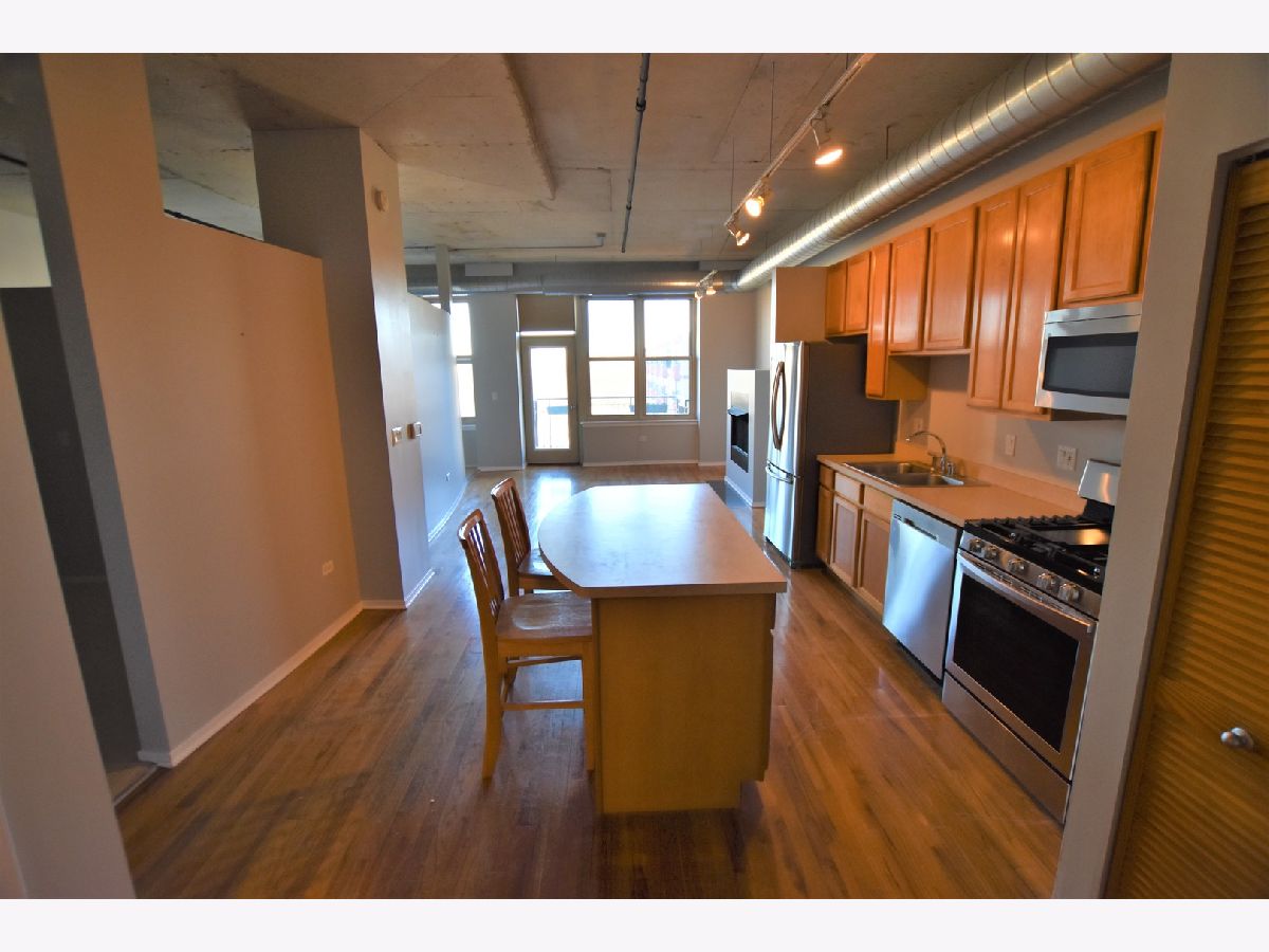 NORTH FACING 1 BEDROOM + DEN. OPEN LOFT STYLE HOME OFFERS: HARDWOOD LIVING AREAS, BALCONY OFF LIVING, CARPET IN BEDROOM/DEN, BRAND NEW STAINLESS STEEL APPLIANCES, 42" MAPLE CABS, LARGE KITCHEN ISLAND W/ BREAKFAST BAR. INDOOR PARKING INCLUDED. POPULAR DOORMAN BUILDING CLOSE TO TRANSPORTATION, RESTAURANTS, PARKS, HIGHWAYS, NEW TARGET AND MARIANO'S!