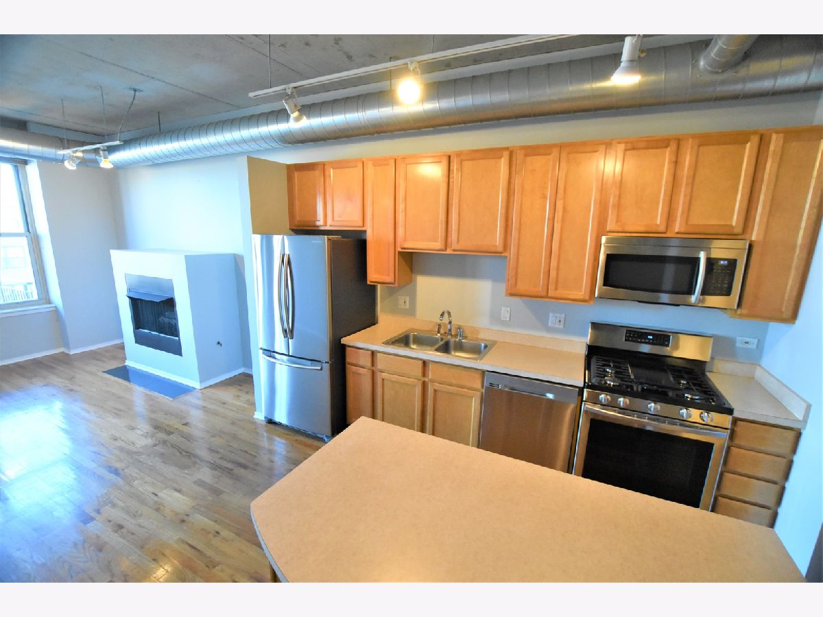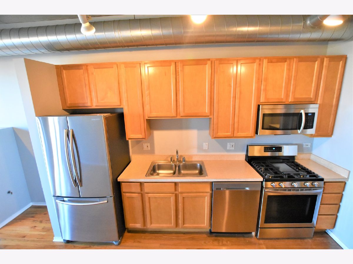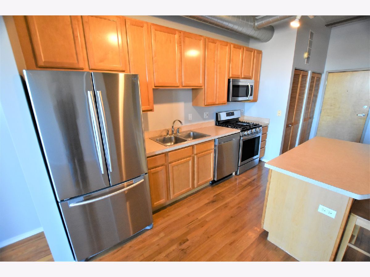 NORTH FACING 1 BEDROOM + DEN. OPEN LOFT STYLE HOME OFFERS: HARDWOOD LIVING AREAS, BALCONY OFF LIVING, CARPET IN BEDROOM/DEN, BRAND NEW STAINLESS STEEL APPLIANCES, 42" MAPLE CABS, LARGE KITCHEN ISLAND W/ BREAKFAST BAR. INDOOR PARKING INCLUDED. POPULAR DOORMAN BUILDING CLOSE TO TRANSPORTATION, RESTAURANTS, PARKS, HIGHWAYS, NEW TARGET AND MARIANO'S!