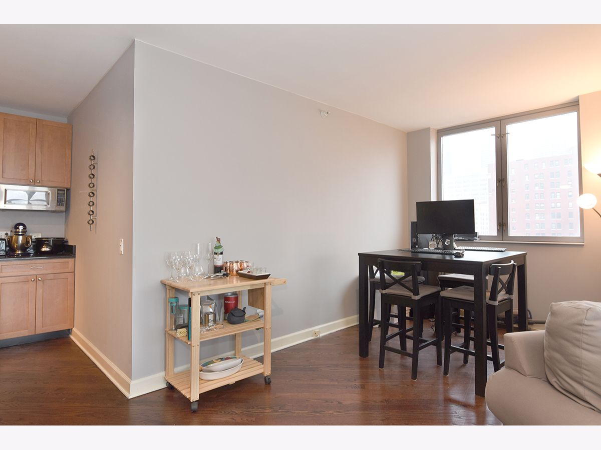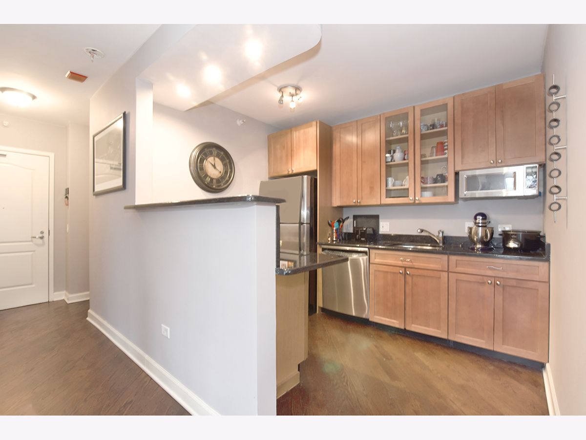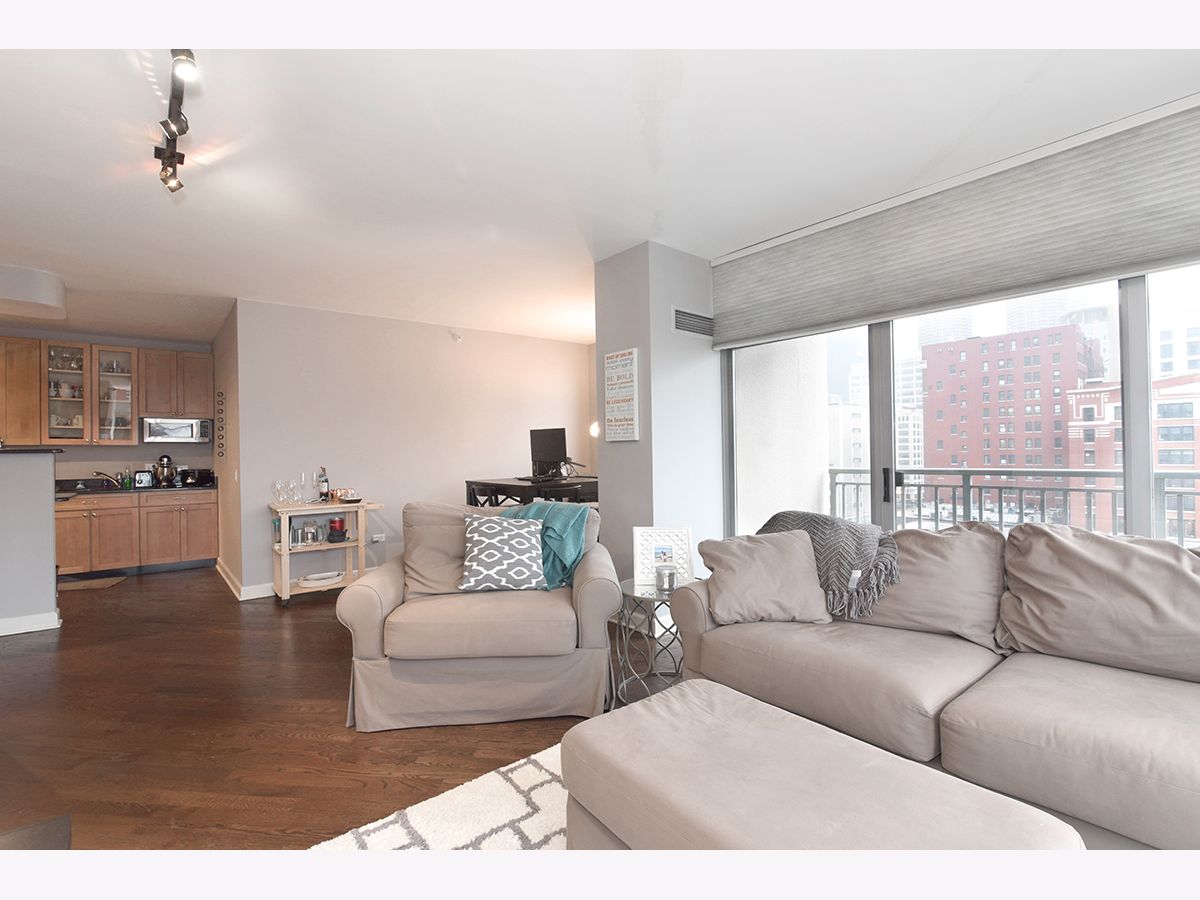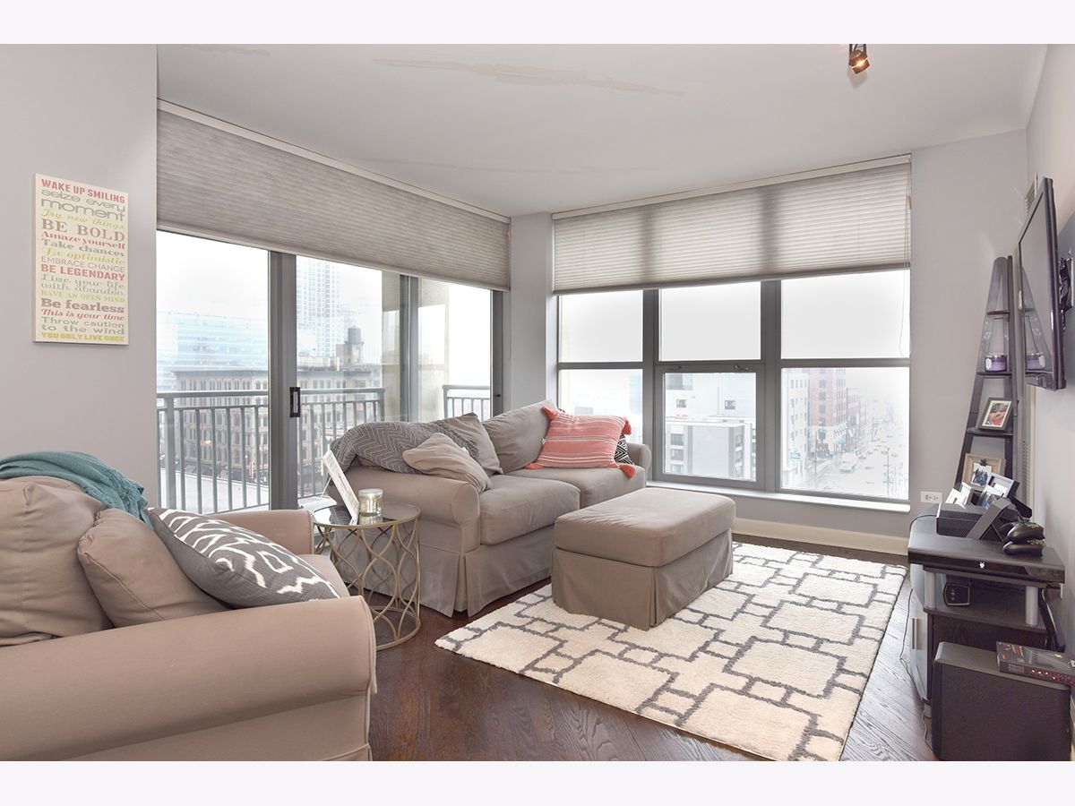 Exceptional 1Bed/1.5 Bath Condo in the heart of River North! Expansive S/W corner unit w/ breathtaking views of the city! Unit features open floor plan with plenty of space for dining and separate living quarters. Beautiful hardwood floors, dramatic wrap around windows with custom treatments and balcony allowing for plenty of natural light. Kitchen comes equipped with granite countertops, stainless steel appliances, dishwasher, 42" cabinets & breakfast bar. Large master bedroom with updated en-suite, granite countertops and stand-up shower with tile backsplash. Additional half bathroom perfect for your guests. In unit washer/dryer. Building features 24HR door staff, gym, common terrace and bike storage. Conveniently located within walking distance to Whole Foods, Trader Joes, Jewel, restaurants, nightlife and easy public transit.