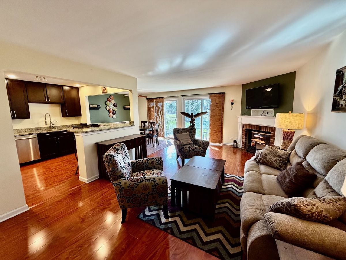 Beautifully remodeled ranch style unit with patio access. Open concept floorplan with kitchen open to dining room and living room. Kitchen is updated with 42" Espresso cabinets, granite counters and stainless steel appliances + walk-in pantry. The unit features all laminate wood floors, handsome fireplace, and all white trim and doors. Both full baths have been completely updated. The master bath features a tastefully updated tile shower surround. All windows and patio door have been updated. Cul-de-sac location and plenty of green space off the back patio.