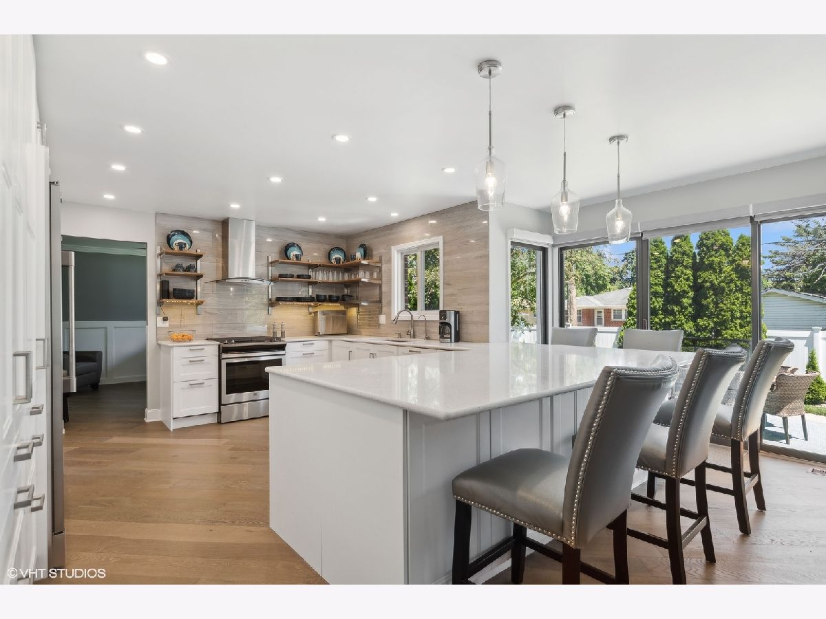 Available for rent! Make this stunning and meticulously renovated modern colonial in the heart of Arlington Heights your perfect home! This home was completely rehabbed inside and out in 2020, ensuring that every detail is of the highest quality and reflects modern sensibilities. Boasting 4 bedrooms and 2.5 bathrooms, this home spans an impressive almost 3,000 square feet, and is nestled on a generous corner lot. As you step inside, you'll be greeted by a seamless flow of beautiful hardwood floors, high-end finishes, and on-trend design that extends throughout the entire property. The main level features a spacious living room filled with sunlight, as well as a flex room that can be utilized as a dining room or office. The gourmet kitchen is a chef's dream, equipped with white cabinetry with in drawer lighting, quartz countertops, high-end stainless-steel appliances (including an oversized refrigerator), and a peninsula with plenty of seating. In addition to overlooking the beautiful patio, the kitchen is open to the cozy family room with fireplace. A well-organized laundry + mudroom is conveniently off the garage. Upstairs the primary suite provides a private retreat, complete with a spacious bedroom, luxurious bathroom, and walk-in closet. Three additional bedrooms (all with ample closets) share a hallway bathroom. The finished basement extends your living space with a large recreation room and huge storage room. Outdoors, the beautiful extended patio overlooks the lush fenced-in backyard. Great location close to the thriving downtown, Metra, library, and parks. Highly-rated schools: Olive Elementary, South Middle, and Prospect HS (National Blue Ribbon school). Don't miss the opportunity to make this exquisite property your home and experience the epitome of modern living in Arlington Heights!