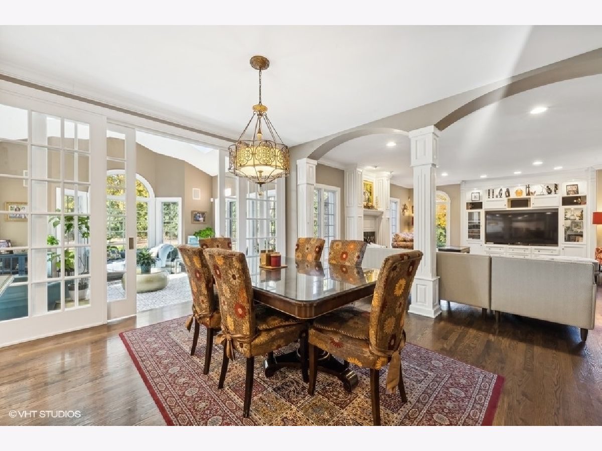 Elegant and spacious 5BR/5.1BA home with water views in a coveted wooded enclave of Burr Ridge. 6101 Wildwood is a stunning, move-in-ready property situated on nearly an acre of meticulously manicured grounds. This beautifully appointed home offers an open layout, hardwood floors throughout, high ceilings, expansive windows, and abundant natural light. Upon entering, you are welcomed by a dramatic two-story foyer with a sweeping staircase, marble floors, and designer chandelier. The formal living room boasts an elegant fireplace, palladium windows, and tranquil water views. The spacious dining room provides ample room for entertaining large gatherings and showcases a coffered ceiling with a crystal chandelier. At the heart of the home, enjoy the beautiful chef's kitchen, clad with white cabinetry, granite countertops, a massive island with prep sink, walk-in pantry, and updated stainless steel appliances. The open-concept layout flows seamlessly into an inviting family room with exquisite millwork, fireplace, and a wet bar with beverage center. Adjacent to the kitchen is a sophisticated wood-paneled library, full bath, and laundry room. Relax in the stunning sunroom featuring custom heated European tile floors, vaulted ceilings, and exterior views of the beautifully landscaped yard, bluestone patio, "Endless" four-season pool, and Restoration Hardware fountain. Upstairs, enjoy four generous bedrooms, including a magnificent primary suite with high ceilings, water views, walk-in closets, and a newly renovated spa bath with luxurious finishes-including imported Italian tile, designer alabaster sconces, brass hardware, a striking two-person bathtub, spa shower, fireplace, and tiled water closet. Three additional bedrooms (one en-suite) and two baths complete the second level. Other standout features include a massive game room with vaulted ceilings, a pool table, and dramatic balcony overlooking the swan pond. A spacious basement offers an additional family room, guest bedroom, full bath, study, and exercise room. A Sonos system is integrated throughout the home for ultimate convenience and entertainment. Located in a nature-focused enclave with old-growth trees and a charming footbridge, this home is within walking distance of the highly acclaimed Elm Elementary School and Hinsdale Central High School. Available mid-January. Furnished option available!