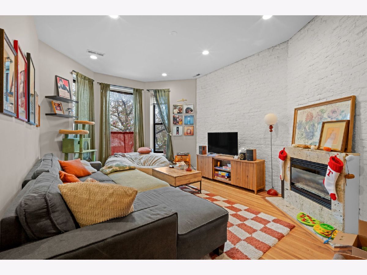 Beautiful brick Victorian 4-flat in Noble Square! This high extra wide first floor apartment has been completely rehabbed with hardwood floors, gas fireplace, white kitchen cabinets, quartz countertops, stainless appliances, 2 bedrooms, 2 newer bathrooms, 10 ft. ceilings, solid core doors, dining area, and a large back trex deck, fenced backyard. The unit also features in-unit washer/dryer plus an ensuite primary bathroom and small walk-in closet. Building is an extra wide building so tons of space. One garage spot available. Close to Blue Line, 90-94 Expressway, great restaurants and steps to Bari Foods and D'Amato's Bakery. Easy walk or bike ride to Fulton Market and the West Loop as well!