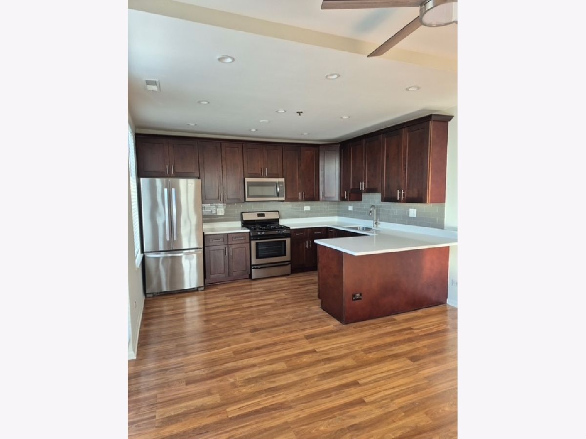 NO MOVE IN FEE Luxury apartment living in the heart of Downtown Deerfield. Top floor unit with Southwest exposure with great sunlight including a LARGE OUTDOOR TERRACE overlooking downtown Deerfield. Spacious 2BR/2Bath . 42" kitchen cabinets, SS appls, granite counters, vinyl plank floors, carpet in bedroom. Stacked full size washer and dryer. Forced air/heat furnace and hot water in unit. Secure bldg with digital key entry, recently renovated lobby with workout room included. Indoor parking garage. Starbucks, Chipotle, Cleaners & UPS Store in the building. Directly across from Whole Foods, Potbelly, Walgreens and Chase Bank. The train station is less than a 5-minute walk.