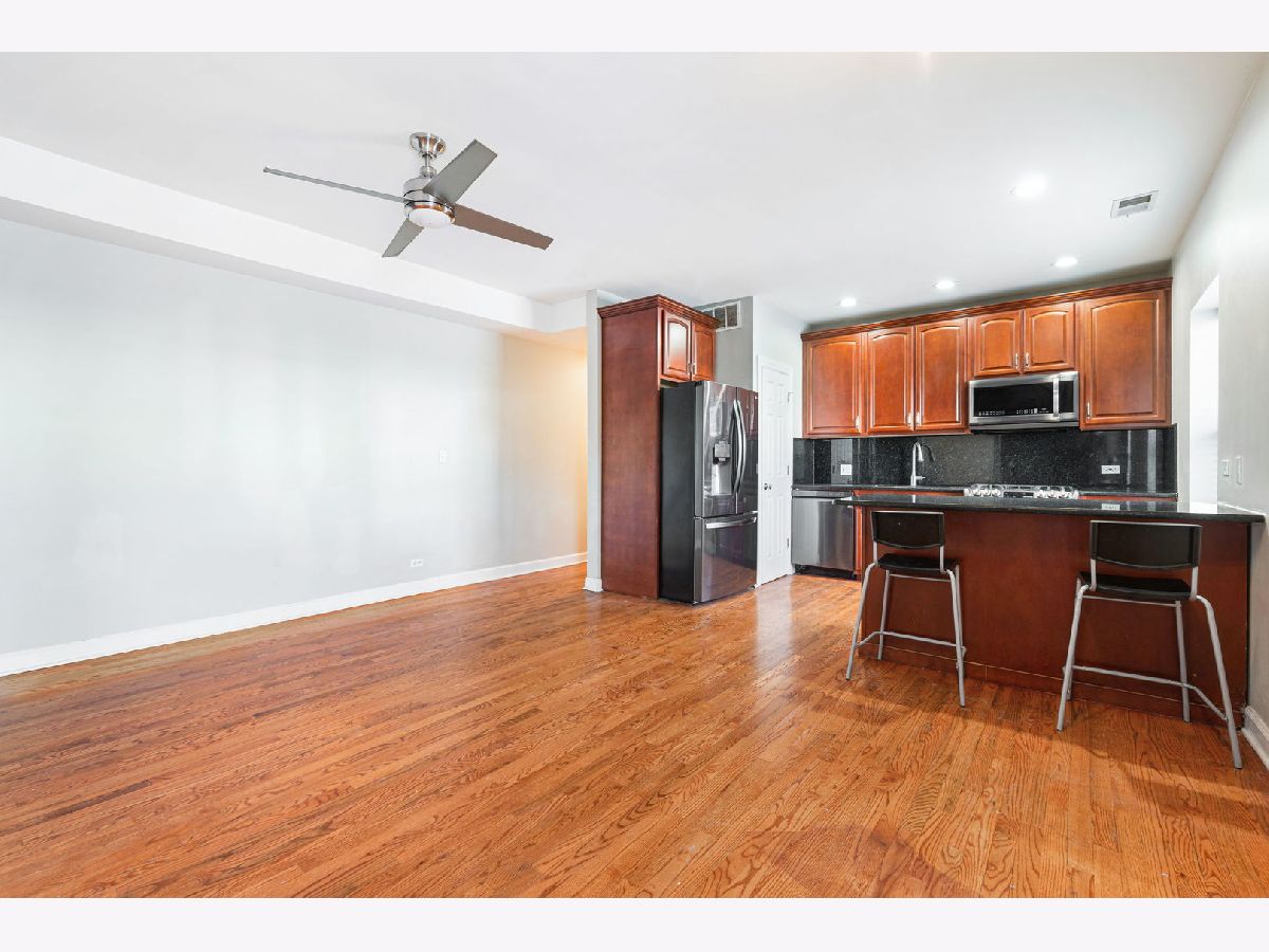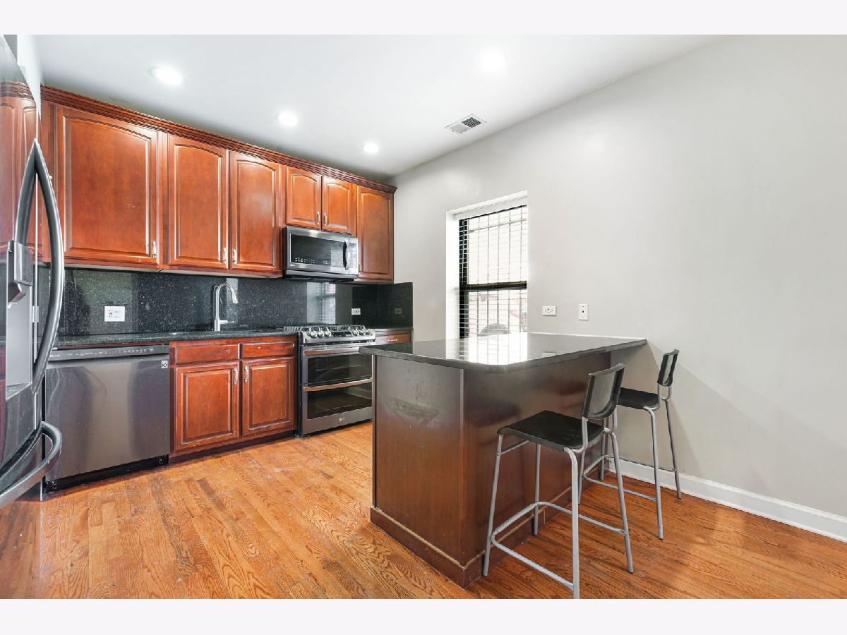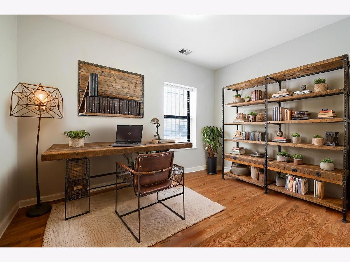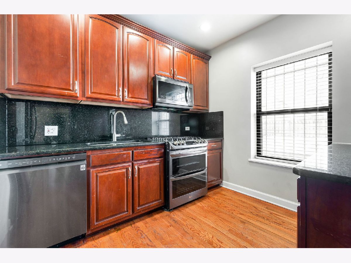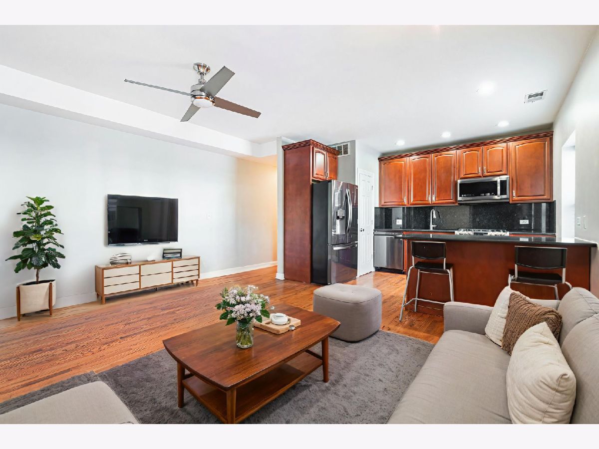 The only 2BR, 2BA plus den condo unit at Kimbark Estates located in historic East Woodlawn. This fully integrated home provides a unique floor plan that allows the luxury of working from home without encroaching on valuable living space. The home features a custom Globe Smart lighting package, oak hard wood floors throughout, 42" cherry wood kitchen cabinets and granite countertops. The kitchen features new suite of LG stainless steel smart programmable appliances. The warranties for the LG refrigerator, gas range, dishwasher and microwave pass to the buyer. The laundry center is a new energy efficient smart LG washer & dryer. The primary suite is a private retreat and can accommodate a king sized bed with ease. The primary bath includes a jetted luxury spa tub. HVAC has also been updated with a new system installed and serviced by Abt. The furnace and AC condenser are Trane. The humidifier is a Envirowise Indoor Air Systems unit. The Rheem ProTerra Performance Platinum electric residential hybrid 40 gal water heater can be controlled from EcoNet App. The thermostat is Nest. Brinks Home alarm system features a smart control pad and keyless entry. One parking space in north adjacent gated parking lot is included in price.