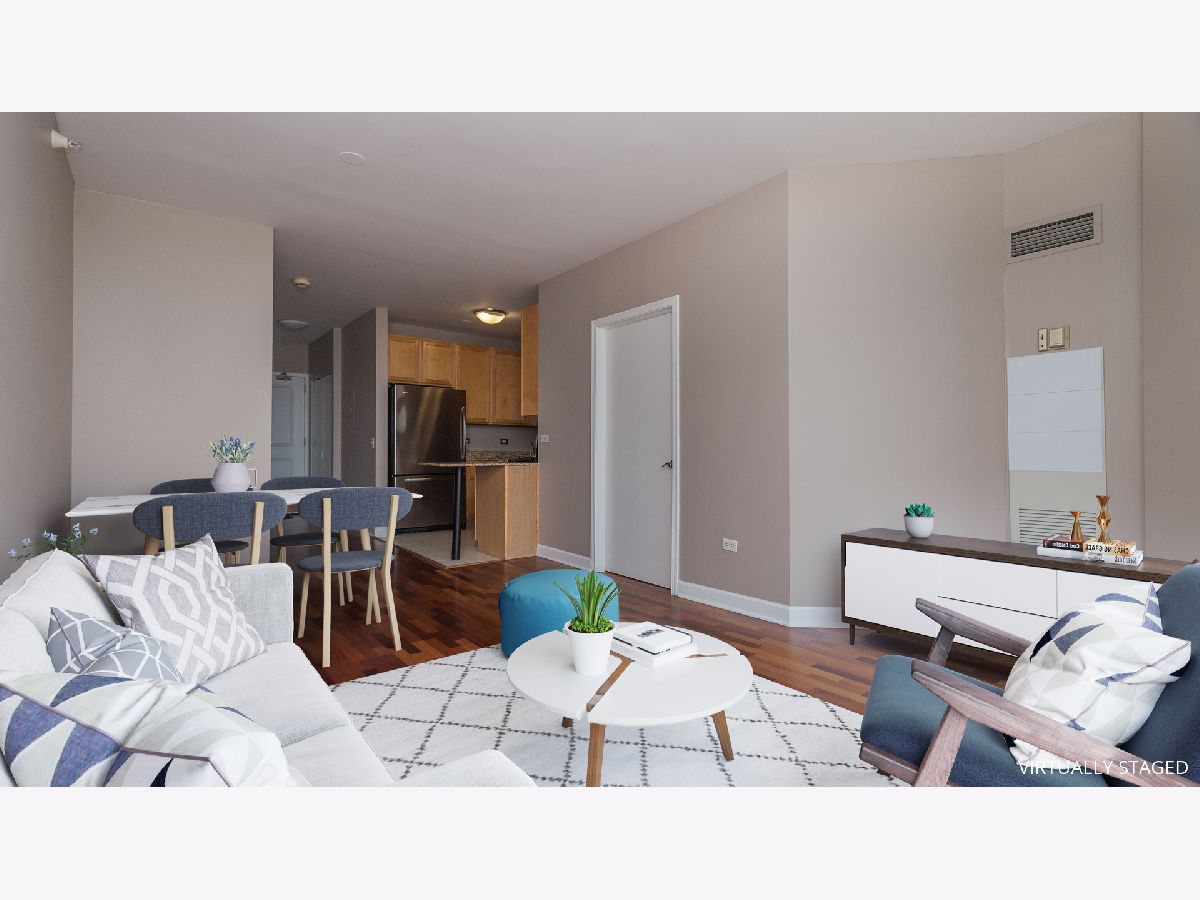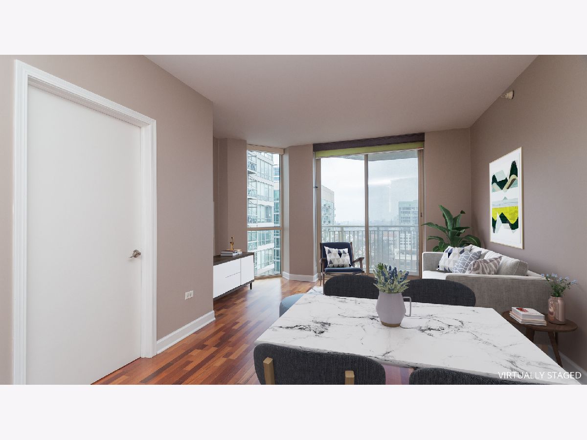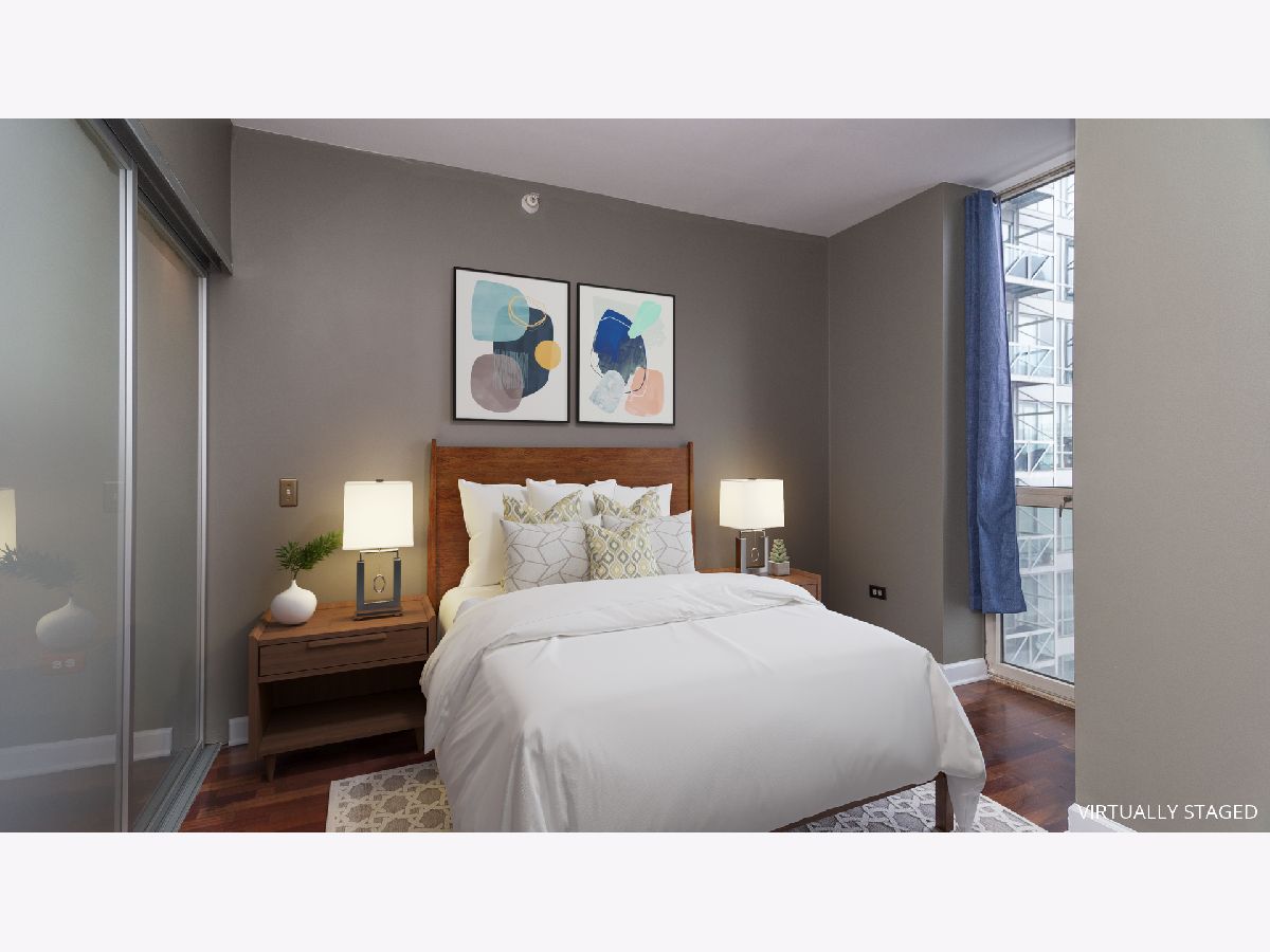River North fantastic location across the street from Montgomery Ward Park and along the riverfront! Enjoy outdoor recreation year-round, events like movies in the park and dog park right at your doorstep! Walking distance to grocery stores and mini-mart right in building. Restaurants right across the street and coffee shops within 2-3 blocks. Within blocks of: water taxi/expressway entrance/brown line and bus routes. Bright, sunny, high floor unit with floor to ceiling windows. 42" cabinet kitchen with Stainless Steel appliances and granite counter tops. Brazilian cherry floors. Large foyer and updated bathroom. Balcony with a great east facing view of the city. Washer and dryer in the unit. Storage locker included. Heat included in rent! Rental parking available.