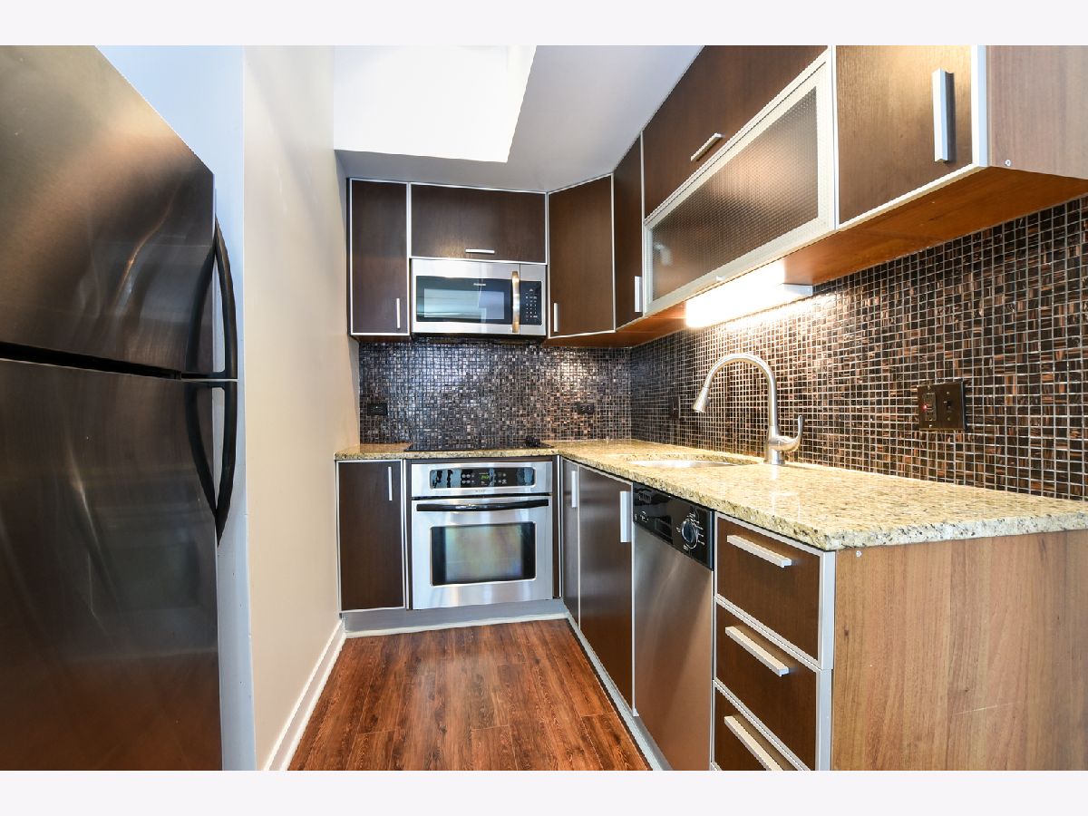 Live right in the heart of the Fulton River District! Contemporary, top floor apartment in Trio has all the things you want: hip, Euro-style kitchen, great closet space throughout, central AC, floor to ceiling windows with expansive city views and a private balcony. Granite, counters, stainless steel appliances and hardwood floors in the living areas give a touch of elegance to this fantastic apartment. A+++ location just steps to West Loop nightlife, the East Bank club, and public trans. Building amenities include party room, business center, exercise room, dog-run, & outdoor terrace.