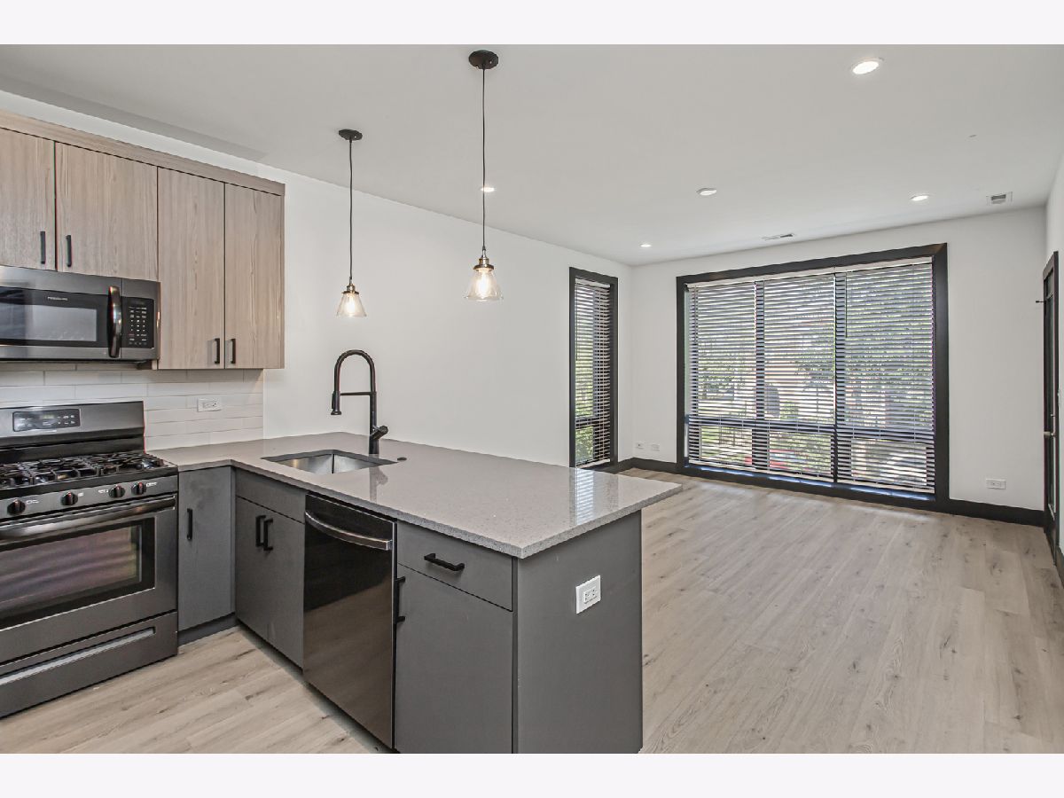 NEW CONSTRUCTION BUILDING Luxury vinyl floors throughout, unit has an amazing kitchen with quartz countertops and stainless steel top of line appliances. Unit has a combo living room dining room area with side balcony. The primary bedroom features a walk-in closet and en-suite, two additional good size bedrooms with lots of closet space. SAMSUNG washer and dryer in the unit, central heat and air, also comes with outdoor parking. Easy access to schools, Cottage Grove Green Line stop, University of Chicago and Hyde Park shops, bars and restaurants. MUST SEE THIS SPECTACULAR UNIT! 650 minimum credit score required