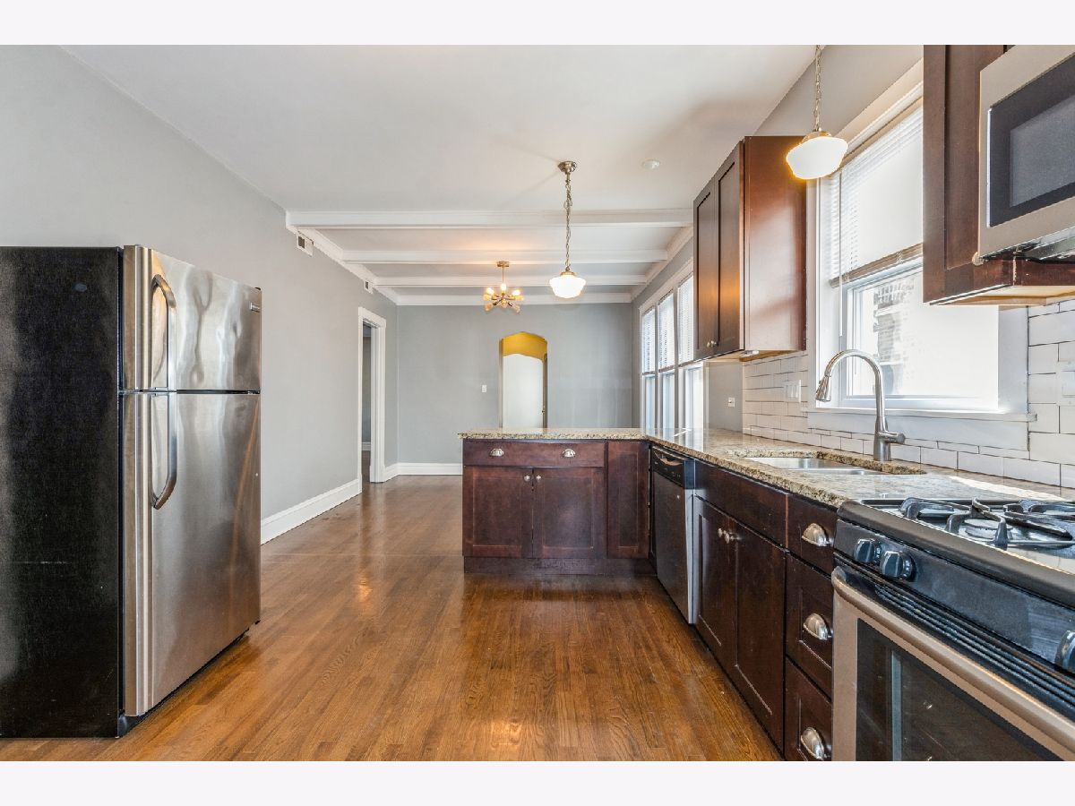 Beautifully upgraded first floor unit flooded with natural light. Phenomenal location close to Andersonville/Edgewater right at Ashland and Arthur, features granite counters, stainless appliances, dishwasher, central air, in-unit laundry, separate living and dining room, close to restaurants, shopping, transportation and more! Few blocks from Loyola University. Includes one parking space behind the building. $800 non-refundable move-in fee, non-smoking unit, no pets. Landlord is asking that all applicants have a credit score of 700 or better. Anyone 18 years or older who will reside in the apartment must be on the lease. Photos are of nearly identical unit upstairs.