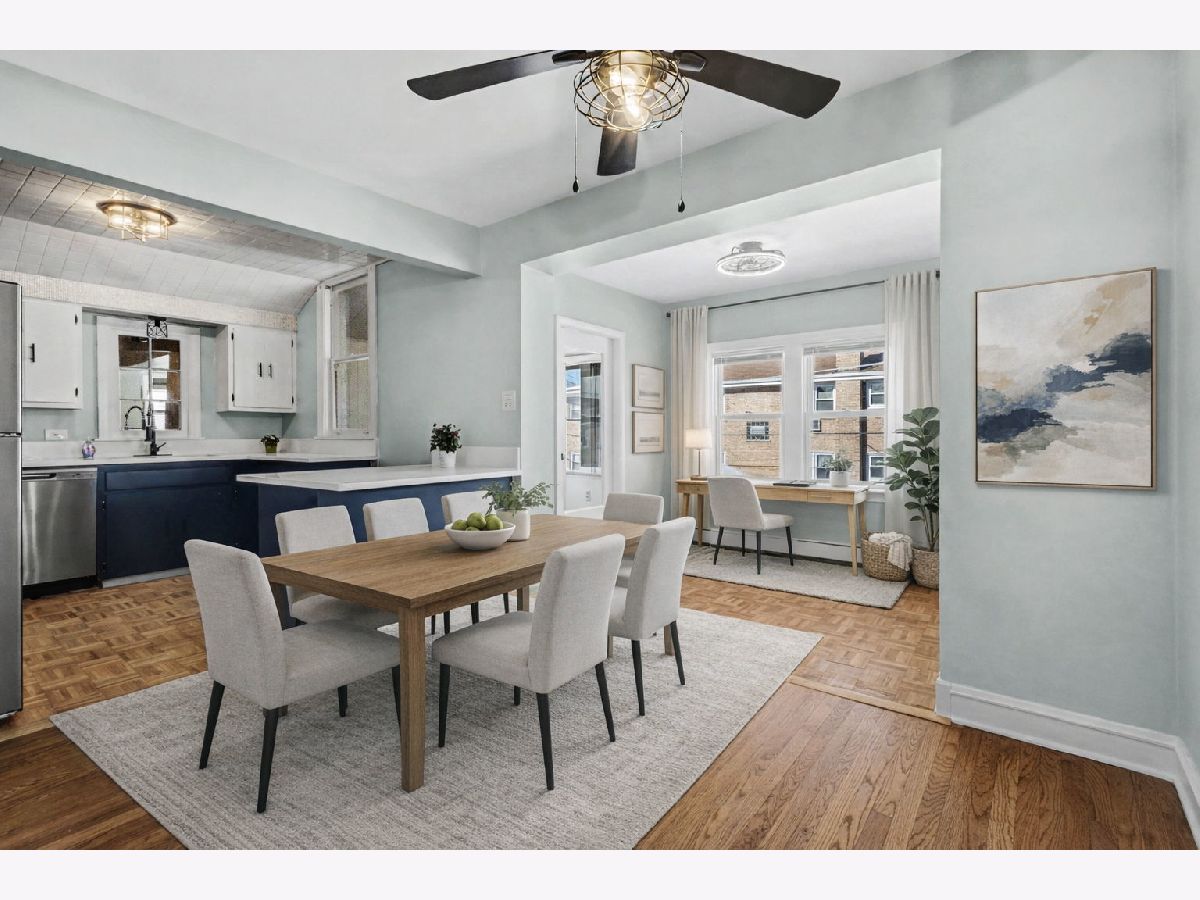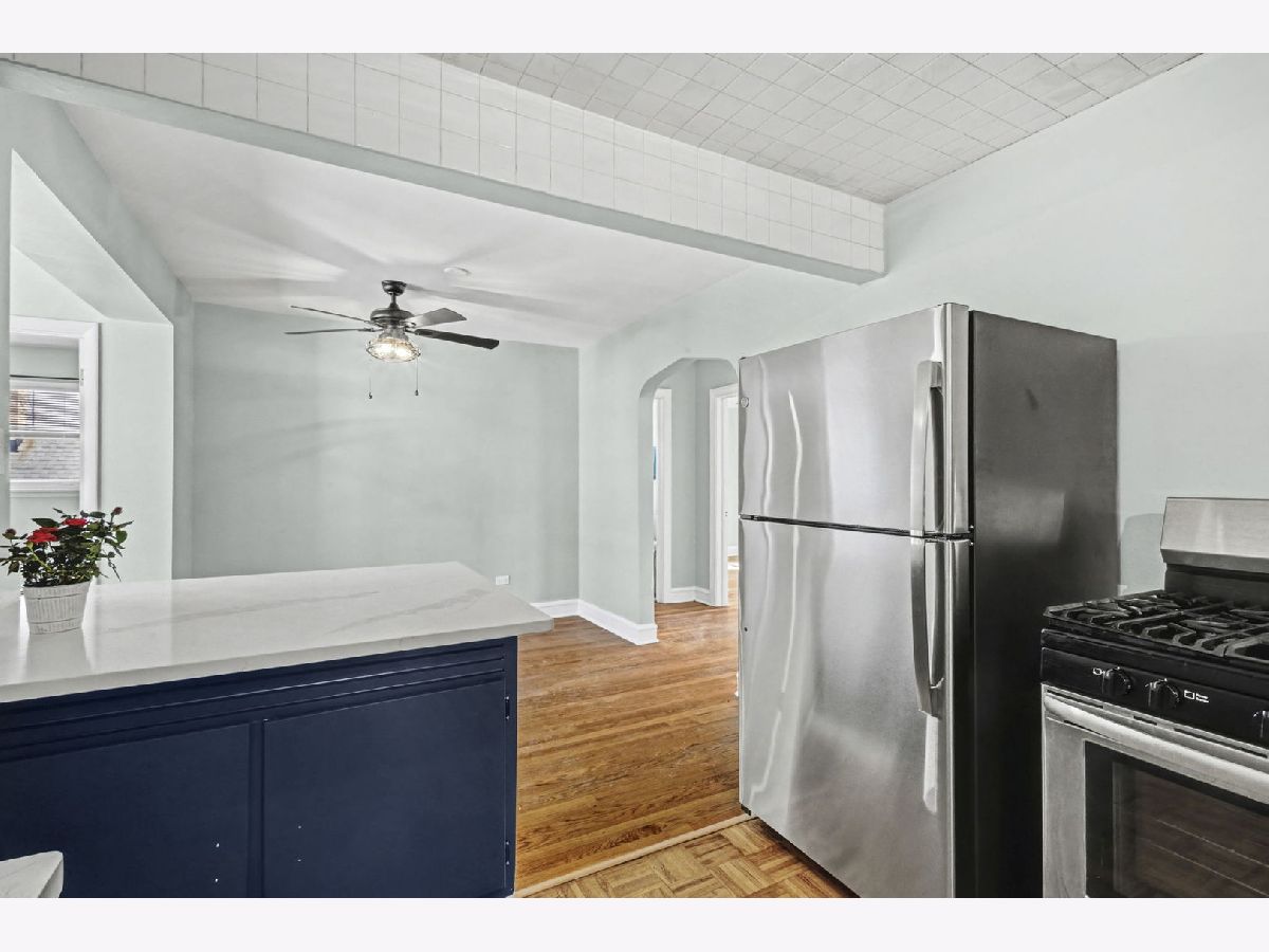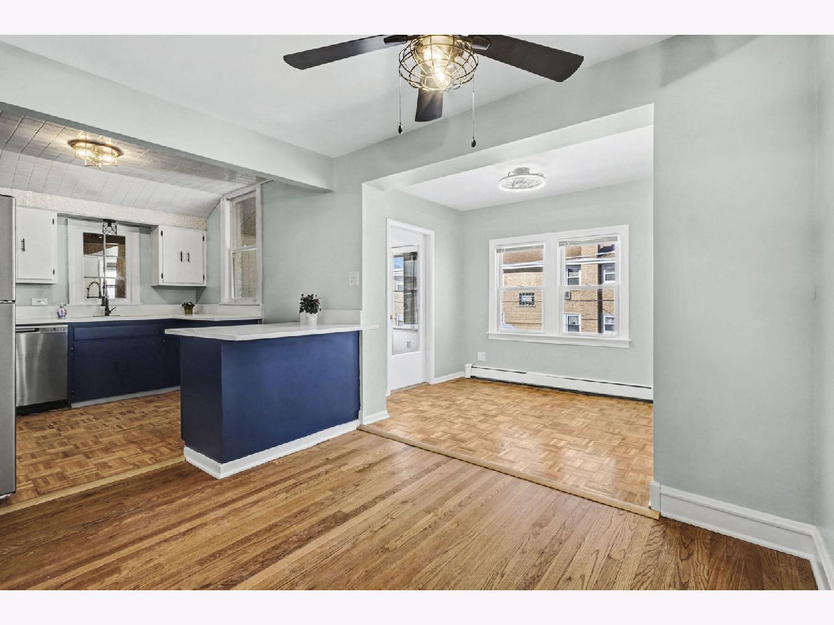 Must see! Super cute, very spacious 2-bedroom 1 bath unit in a Niles 2-unit building. 1300 sq ft, 2nd floor unit has great natural light and is freshly painted throughout. Refinished hardwood floors. New light fixtures. New updates in the kitchen include new countertops with breakfast bar, new refrigerator and new dishwasher. Kitchen is open to the Dining room. A 9x11 room off the dining room can be used for an office or den. Bathroom just updated with a new tub/shower, vanity and medicine cabinet. Lots of closets and storage space. Sunroom is 3 season room off the 2nd bedroom. Looks out to the backyard. Quiet neighborhood with Easy street parking readily available. Close to transportation (Niles free bus). Expressways close by. Forest Preserve and bike path around the corner. No smoking, No Pets. Tenant pays for gas and electric. Laundry Available. Unit Available Now or March 1st.
