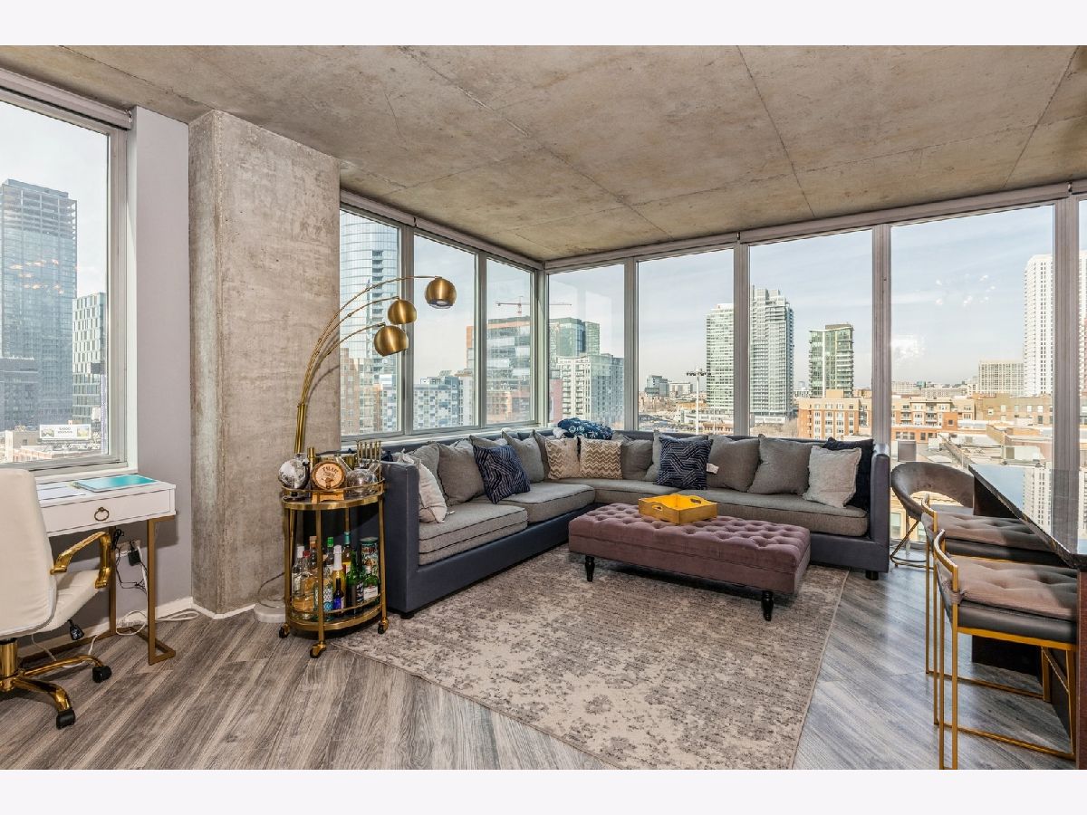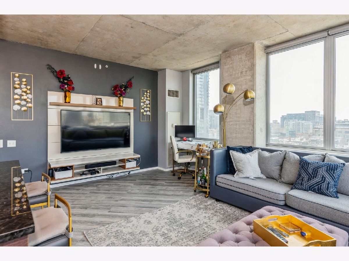Bright and sunny south west corner unit in hot West Loop. This 2 bed / 2 bath split floor plan has some very nice touches such as diagonal floors through out, smart refrigerator and appliances, and voice activated shades in living room. The primary bedroom ensuite has a dual vanity sink and generous walk in closet. Nicely sized bedroom two. Custom organized closets throughout. The floating entertainment system adds flare to the combined living/dining space. Grill out on your private balcony. In unit W/D. This awesome location is walking distance to grocery stores, Union Station/Ogilvie, two "L" lines, great restaurants, and Fulton Market. The views from this unit are crazy good! Attached heated garage parking space available at $250/mo. Enjoy the super amenities of the building's outdoor pool, community room, and exercise room. Door staff and management on site. Welcome home!