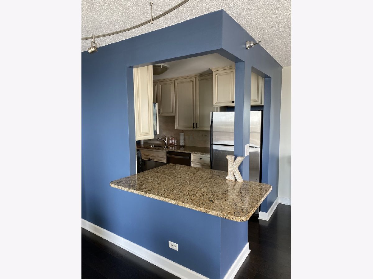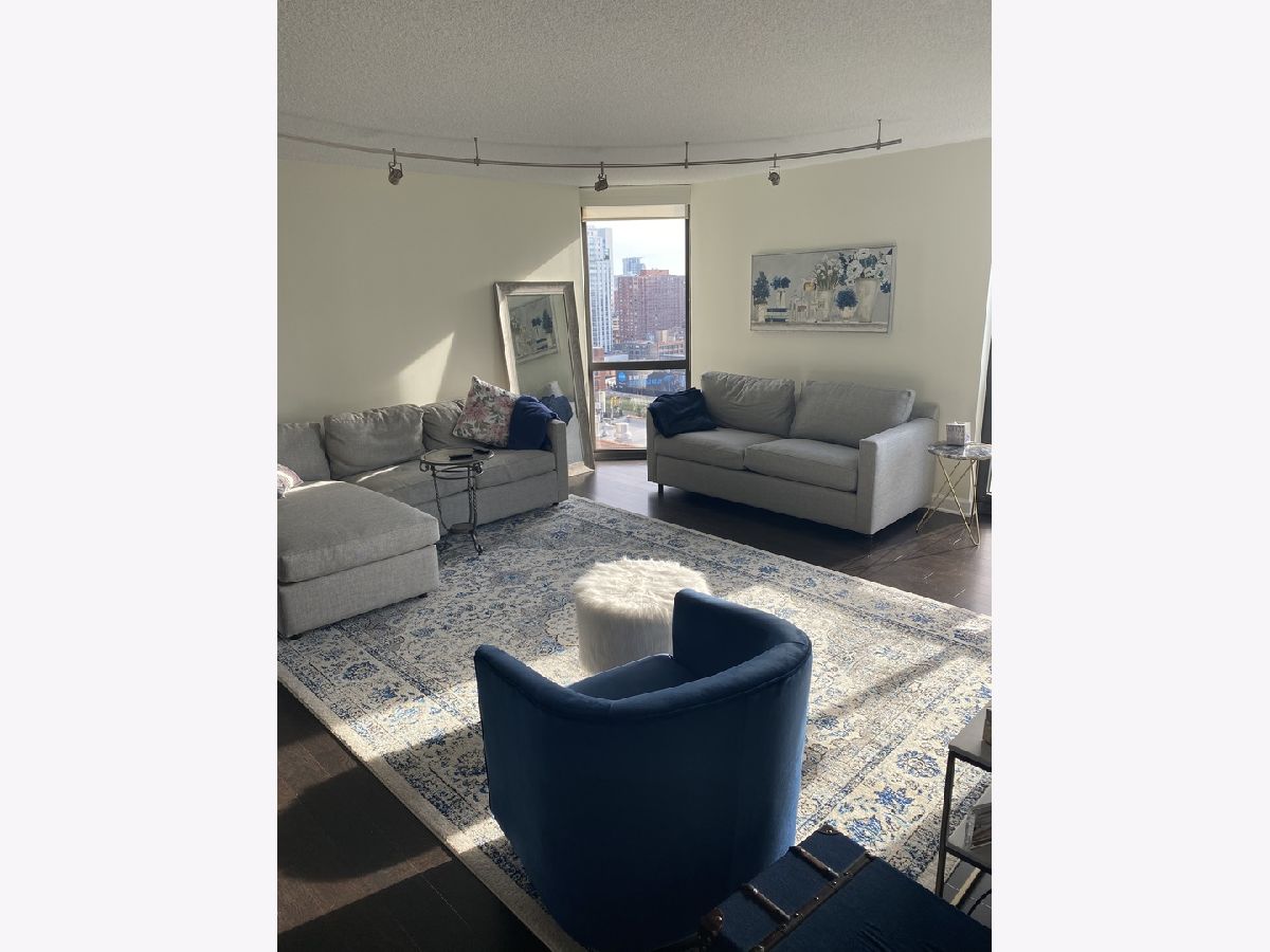 Beautiful updated SW corner 1 Bed 1 Bath unit at the Hermitage in the heart of River North with garage parking included! This highly upgraded unit is flooded with natural light & features stunning southwest city views from every window of your living space. Over 950 sq ft includes an open concept living/dining area that allows for multiple layouts. Upgraded kitchen includes new SS appliances and lots of cabinets. Spacious bedroom allows for a king-size bed and features a wall of custom closet space. Bathroom with custom-built-out cabinetry and quartz countertops. Ample storage plus an additional storage unit included! Live in luxury with many common amenities including: 24/7 door staff, fitness center, sauna, gorgeous sun deck, party room, bike storage, nail salon, and convenience store! Includes all utilities except electric: high-speed internet, cable, and heat! Fantastic location with public transit, Trader Joes, Jewel, great restaurants, and shopping right outside your door!