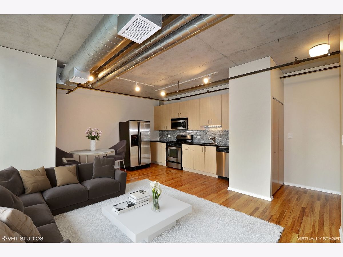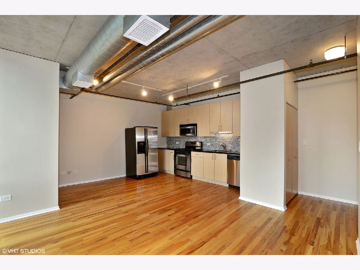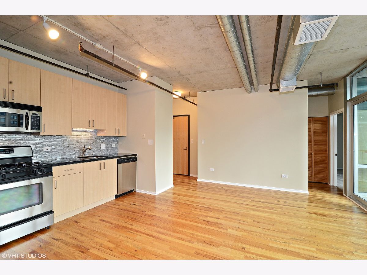 Concrete 1BR loft in Hot West Loop! Walk to work! Floor-to-ceiling windows with stunning north and east city views. Huge covered balcony. Beautiful refinished Hardwood floors, upgraded kitchen w/ 42" cabinets, 1.25" granite counters, new stainless steel appliances and custom backsplash, plus in-unit washer/dryer. Spacious bath with travertine tile. Steps to Metra, Blue Line, Whole Foods, Mariano's and all the bars and restaurants the West Loop has to offer! Available now. No pets. Rental Garage Parking available in the building thru different owner.
