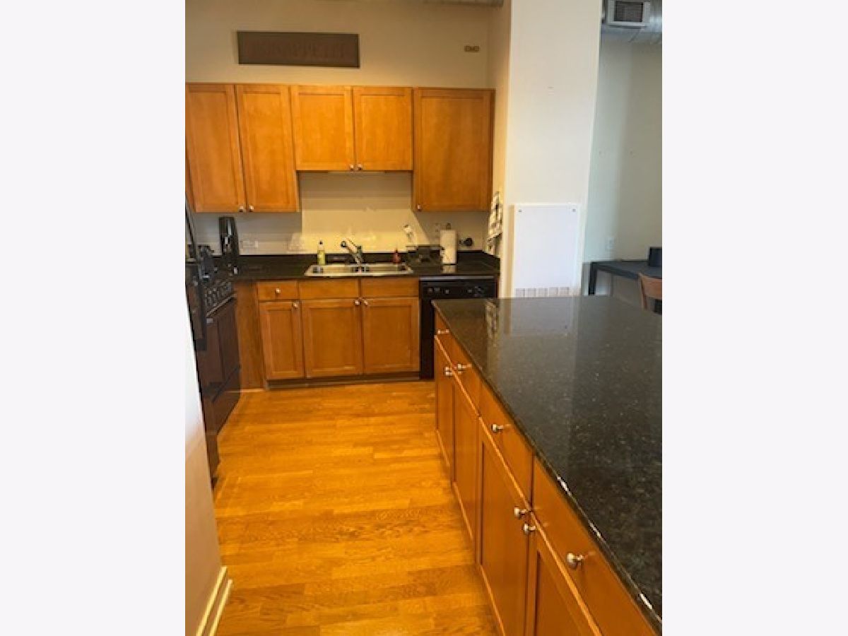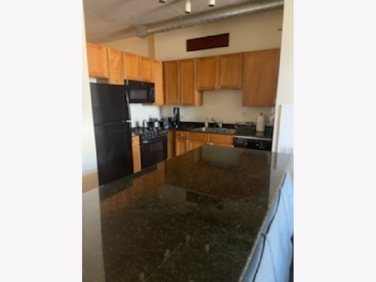 Photos are not available at this time as the tenant is in the process of moving out. In the meantime, I am posting pics from unit 804 which is basically identical. Very desirable and spacious 1 bedroom floorplan in fabulous River North! This sunfilled and airy unit is complete with a totally open floorplan, well appointed kitchen with large granite topped island, Maple shaker cabinets, black appliances and granite countertops. Large bedroom with big closet! Master bath includes ceramic tile decoration and shower tub combo! Unit has lofty feeling with exposed duct work, tall ceilings, hardwood floors, in unit laundry and floor to ceiling windows with roomy balcony and city views! Indoor heated parking at $200/mo. The building offers 24 hours door staff well equipped work out room, storage, on site manager bike storage. Lease includes basic cable and internet, heat, air conditioning and storage. The neighborhood boasts a large Chicago Park district park, 2 dog parks, convenience store, cleaners, Starbucks, the Fabulous Erie cafe with outside dining as the weather permits, Eastbank Club, and many more great River North amenities!