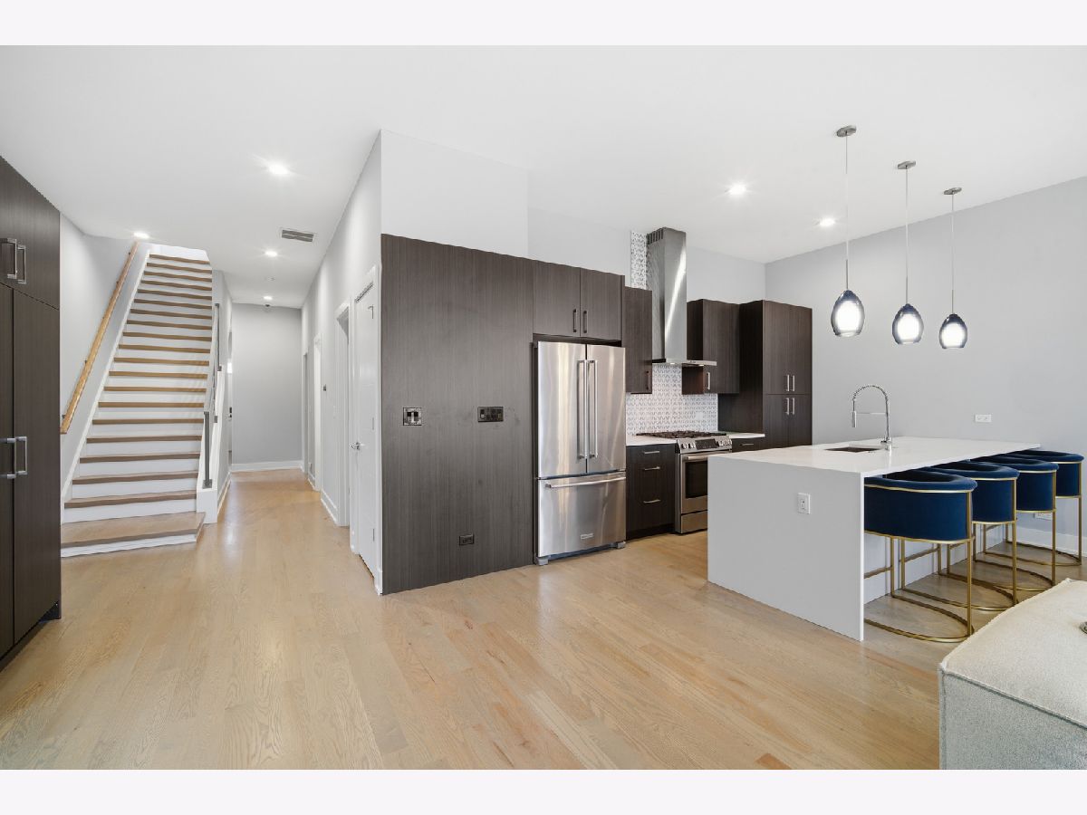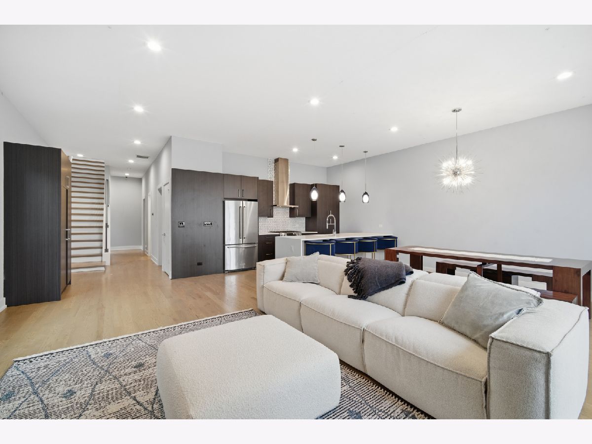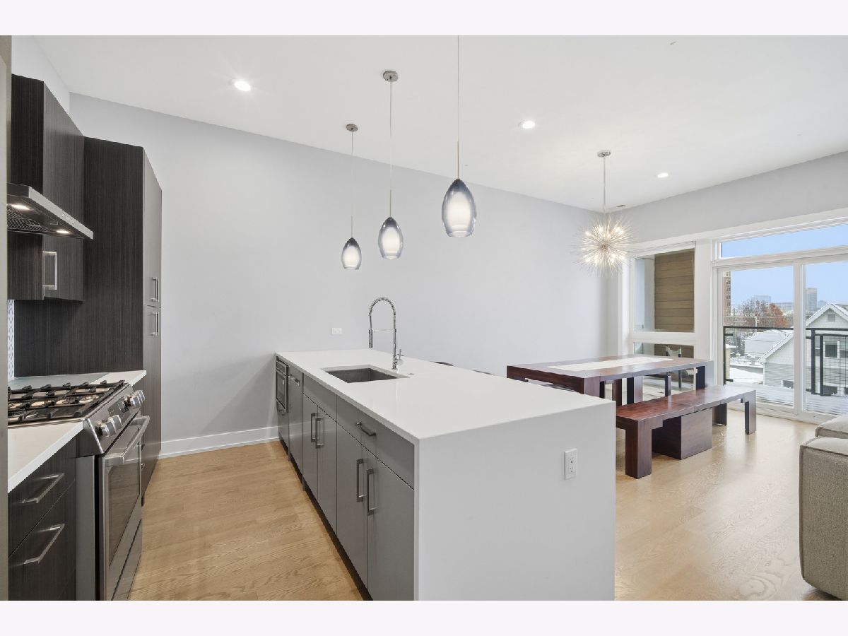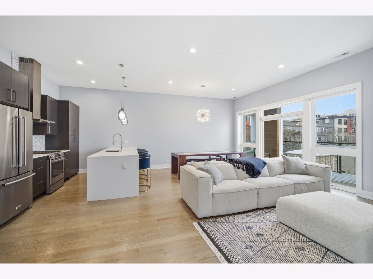 Welcome to Pilsen! This penthouse unit is a modern newer-construction 3BD/2BA unit. High-end finishes throughout with 10' ceilings, hardwood floors, and a spacious open-concept living/dining/kitchen. Stunning chef's kitchen with professional KitchenAid SS appliances, custom European cabinets, quartz counters, and a 10' island with in-island sink. Primary suite includes a luxe en-suite bath with quartz/marble finishes and frameless glass shower. Enjoy the expansive private rooftop deck featuring impressive skyline views, plus a covered front balcony and large rear balcony. Garage parking included. Convenient location near expressway, public transit, restaurants and shopping.