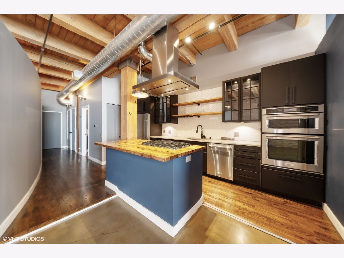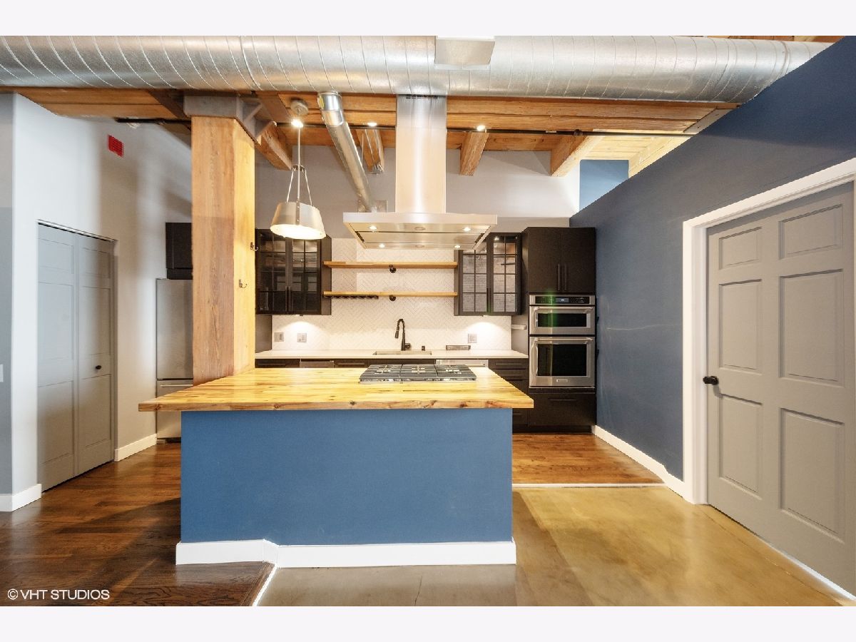 This completely updated 1350 sqft 2B/2B loft has everything you need to live in style and comfort. The chef's kitchen features a butcher block island, gas cooktop, matte black cabinetry, open shelving, vented hood, stainless steel KitchenAid appliances, and a wine fridge perfect for casual meals or entertaining. The space is complemented by soaring 12' ceilings, original timber beams, exposed brick, and a remote-controlled gas fireplace for that classic industrial loft feel, all while staying cozy with Nest-controlled heating and cooling. You'll also love the modern upgrades: polished epoxy concrete floors, refreshed spa-inspired bathrooms, and a custom walk-in closet in the primary bedroom. The second bedroom includes a built-in Murphy bed, making it a flexible space for a home office, yoga studio, or lounge.