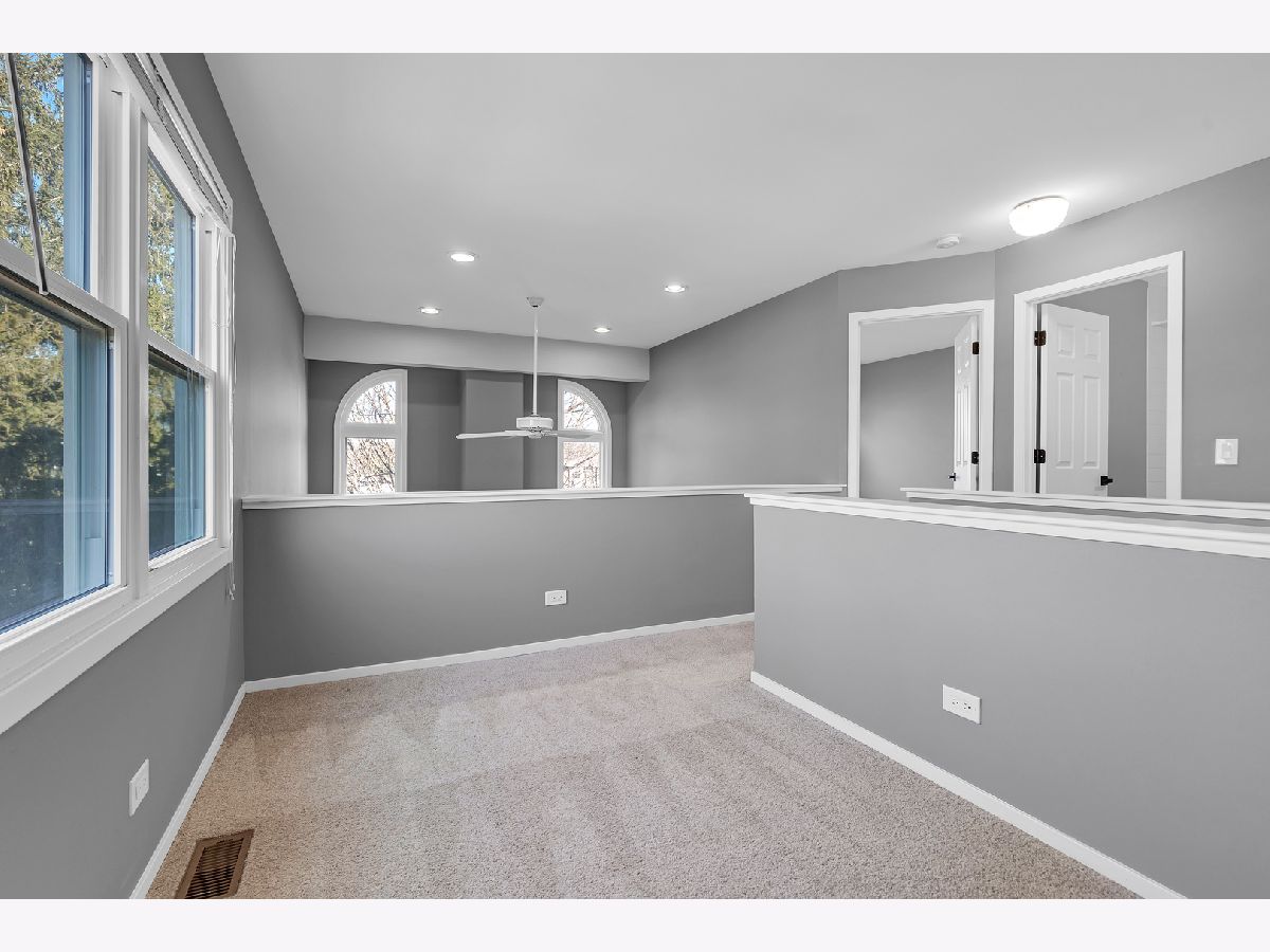 Spacious 1,745 sq. ft. 2-bedroom + loft, 2.5-bath end-unit townhome with an attached 2-car garage located on a quiet cul-de-sac in the desirable Wyndmark community. This bright end-unit home features abundant natural light, a dramatic two-story living room with fireplace, and an updated kitchen with white quartz countertops and a built-in wine cooler. The versatile loft space is perfect for a home office or workout area, while the spacious primary suite includes a huge walk-in closet and private bathroom with dual sinks. Additional highlights include an in-unit washer and dryer, a private entrance, and maintenance-free living with lawn care, snow removal, and trash removal included. Situated in a highly rated school district with parks within walking distance and a daycare conveniently located next door. Enjoy easy access to Mariano's, Woodfield Mall, and I-90 for shopping, dining, and commuting. Professionally cleaned and move-in ready. Lease Terms: Available for immediate move-in. 1-year lease required. Security deposit equal to first month's rent. Lawn care, snow removal, and trash removal included. No pets and no smoking.