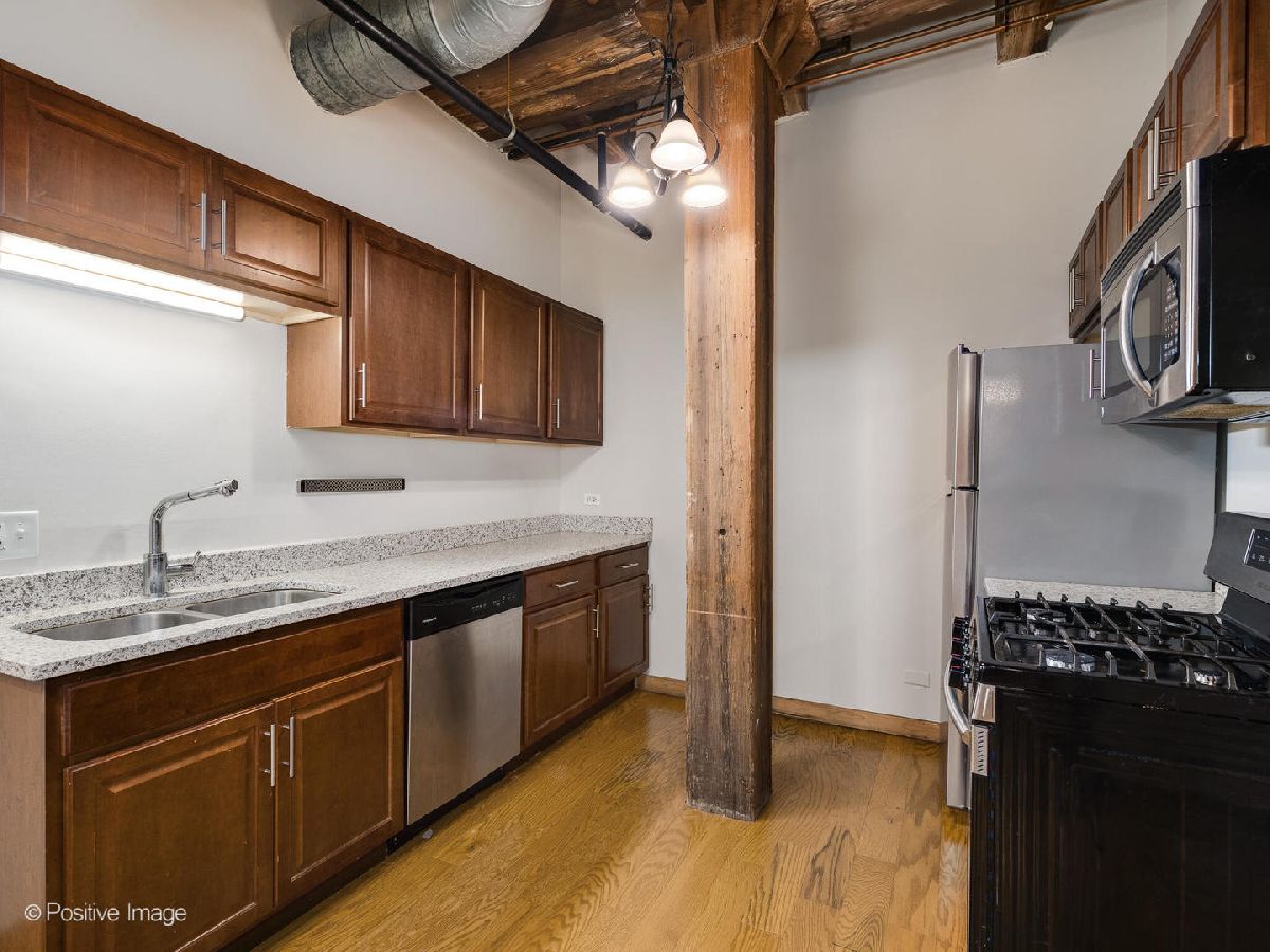Stunning 2 Bed/2 Bath condo at the Printer's Row Lofts. This apartment welcomes you in with character- Exposed Brick, Hardwood Floors throughout, and Beautiful Timber Ceilings. The apartment features an updated kitchen with Quartz Countertops, Stainless Steel Appliances, Plenty of Cabinet Space, and Dishwasher. Separate Dining Space and a Spacious L-Shaped Living Room/Family Room is great for relaxing, entertaining or working from home. The Large primary bedroom and good-sized 2nd bedroom ensuite/shared bathroom is completed by the In-unit Washer and Dryer. Internet included! Dream Location- Easy access to the Loop, Lake Shore, Target, grocery stores, restaurants, and entertainment. Quick Access to 290, 90/94, and Lake Shore Drive. Rocks throw to CTA Red Line, Blue Line and Buses. Storage Locker included in the price. Rental Parking Options May be Available separate from rent. Pet Friendly. This is a must see.
