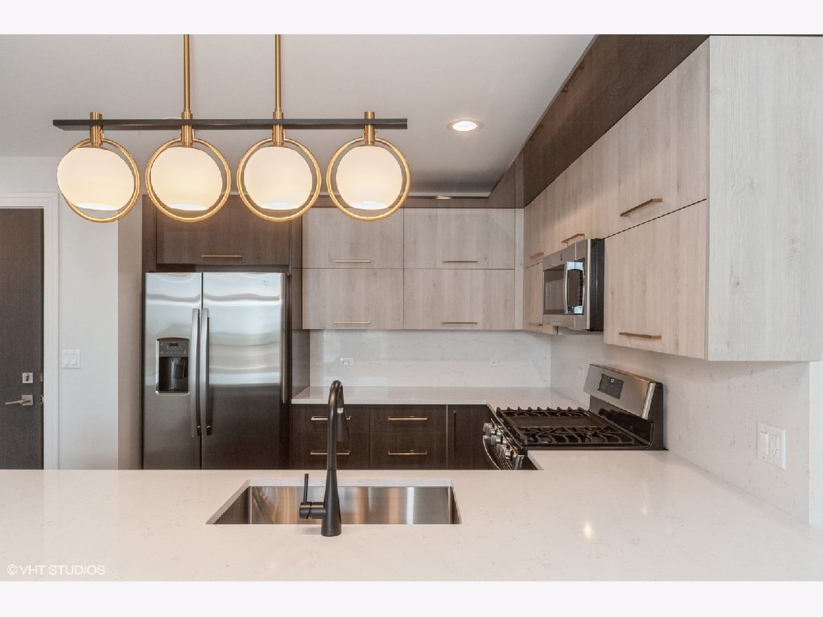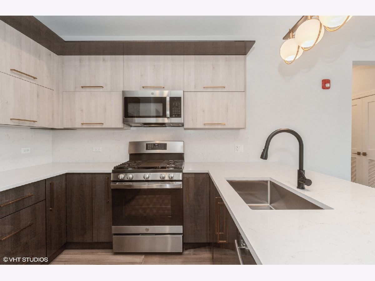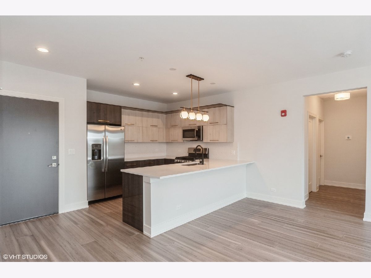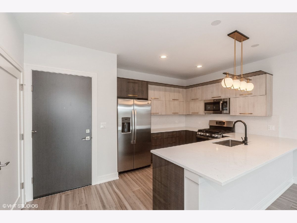 Welcome home! This newly built 2-bedroom, 2-bath apartment features a primary suite with its own private bath, an open-concept kitchen with quartz countertops and stainless steel appliances, and a spacious living and dining area. Enjoy a private balcony, in-unit washer and dryer, a heated garage parking space, and a private storage locker. The building includes an elevator for added convenience. Additional parking is available on-site. Located just a short walk from Harlem Irving Plaza, public transportation, and minutes from the expressway. Please note, photos are of a similar unit in the building.