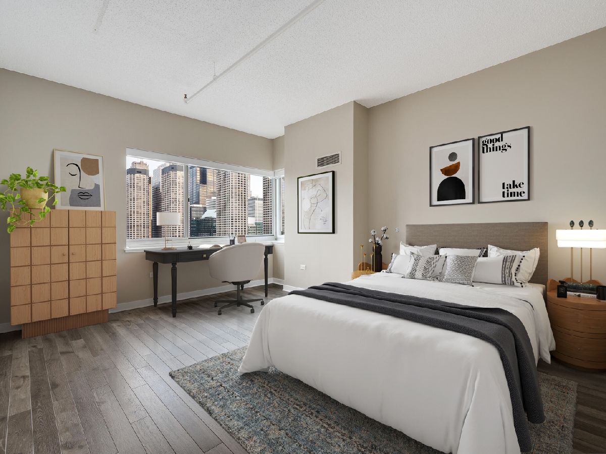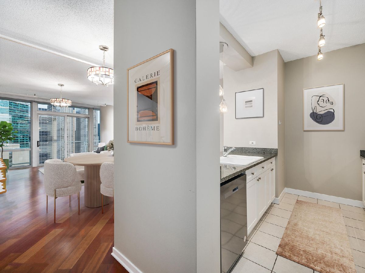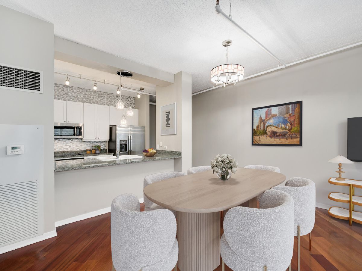 West Loop! Step into this inviting 1 bed, 1.5 bath retreat. If you're searching for a sun-drenched home, you'll love the Southeast exposure here. Imagine starting your day with a cup of coffee or tea on your spacious balcony, bathed in morning light. Enjoy an adaptable floor plan with hardwood floors throughout, perfect for hosting friends and family. The galley kitchen is equipped with plenty of storage and sleek granite countertops, and a breakfast bar, generous living area, and dining space provide ample room to entertain. After a long day, light a candle and unwind in your primary bath, where you can choose between a bathtub or separate shower depending on your mood. Benefit from an additional half bath for all visitors. The bedroom is a true retreat, featuring a walk-in closet with built-ins to keep everything organized. Bringing ultimate convenience, #1907 includes a side-by-side in-unit washer/dryer. Skybridge is a pristinely managed building offering 24-hour door staff, a state-of-the-art exercise room, a 36th-floor sundeck with grills, a receiving room, and onsite dry cleaning. A deeded parking space is available for an additional 300/month. Plus, being steps away from Whole Foods and just minutes from Fulton Market's incredible restaurants and shops, this location couldn't be more convenient. Schedule a showing today!