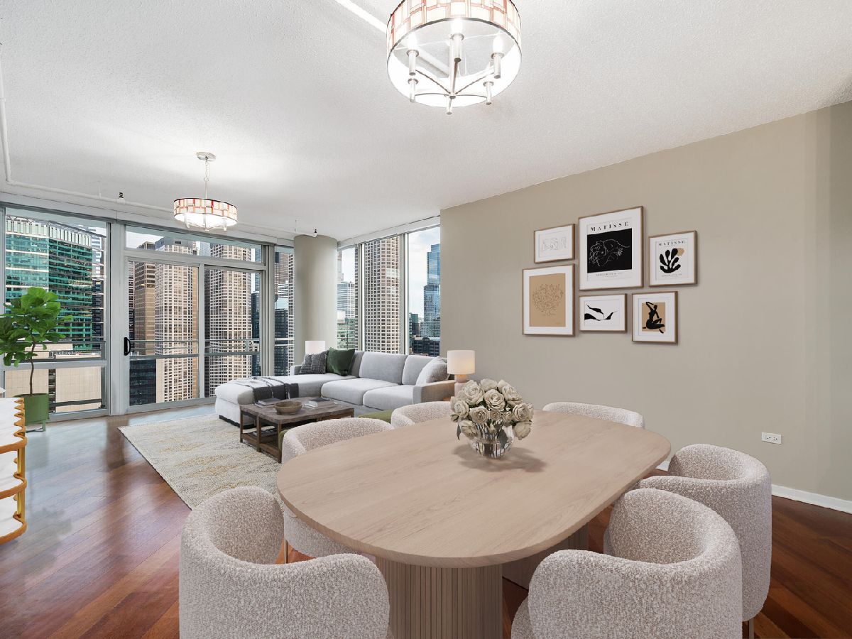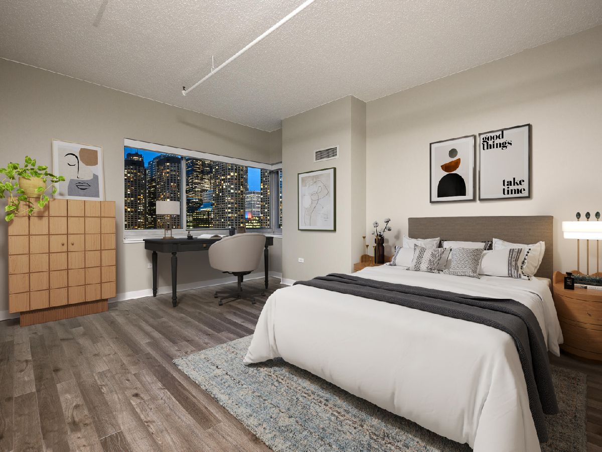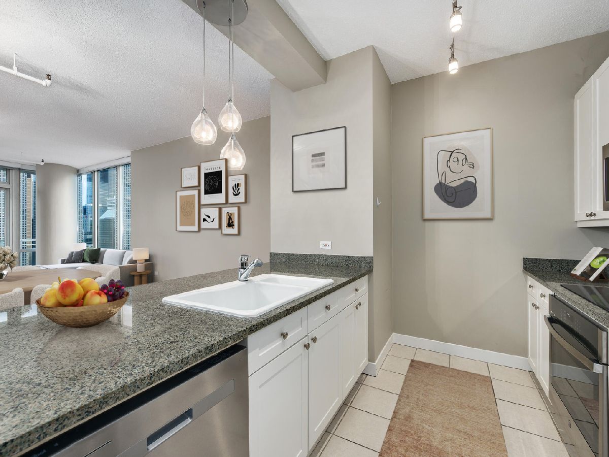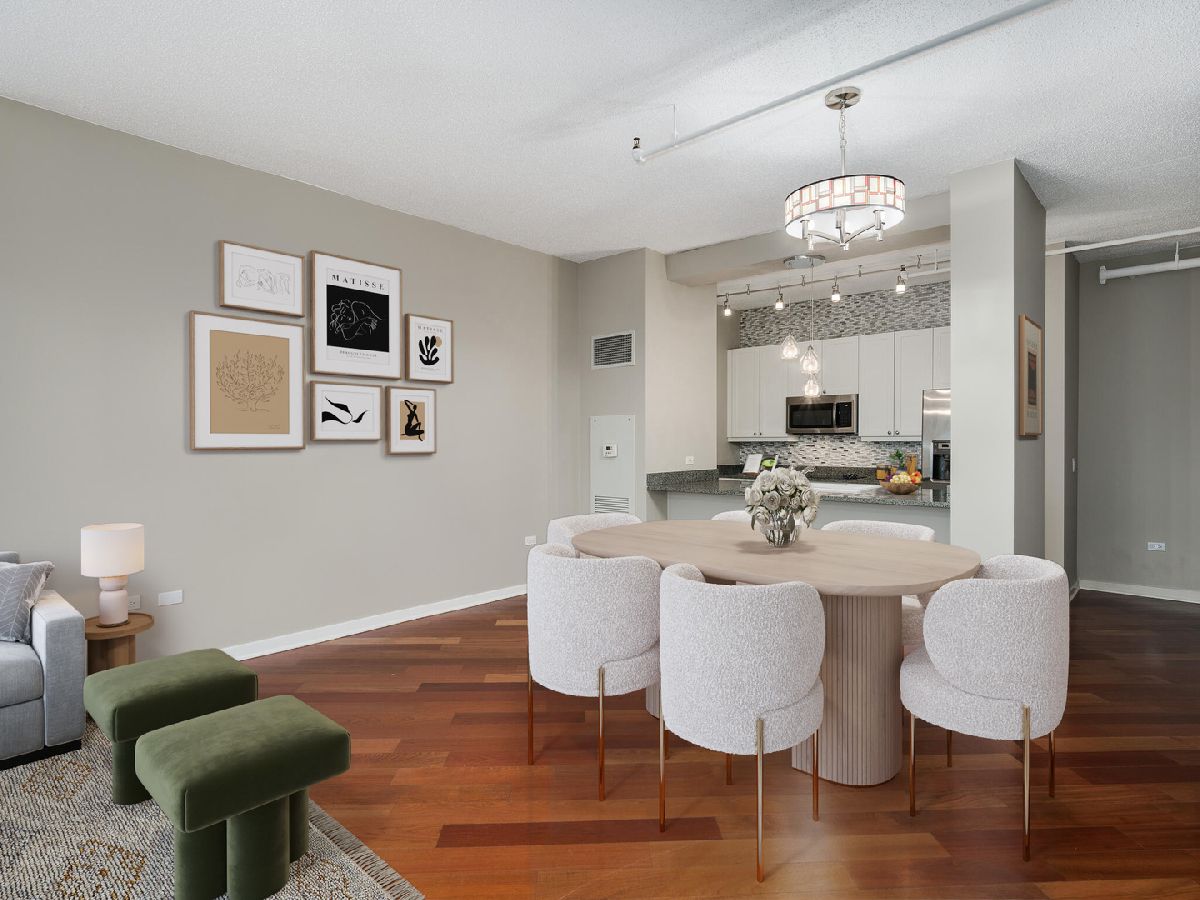 West Loop! Step into this inviting 1 bed, 1.5 bath retreat. If you're searching for a sun-drenched home, you'll love the Southeast exposure here. Imagine starting your day with a cup of coffee or tea on your spacious balcony, bathed in morning light. Enjoy an adaptable floor plan with hardwood floors throughout, perfect for hosting friends and family. The galley kitchen is equipped with plenty of storage and sleek granite countertops, and a breakfast bar, generous living area, and dining space provide ample room to entertain. After a long day, light a candle and unwind in your primary bath, where you can choose between a bathtub or separate shower depending on your mood. Benefit from an additional half bath for all visitors. The bedroom is a true retreat, featuring a walk-in closet with built-ins to keep everything organized. Bringing ultimate convenience, #1907 includes a side-by-side in-unit washer/dryer. Skybridge is a pristinely managed building offering 24-hour door staff, a state-of-the-art exercise room, a 36th-floor sundeck with grills, a receiving room, and onsite dry cleaning. A deeded parking space is available for an additional 300/month. Plus, being steps away from Whole Foods and just minutes from Fulton Market's incredible restaurants and shops, this location couldn't be more convenient. Schedule a showing today!