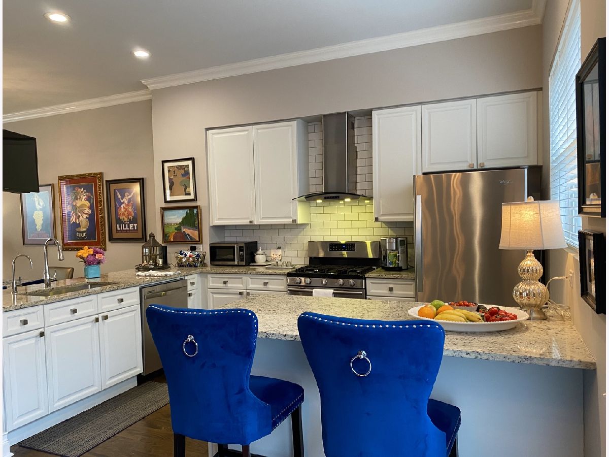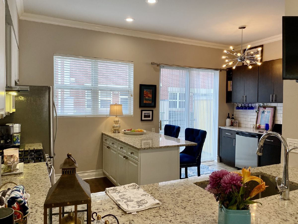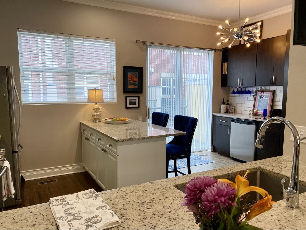Wonderful 2 Bedroom, 2.5 Bathroom three story townhouse, meticulously maintained and ready to move in NOW! Nice curb appeal and super quiet with great views of the courtyard. The front door welcomes you into a spacious family room with hardwood floors, convenient powder room, and entry from the 2-car garage. Upstairs you will find a beautiful open floor plan. Remodeled kitchen with 42 inch cabinets, granite counters, newer stainless steel appliances, island, built in pantry, custom built-in beverage fridge, and sliding doors that access the balcony. The living room has a decorative fireplace with a mantle and a modern ceiling fan. The 3rd level brings on a skylight and accommodates two bedrooms and two full baths. Primary bathroom has a shower with glass doors and both bathrooms have granite counters and new light fixtures. 2 Car Attached Garage with plenty of storage! Walking distance to all three nearby downtown areas in River Forest, Oak Park and Forest Park. So many options for dining, shopping and entertainment. Easy commute into the city via I290 or public transportation. Available 6/1/23. No Security Deposit. Rhino security deposit insurance required. 1 Cat or small dog ok. Pictures are from previous listing.
